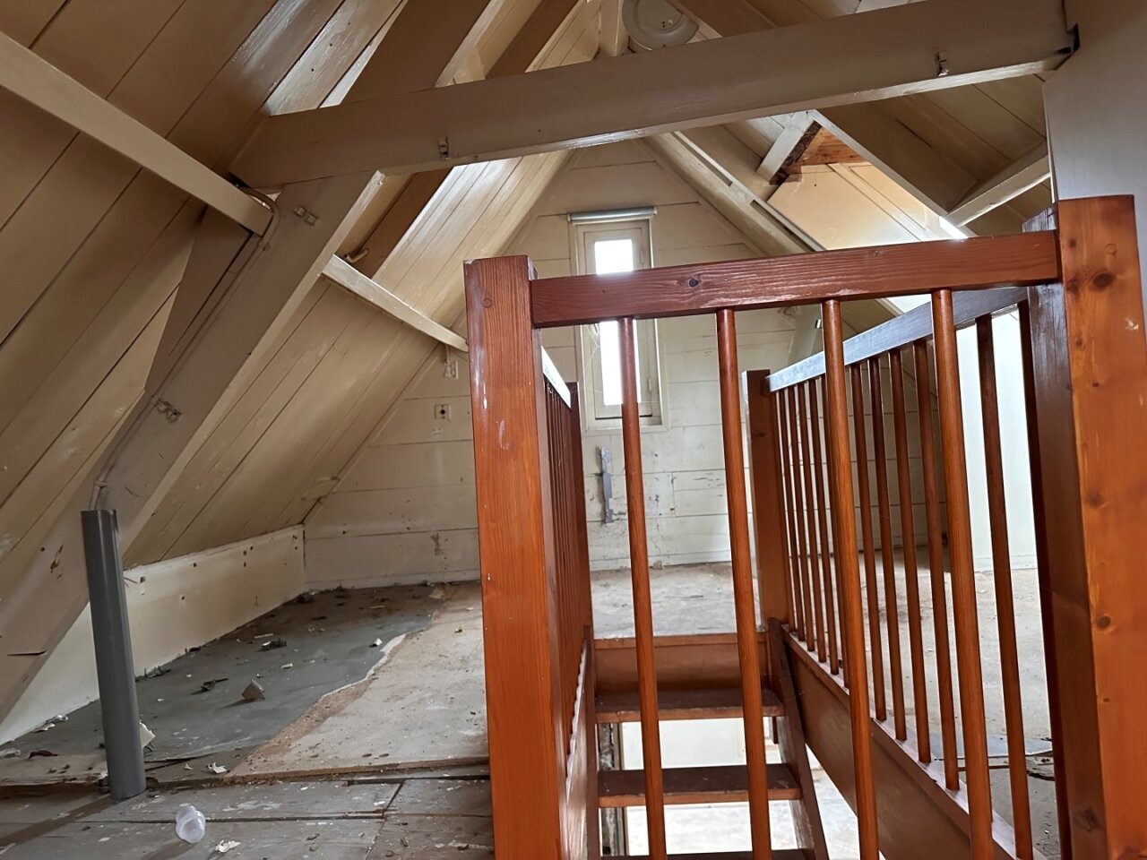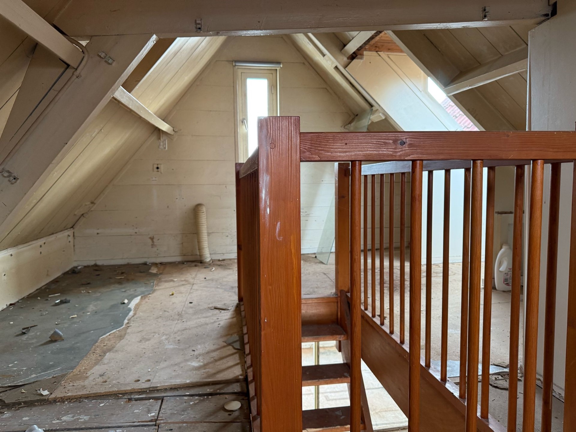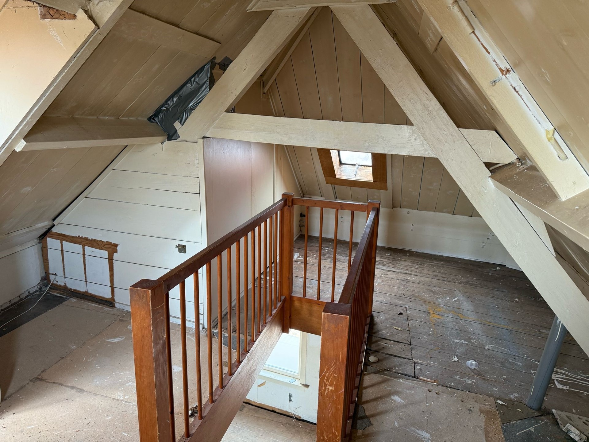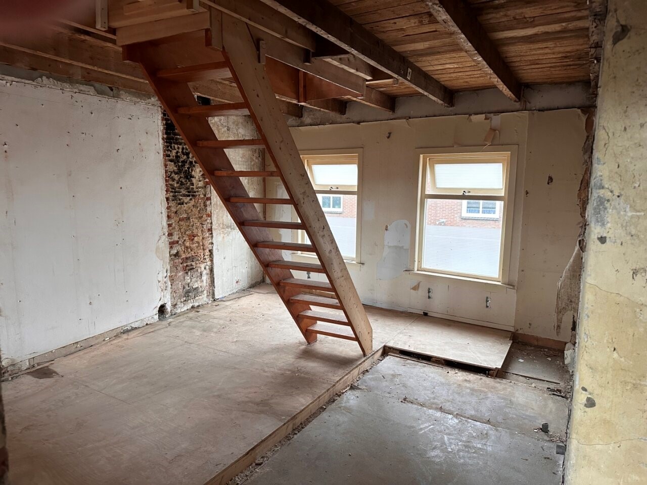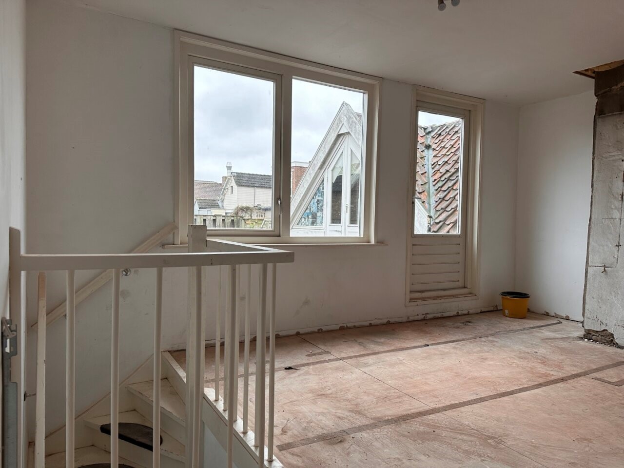 • De bovenwoning op de 1e en 2e verdieping is volledig casco en dient toegankelijk te worden gemaakt en volledig getransformeerd te worden.