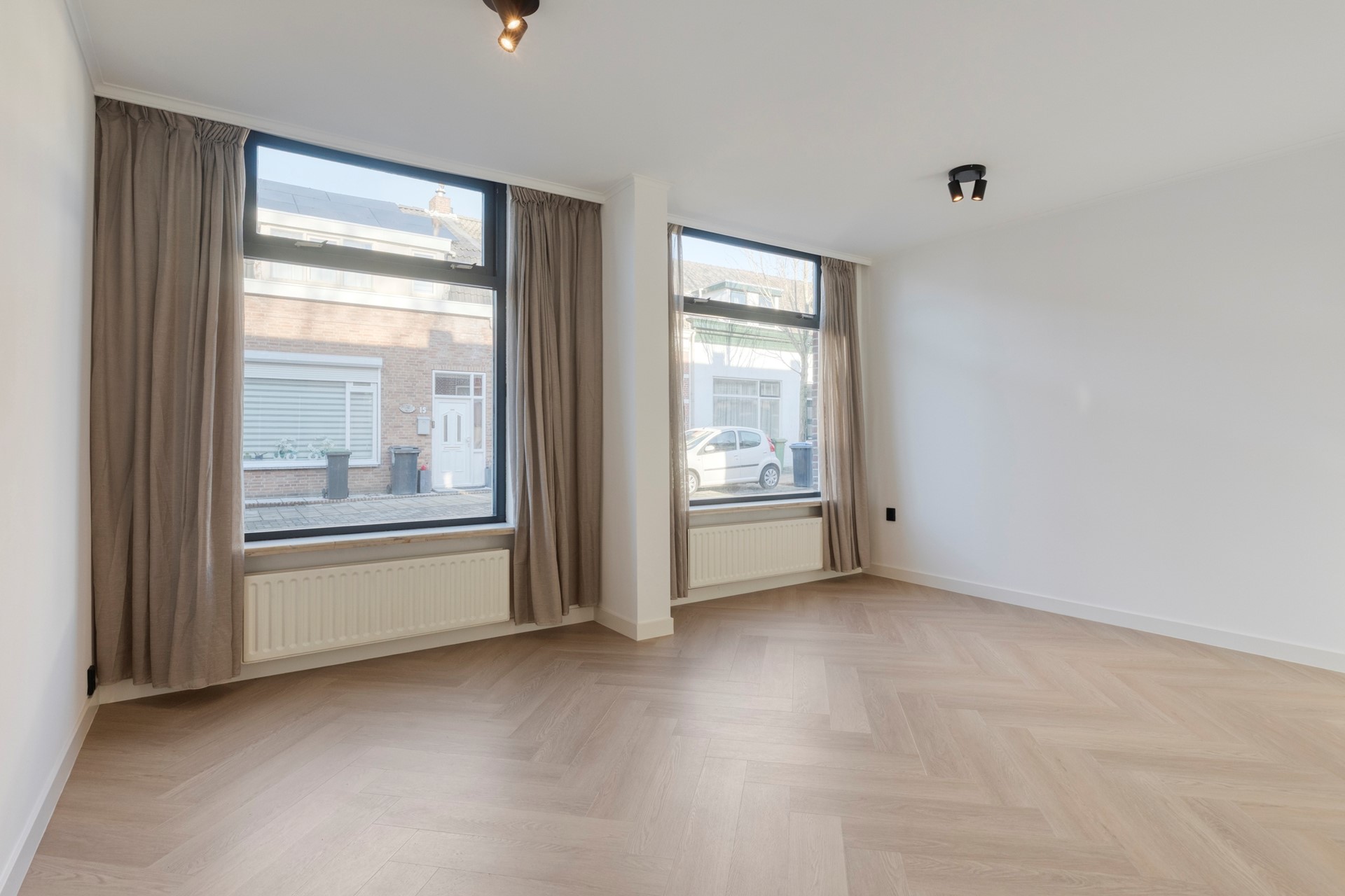 • Luxe, doorlopende visgraat PVC-vloer in de gehele woning voor een chique en rustige uitstraling.