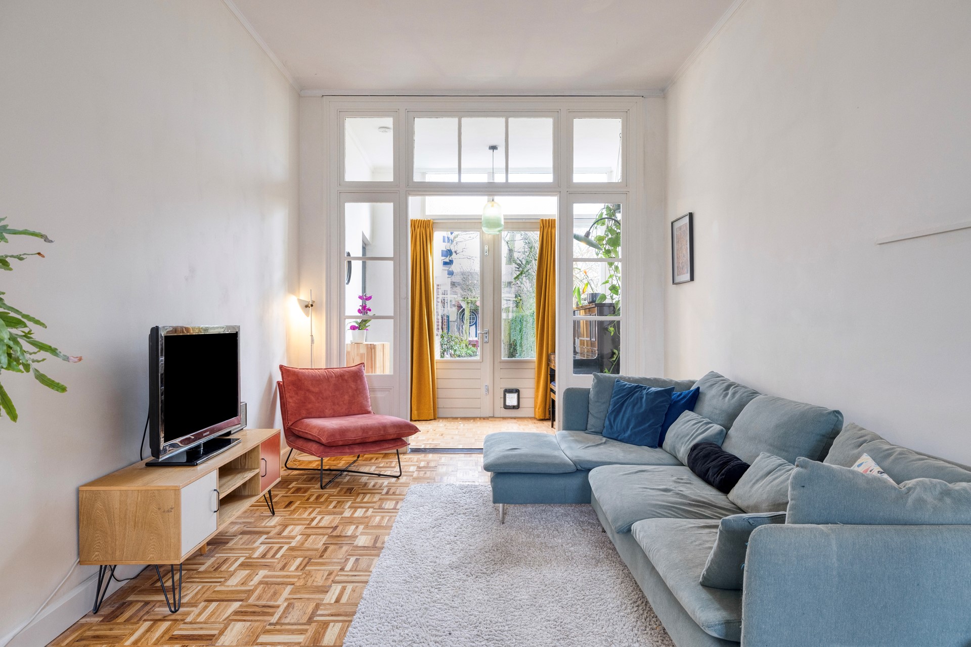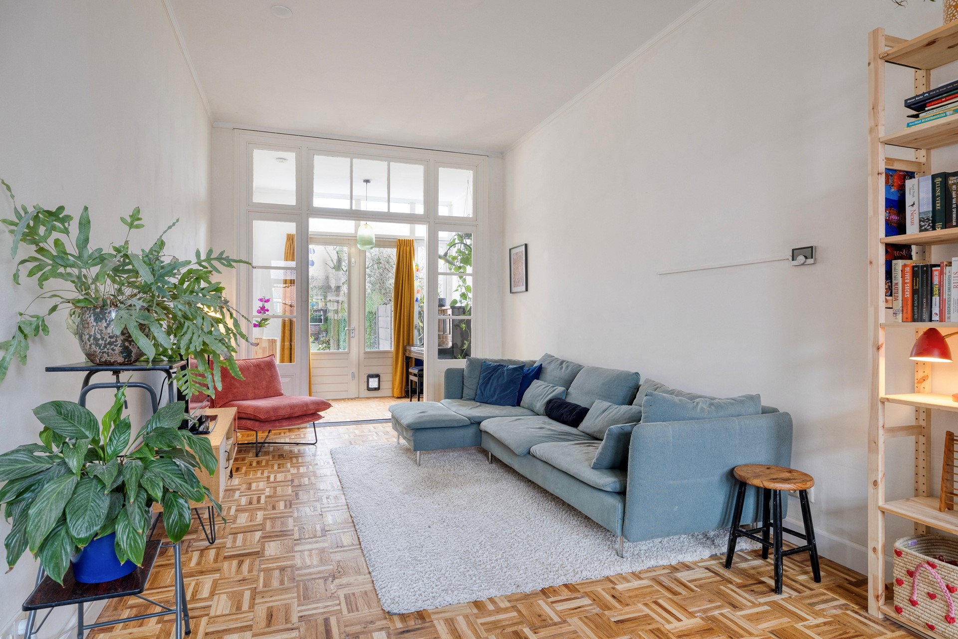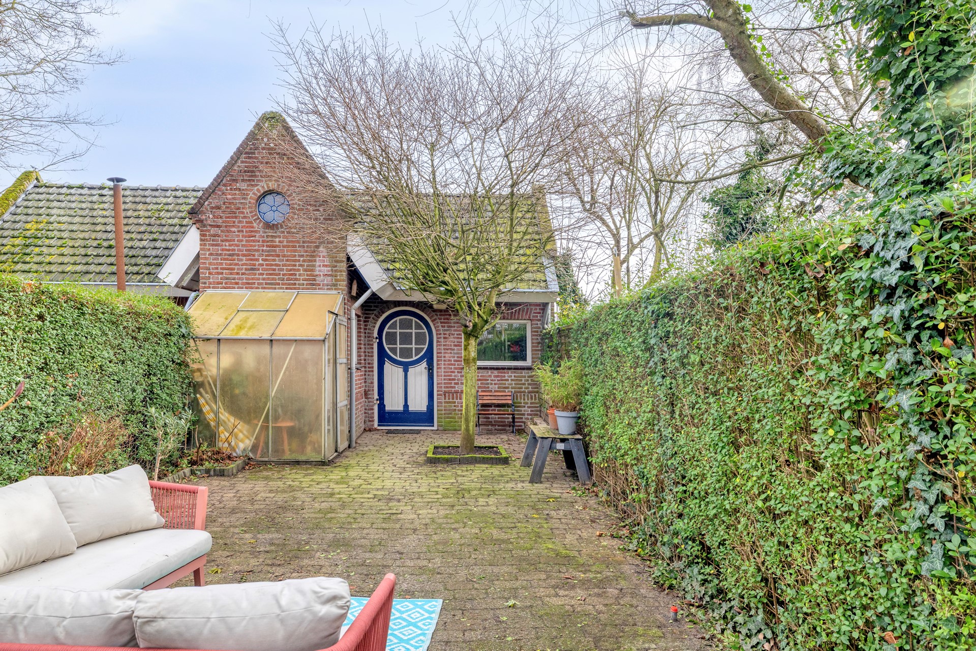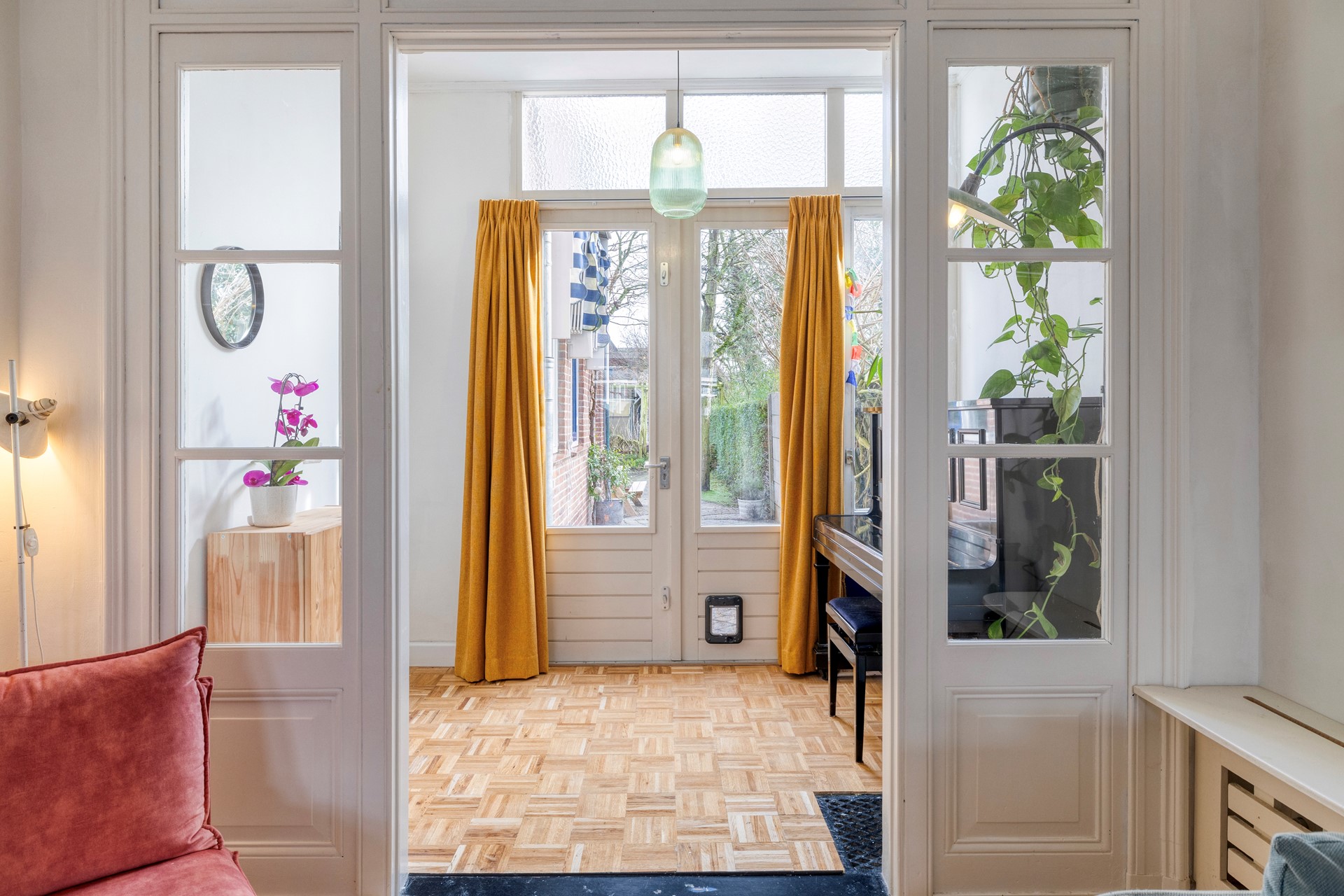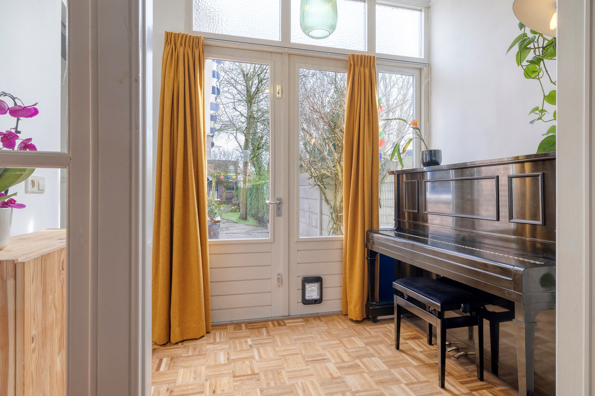 Het buitengevoel maar dan binnen! De tuinkamer geeft toegang tot de hal en de tuin.