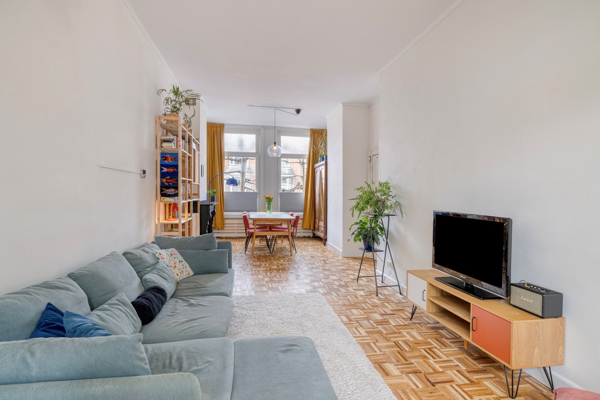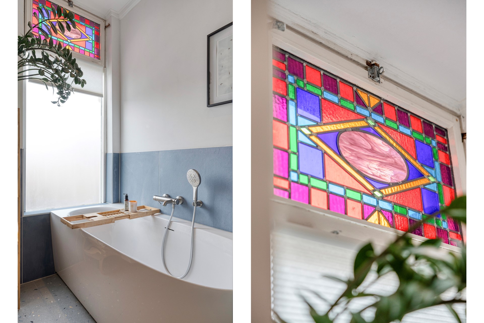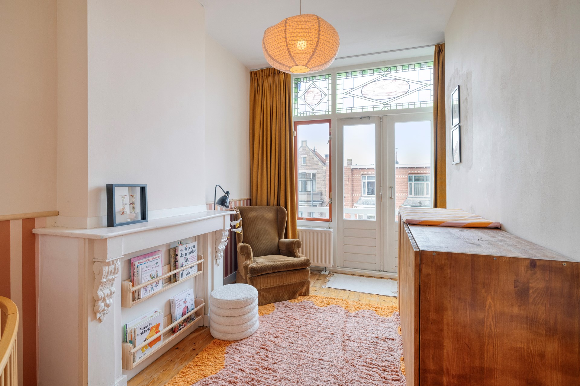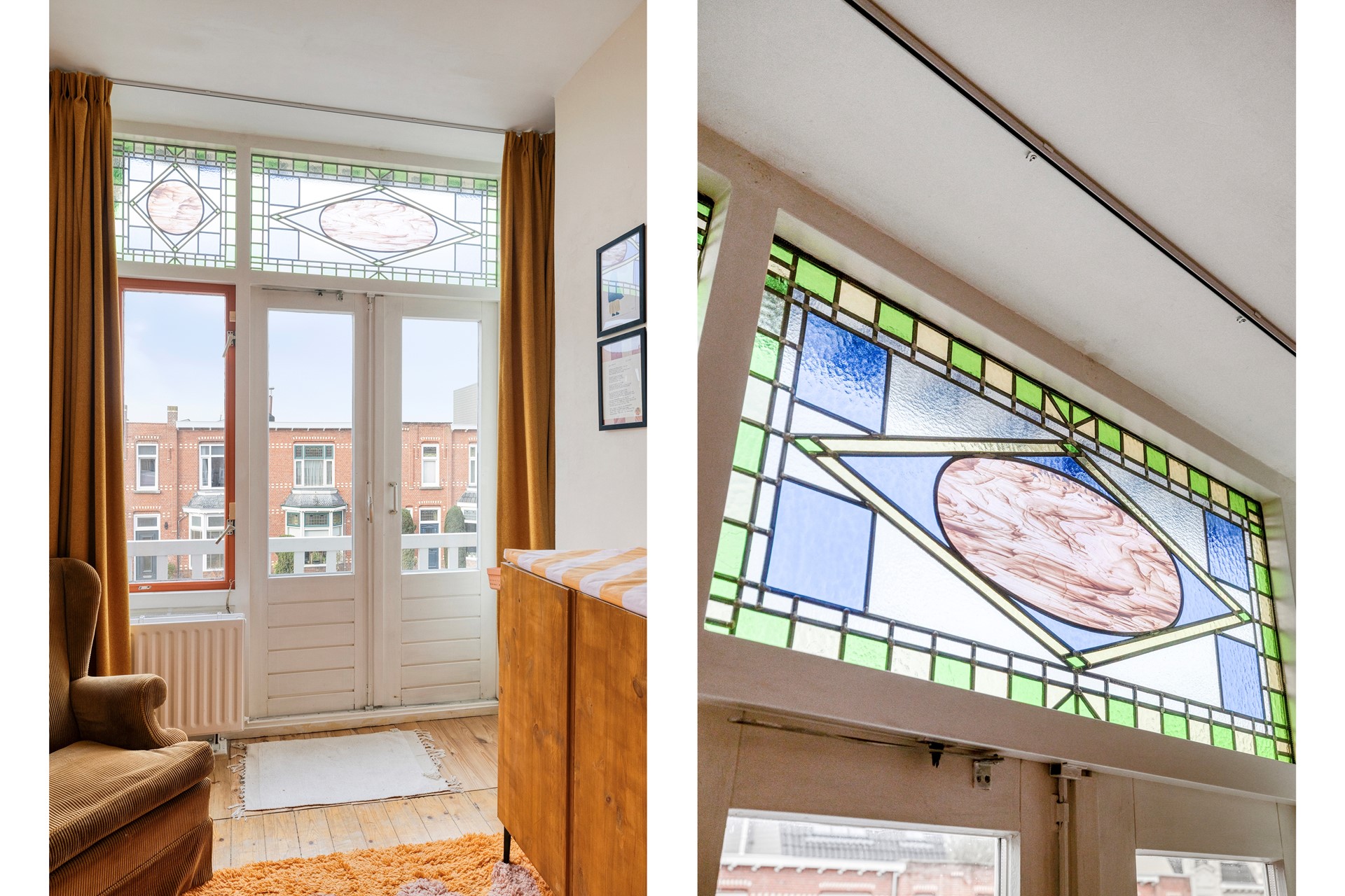 • De vele authentieke details zoals de markiezen en het glas in lood zorgen voor een grote dosis sfeer in deze bijzondere woning.