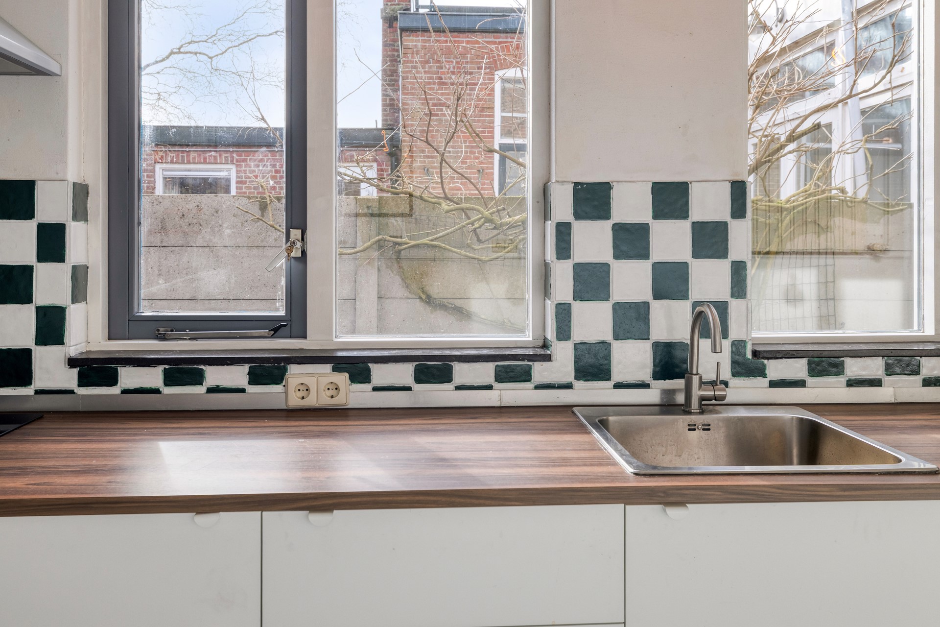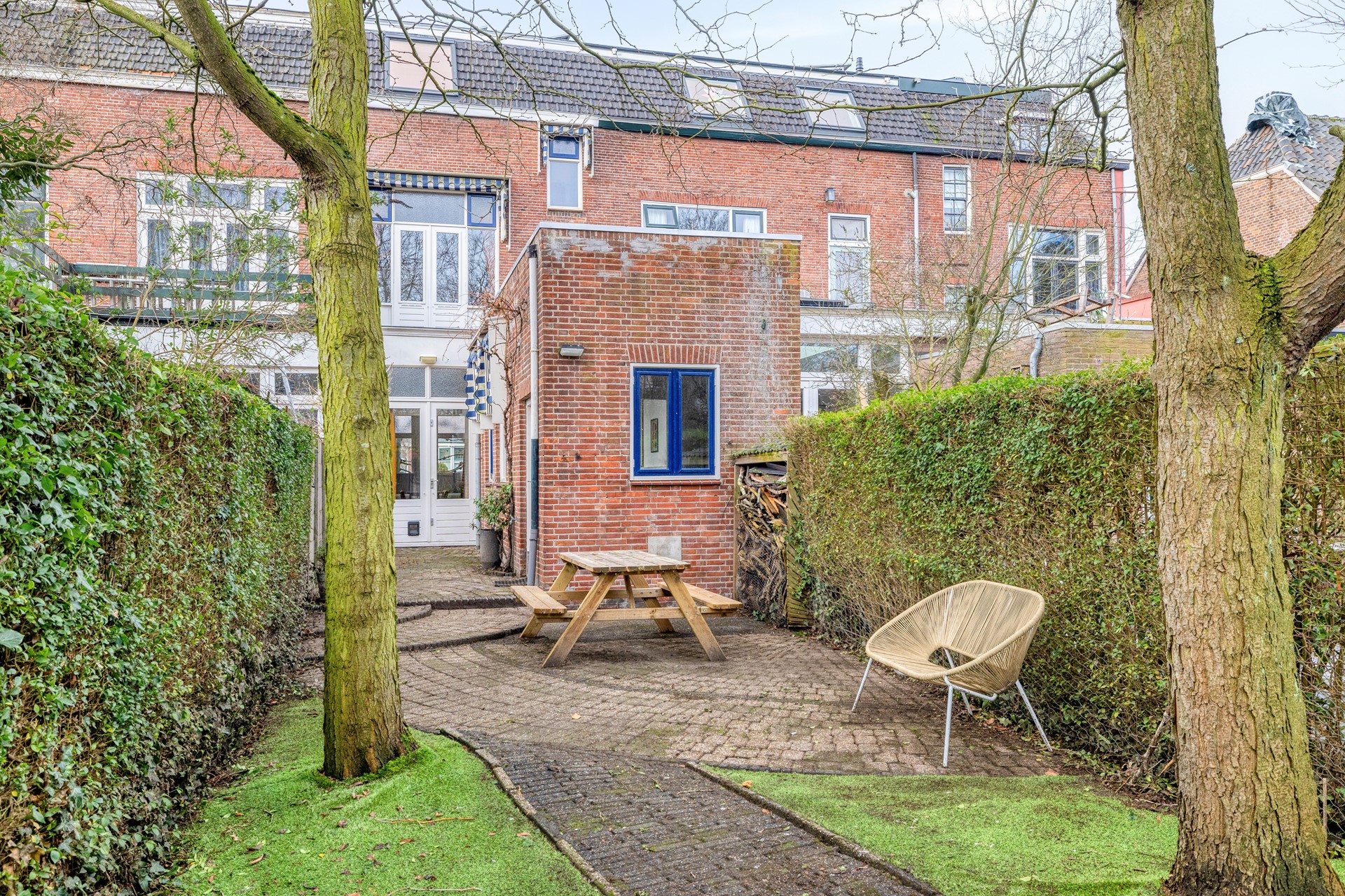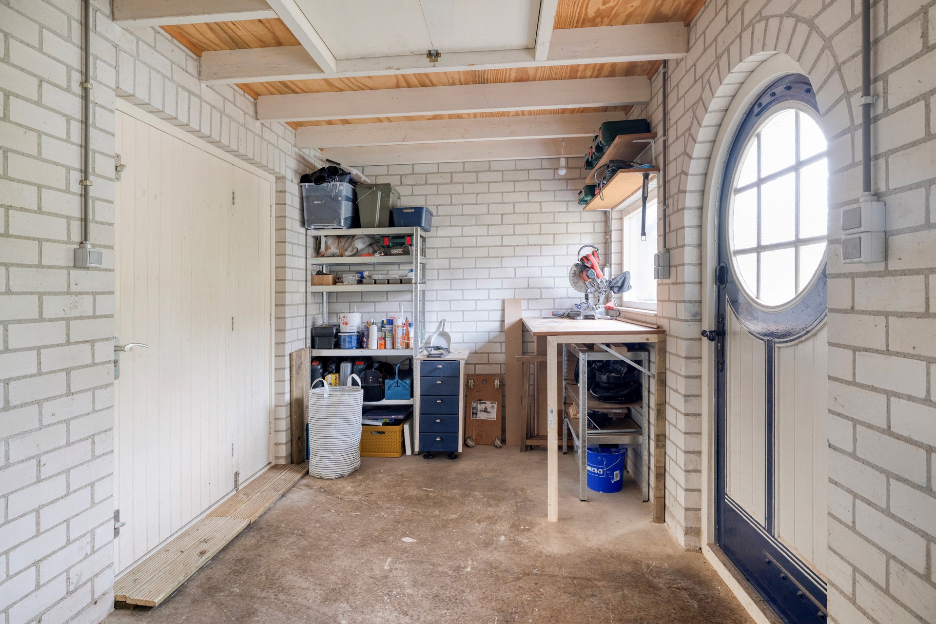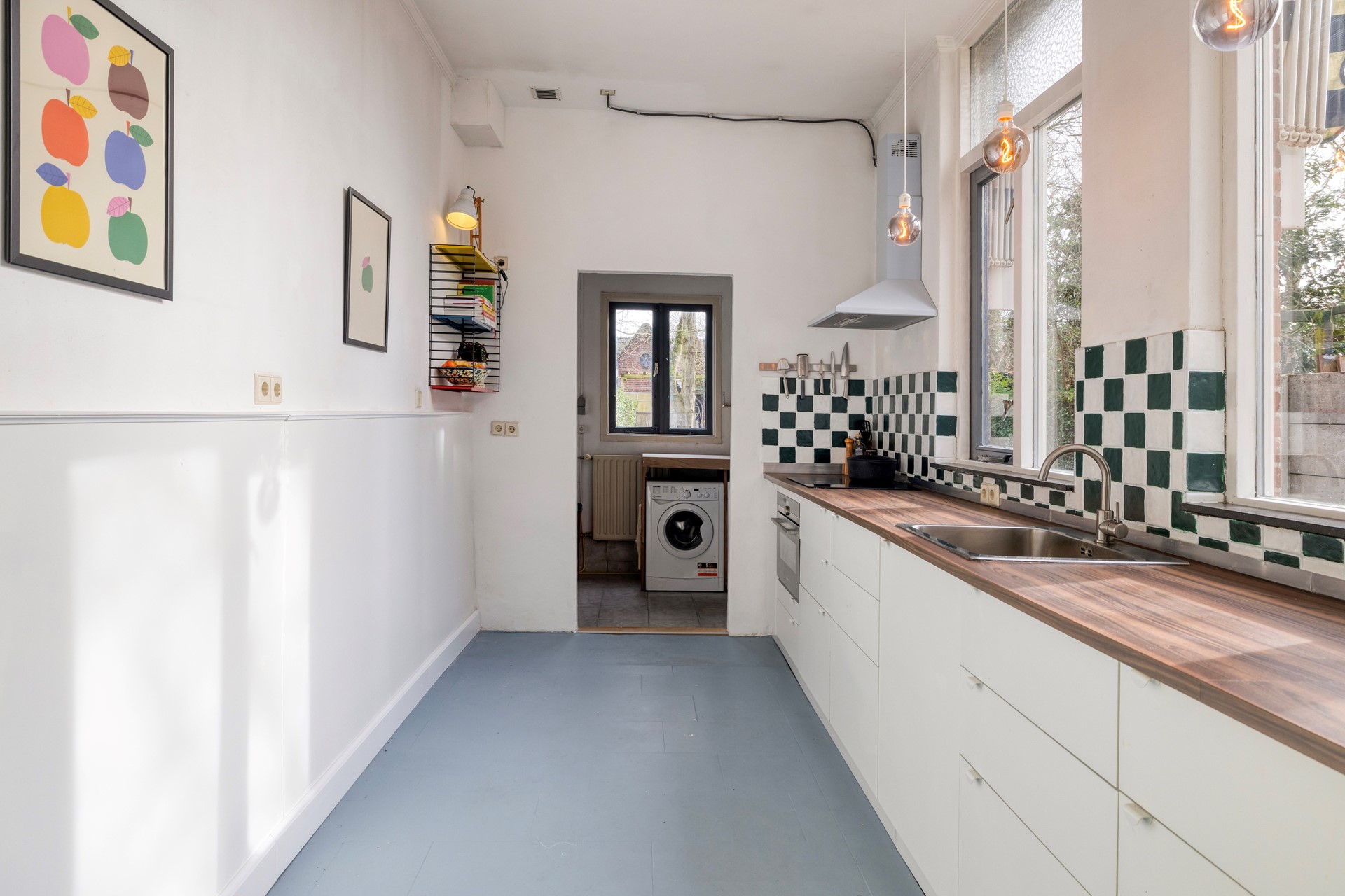 De bijkeuken beschikt over een aansluiting voor witgoed en geeft toegang tot de achtertuin.