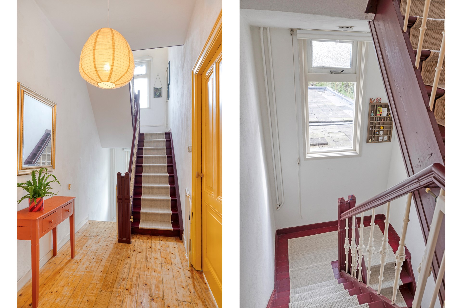 Middels de vaste trap op de begane grond bereiken jullie de overloop op de eerste verdieping. De overloop is afgewerkt met een houten vloer, gestucte wanden en een gestuct plafond. De overloop biedt toegang tot 2 slaapkamers, de badkamer, een separaat toilet en 2e verdieping middels een vaste trapopgang.
