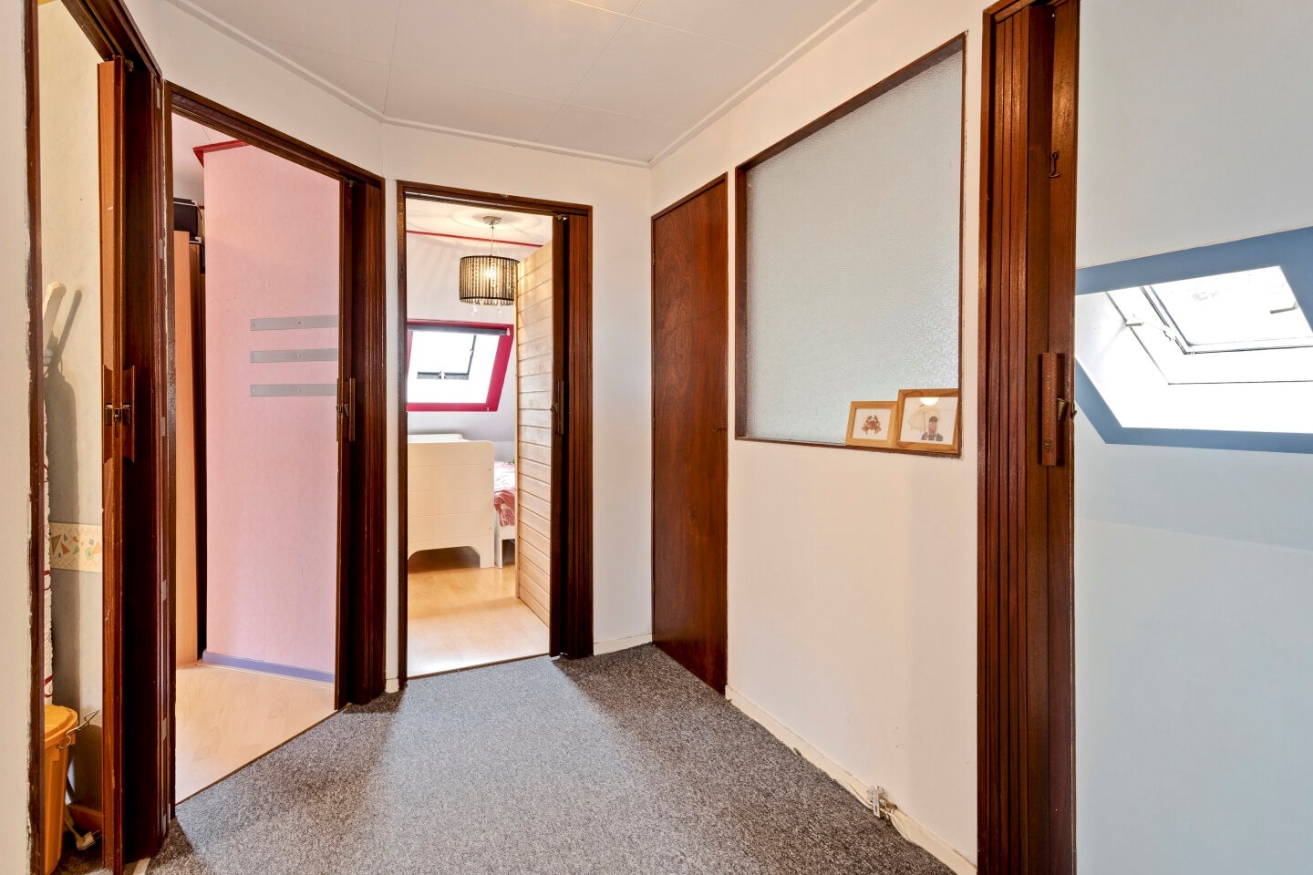 Middels de vaste trap op de eerste verdieping bereiken jullie de overloop op de tweede verdieping. De overloop is afgewerkt met vloerbedekking, gesauste wanden en gipsplaten plafond. De overloop biedt toegang tot 4 slaapkamers en de badkamer.