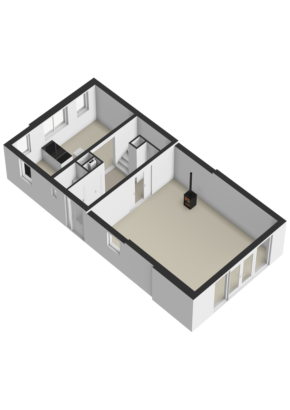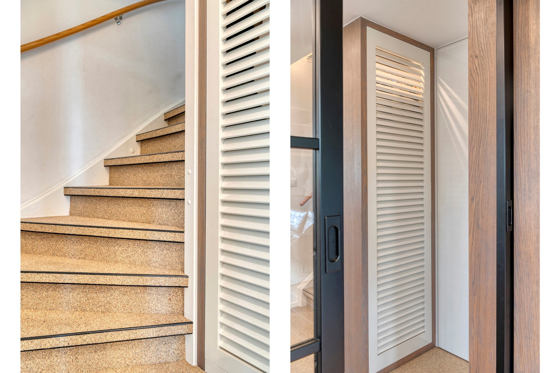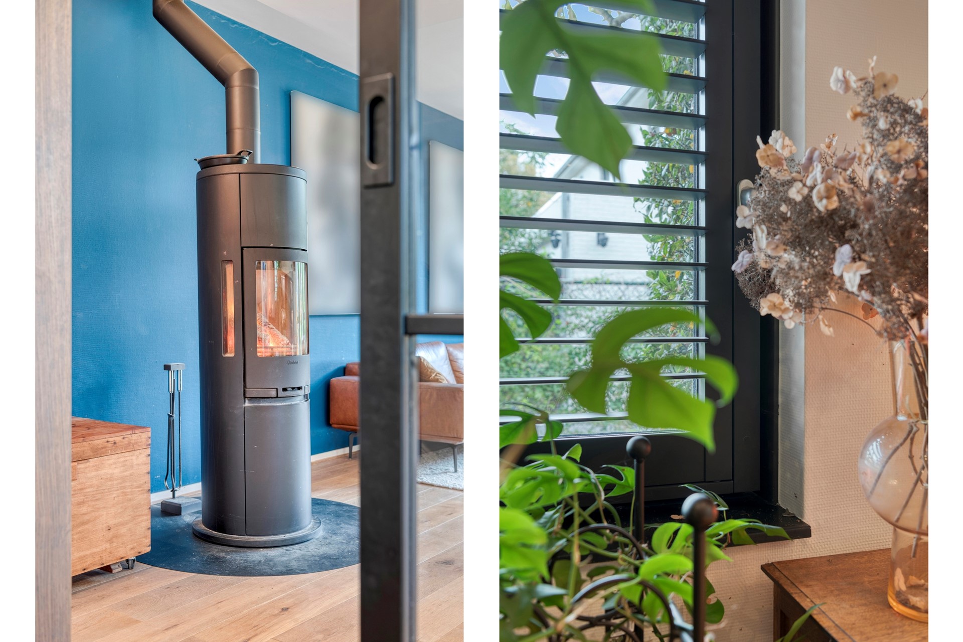 - De begane grond is voorzien van prachtige houten antracieten shutters