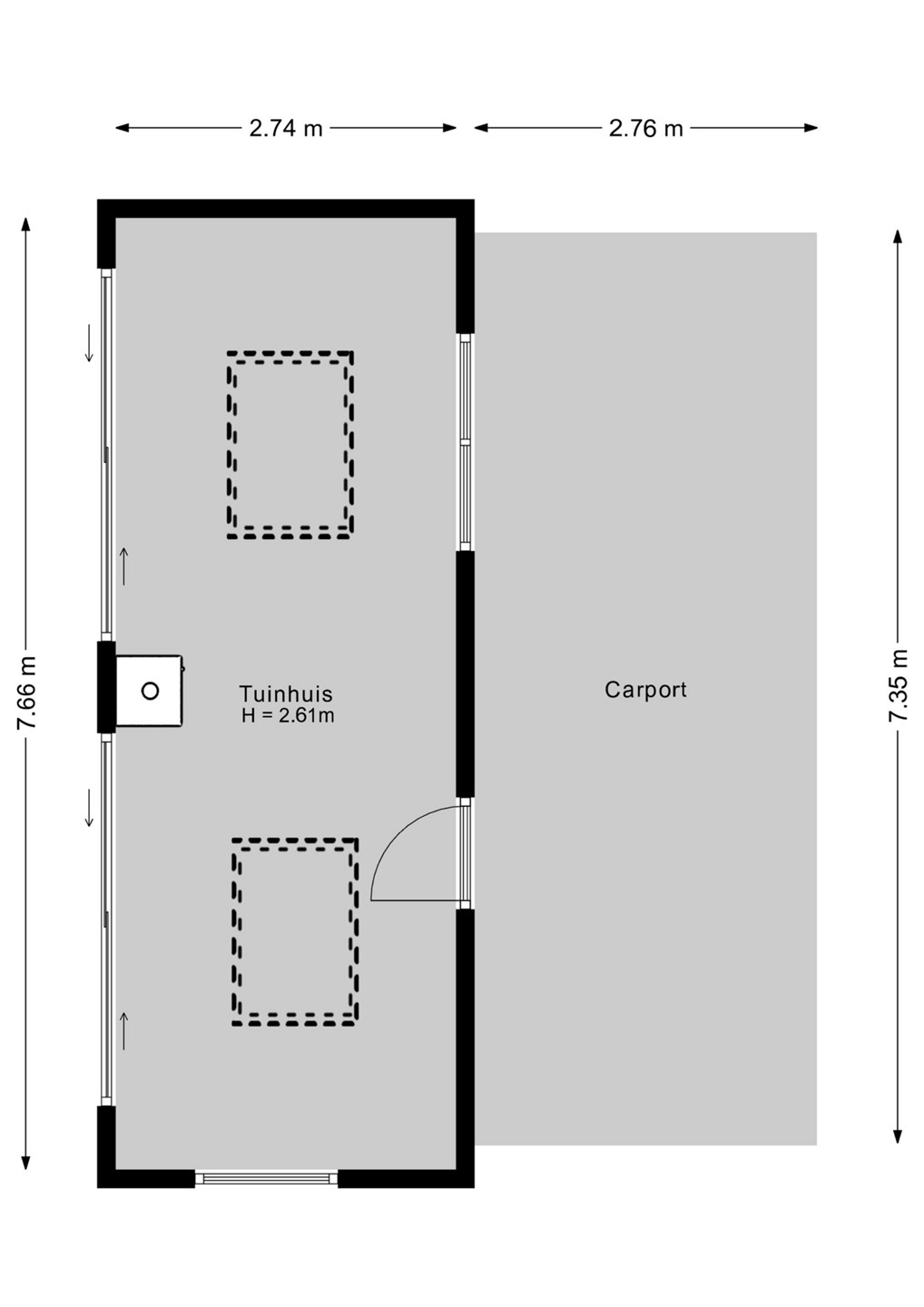 De vrijstaande houten garage is afgewerkt met een betonvloer en is voorzien van elektriciteit.