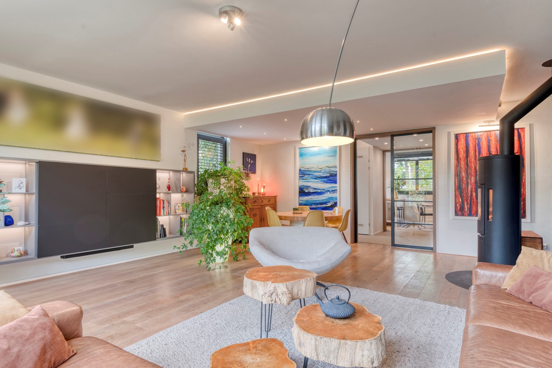 Wordt het weer eens tijd voor een ouderwetse spelletjesavond, genieten van een goed boek of op de bank ploffen voor een Netflix avond? Dit kan hier perfect! Via de en suite deuren stappen jullie de riante uitgebouwde woonkamer is afgewerkt met eiken houten vloer, gesauste wanden, deels verlaagd plafond voorzien van gezellige verlichting De woonkamer is voorzien van een heerlijke houtkachel en biedt toegang tot de tuin middels openslaande tuindeuren.
