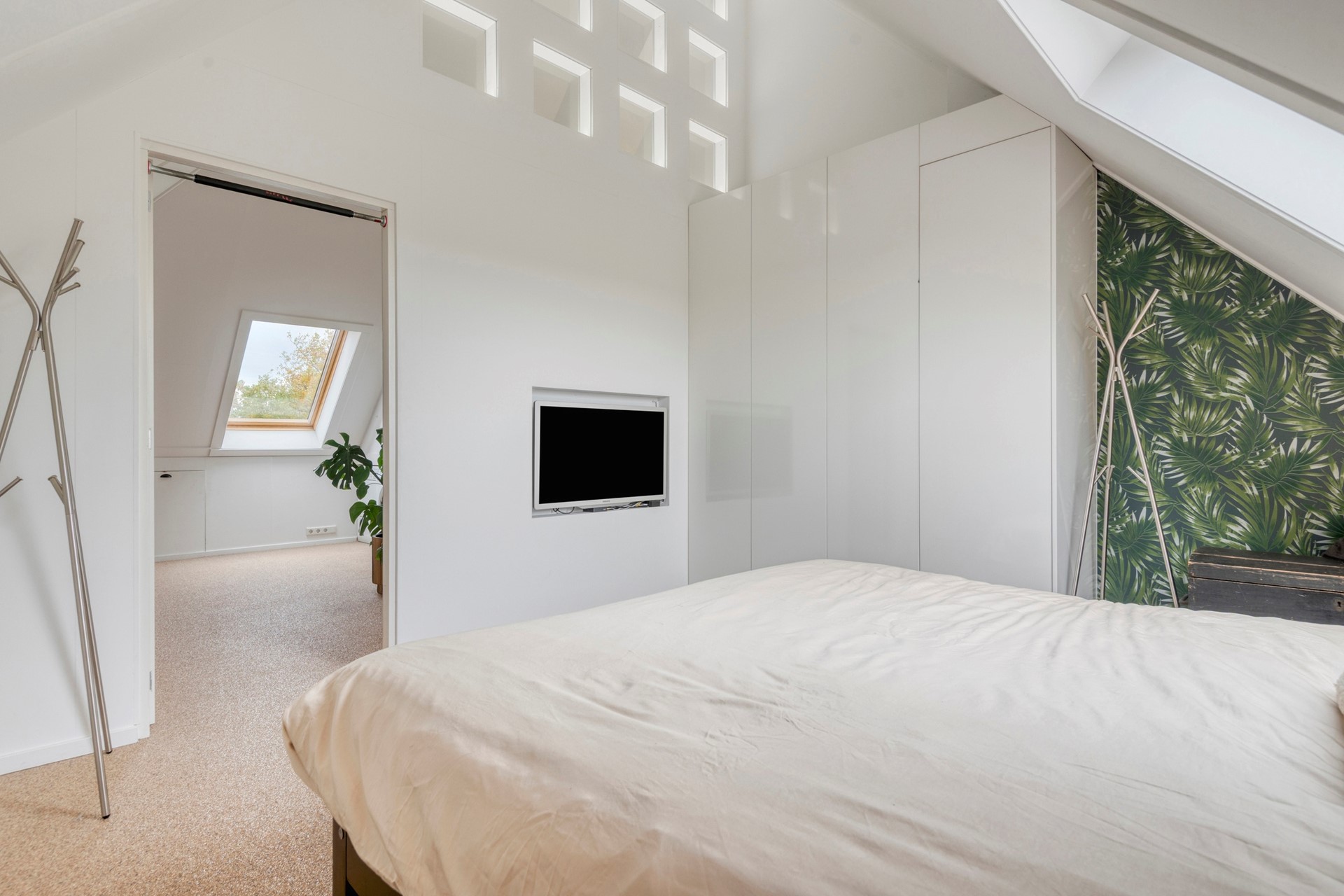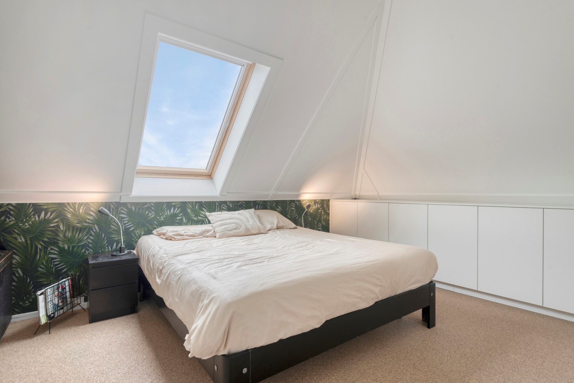 Slaapkamer 4 is afgewerkt met steentapijt vloer. De slaapkamer is voorzien van diverse inbouwkasten en een te verduisteren dakraam voor een mooie lichtinval.
