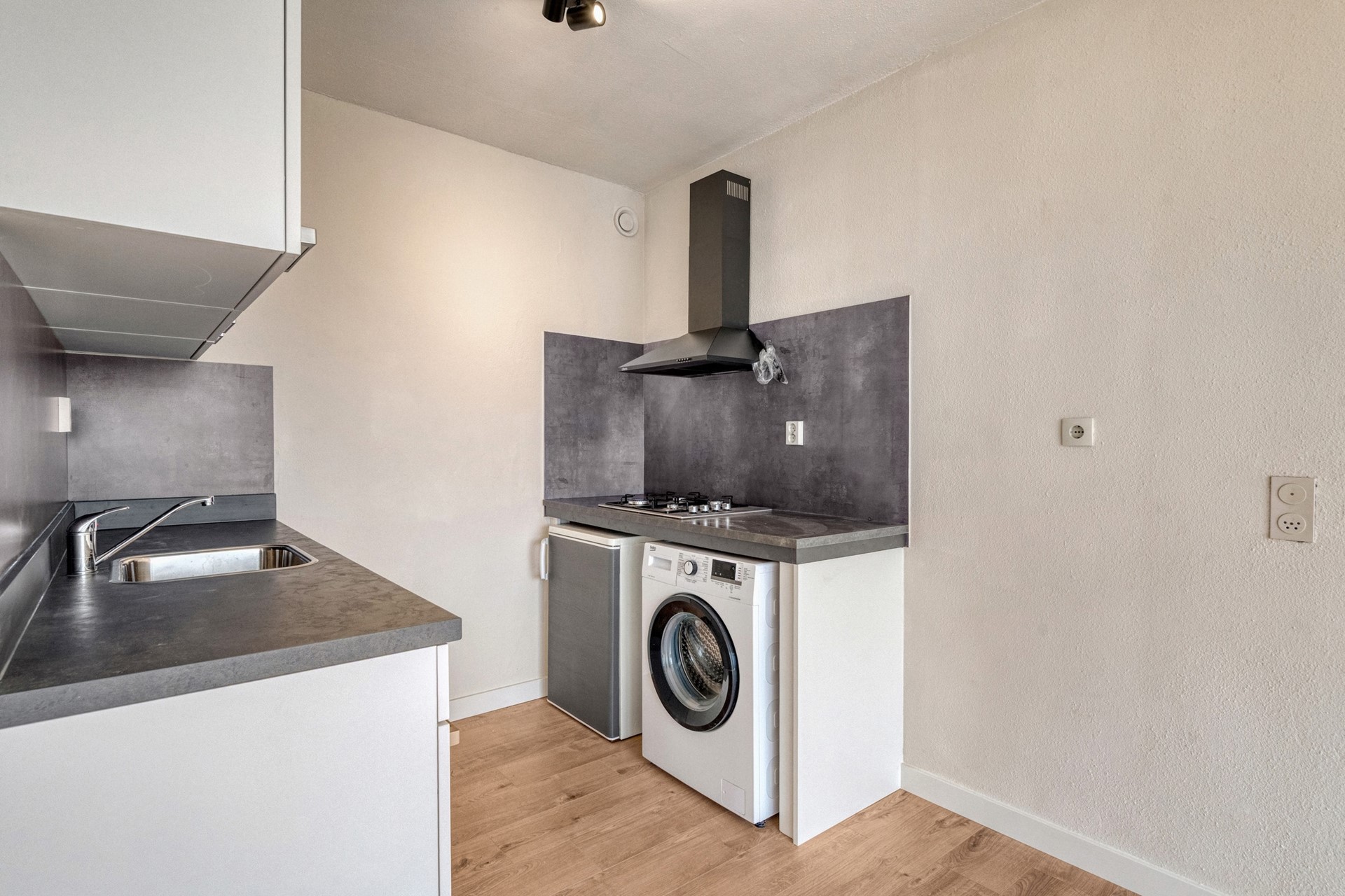 In de open keuken kan je de sterren van de hemel koken terwijl je gezellig in contact blijft met je gasten in de woonkamer. De open keuken is afgewerkt met een laminaat vloer (2025), gesauste wanden en een spuitwerk plafond. De recht opgestelde keukeninrichting is voorzien van een gasfornuis. afzuigkap, onder- en bovenkastjes, spoelbak, koelkast en wasmachine.