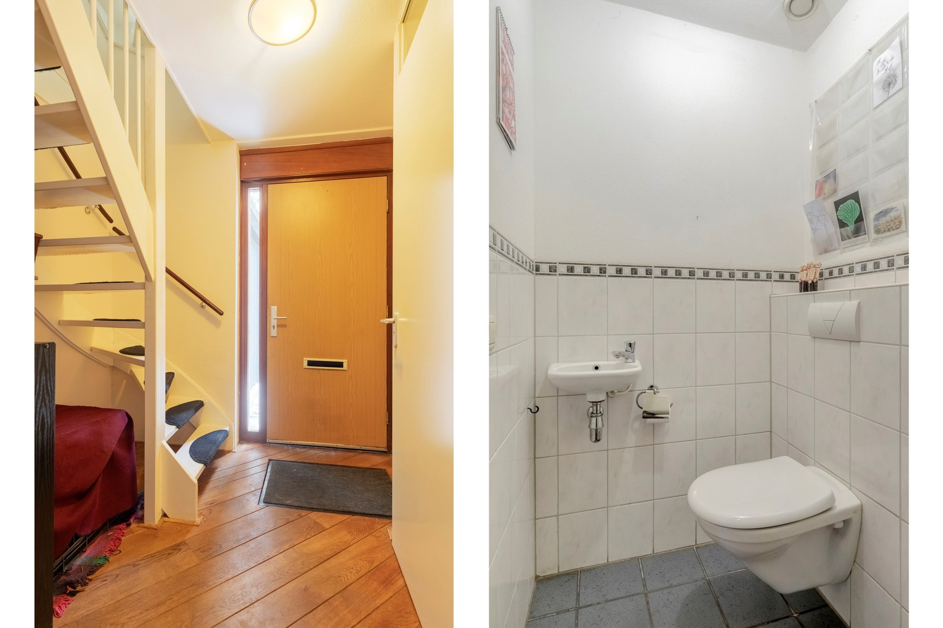 Jullie komen aan in deze geliefde én kindvriendelijke woonwijk, parkeren de auto op de oprit (of in de garage) en lopen de woning binnen. De hal c.q. entree is afgewerkt met een houten vloer, spachtelputz wanden en en spuitwerk plafond. De hal biedt toegang tot het betegelde toilet met fonteintje, garderobe, meterkast, woonkamer, keuken en eerste trapopgang middels een vaste trapopgang.