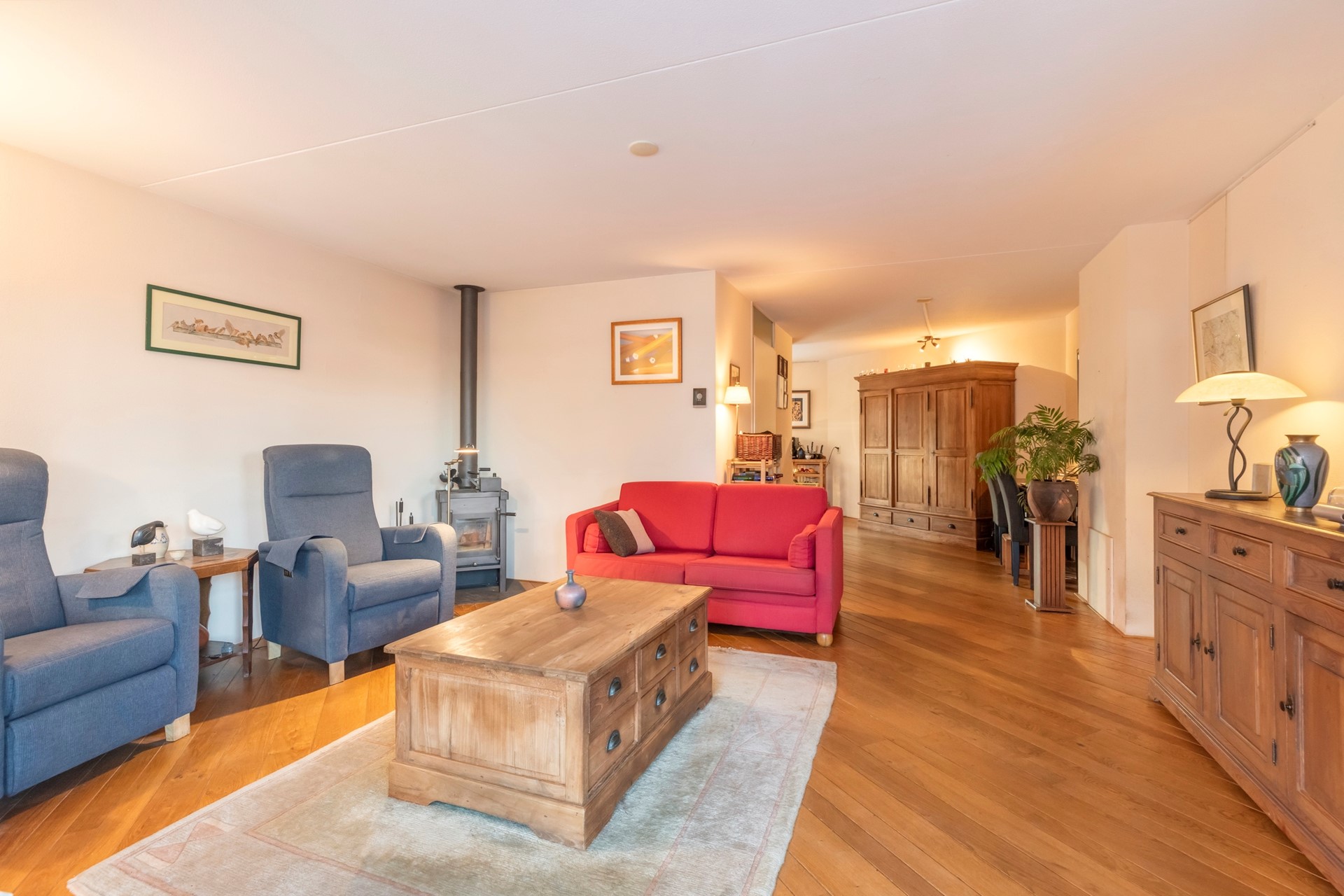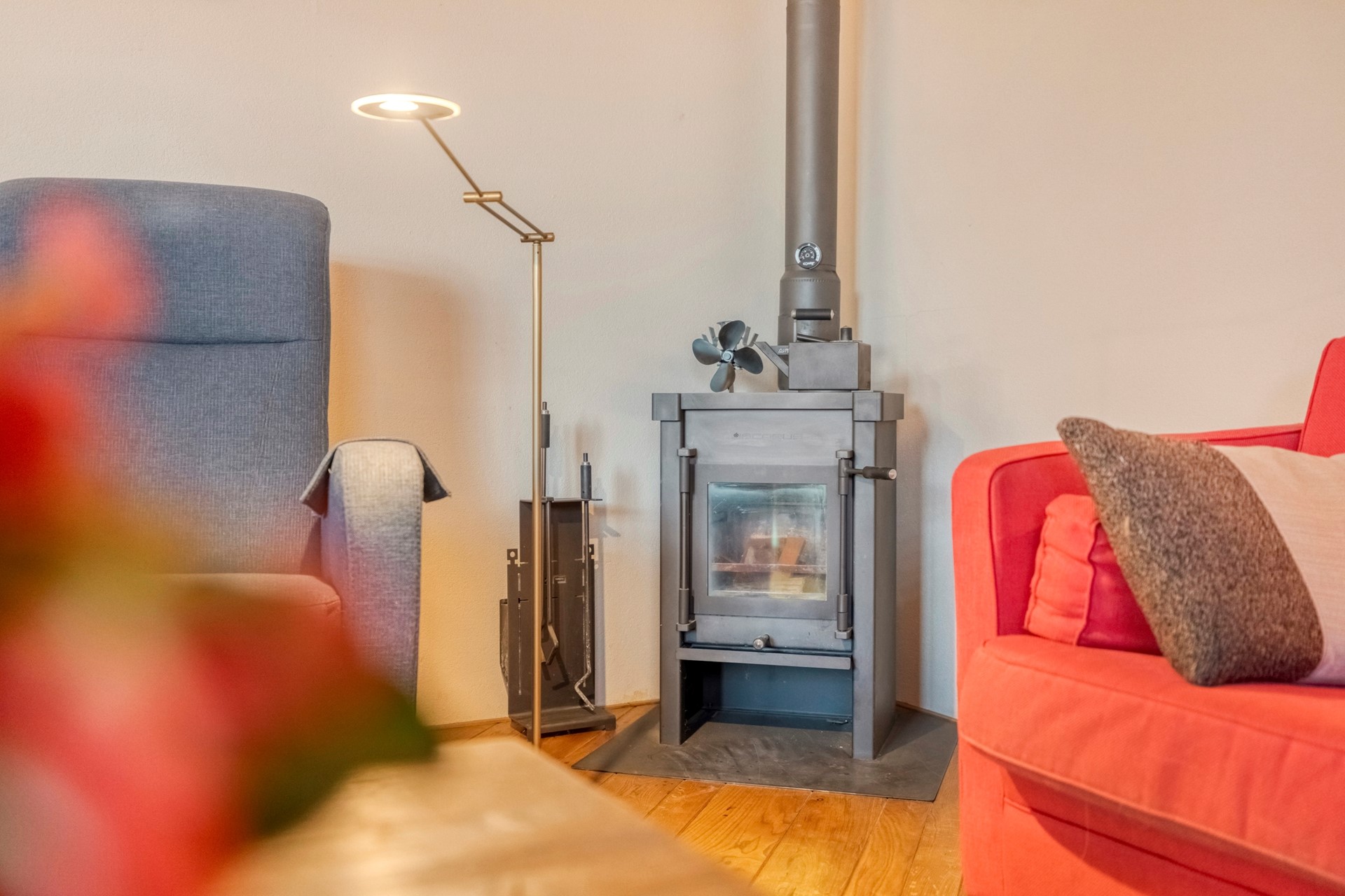 Van een lazy Sunday op de bank tot een gezellige spelletjesavond, deze woonkamer is geschikt voor elke gelegenheid. De sfeervolle woonkamer is afgewerkt met een houten vloer, spachtelputz wanden en een spuitwerk plafond. De woonkamer is voorzien van een houtkachel die jullie warm houd tijdens de koude winterdagen. Vanuit de woonkamer is er toegang tot de serre en de keuken.