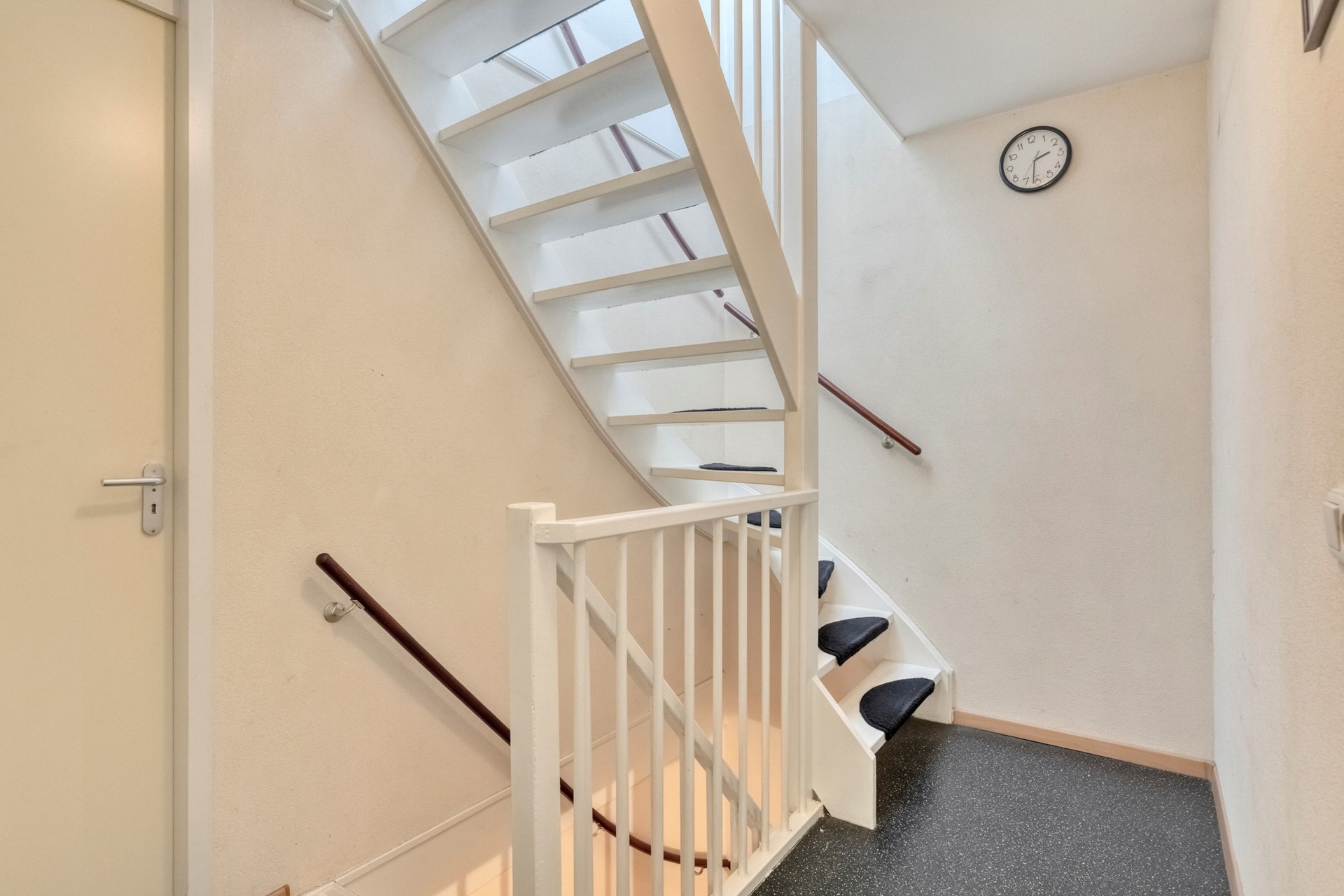 Middels de vaste trap op de begane grond bereiken jullie de overloop op de eerste verdieping. De overloop is afgewerkt met een zeilvloer, spachtelputz wanden en een spuitwerk plafond. De overloop biedt toegang tot twee slaapkamers, de badkamer en vaste trapopgang tot de tweede verdieping.