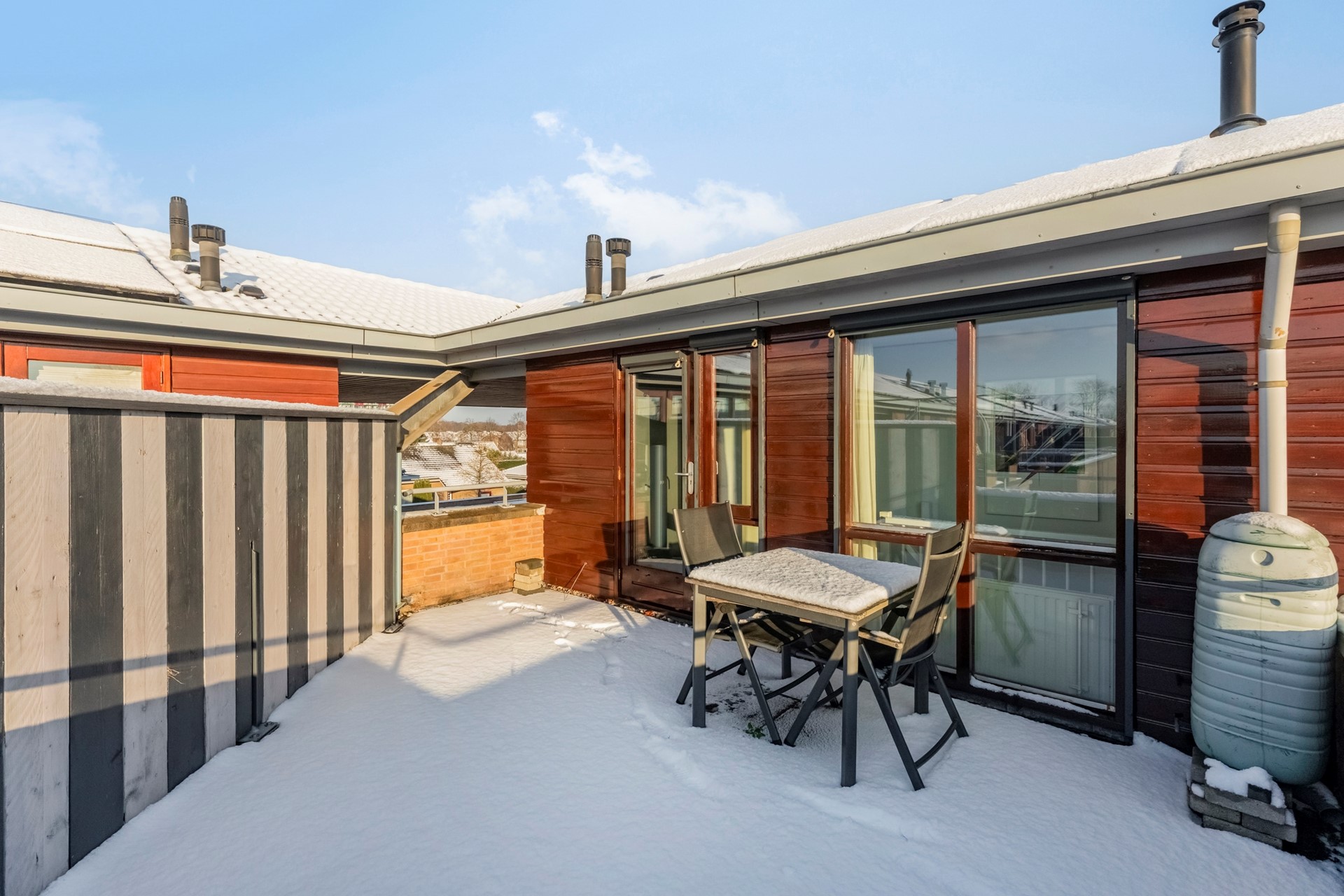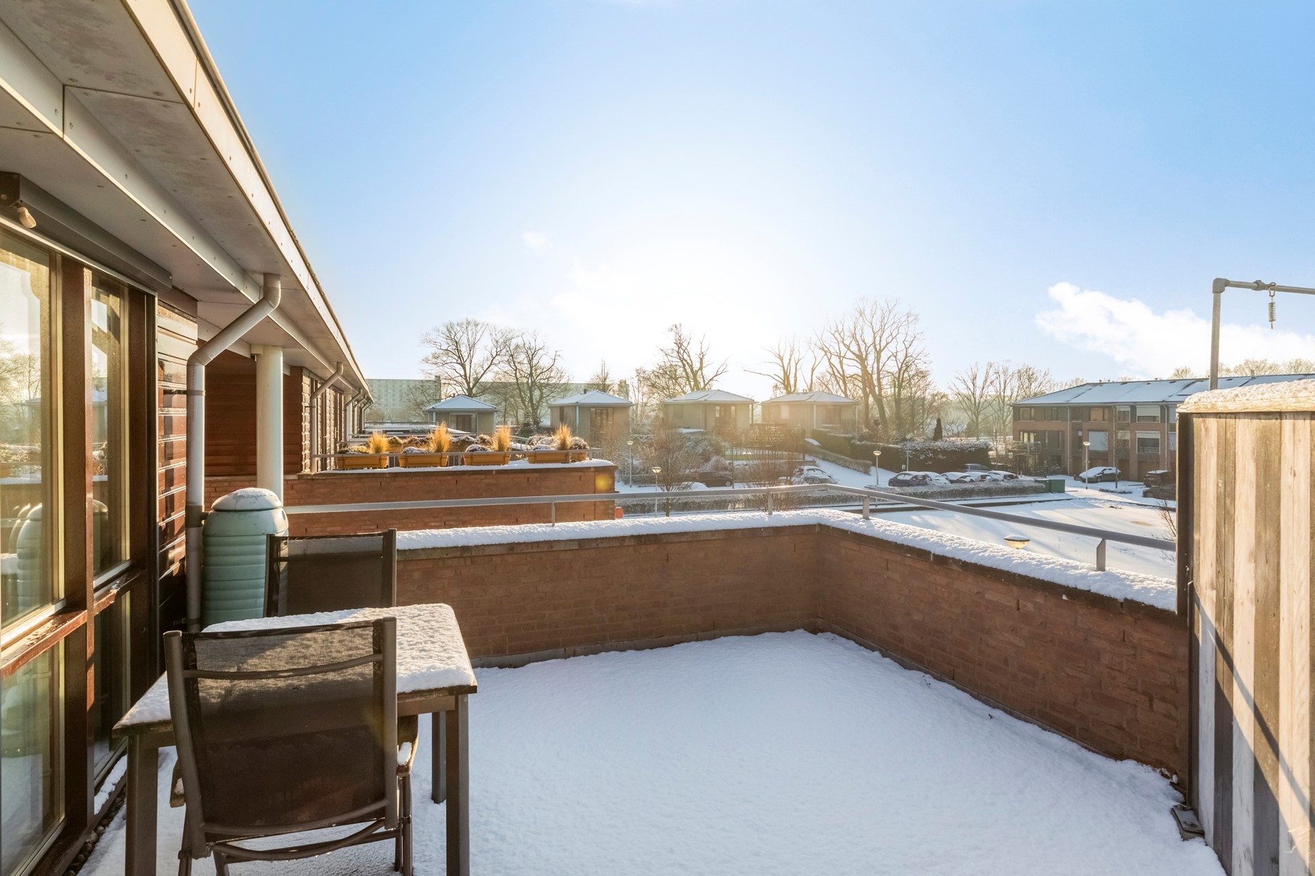 Het dakterras vangt de zon tot in de late uurtjes door de ligging op het Westen. Perfect om te genieten van rust, een goed boek en de ondergaande zon.