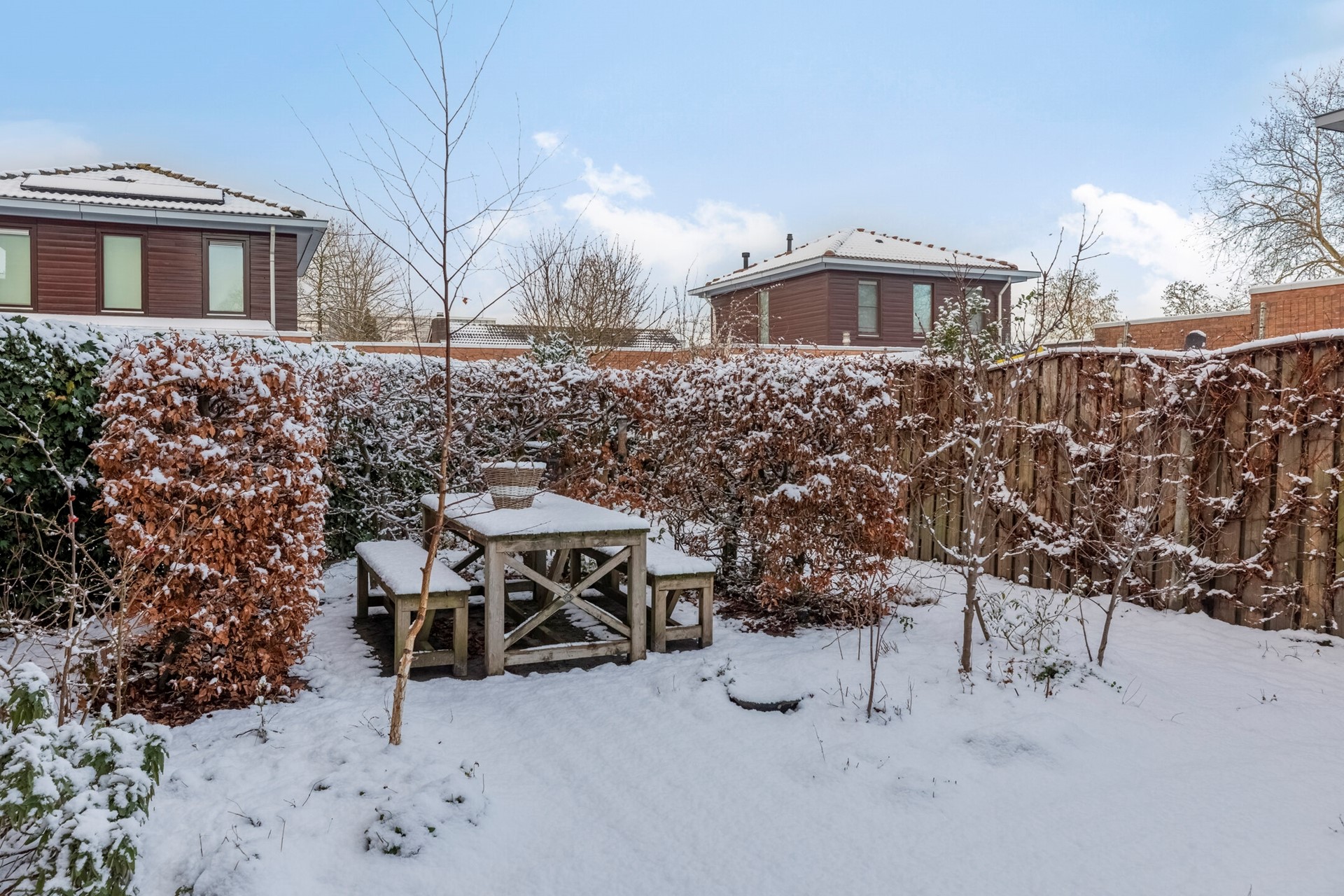 Jullie bourgondische gezelligheid past perfect bij de riante tuin. In de achtertuin kunnen jullie heerlijk barbecueën en genieten van het buitenleven. De achtertuin is voorzien van diverse zitplekjes, plantenborders en houthok (handig geplaatst onder de dakverlenging).
