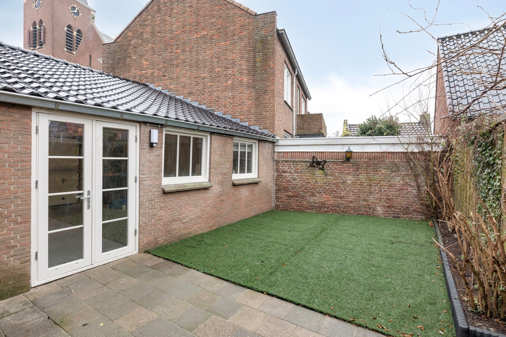 Meer tijd om te genieten van het buitenleven in deze onderhoudsvriendelijke tuin! De achtertuin is voorzien van bestrating, borders, kunstgazon en biedt toegang tot de garage. Vanuit de tuin heeft u een prachtig uitzicht op de Sint-Petrus en Pauluskerk.