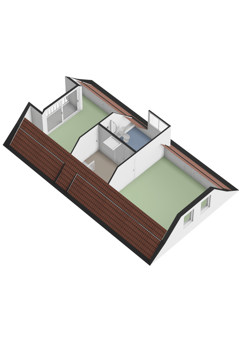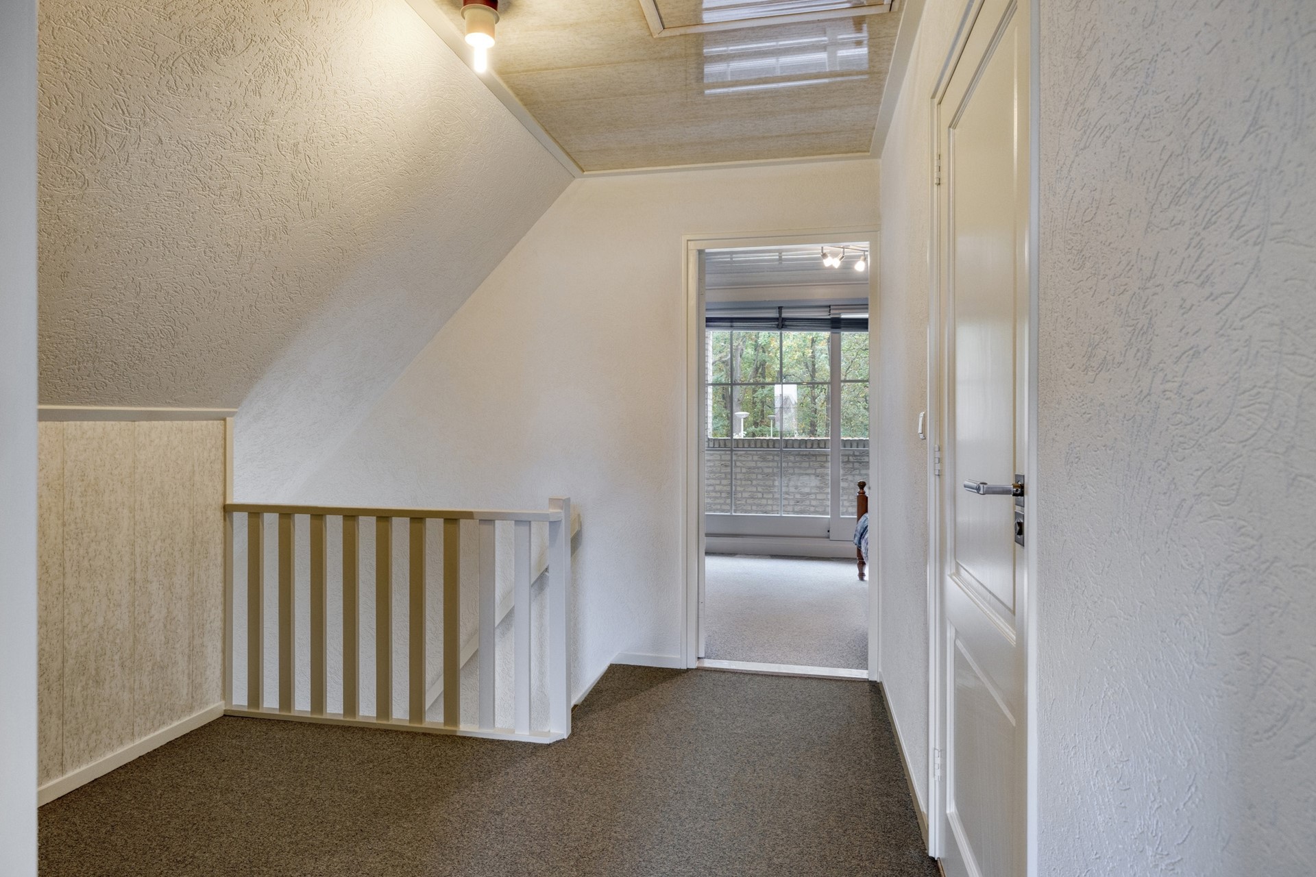 Middels de vaste trap op de begane grond bereiken jullie de overloop op de eerste verdieping. De overloop is afgewerkt met vloerbedekking, sierpleister wanden en een kunststof delen plafond. De overloop biedt toegang tot twee riante slaapkamers, de badkamer en de bergzolder.