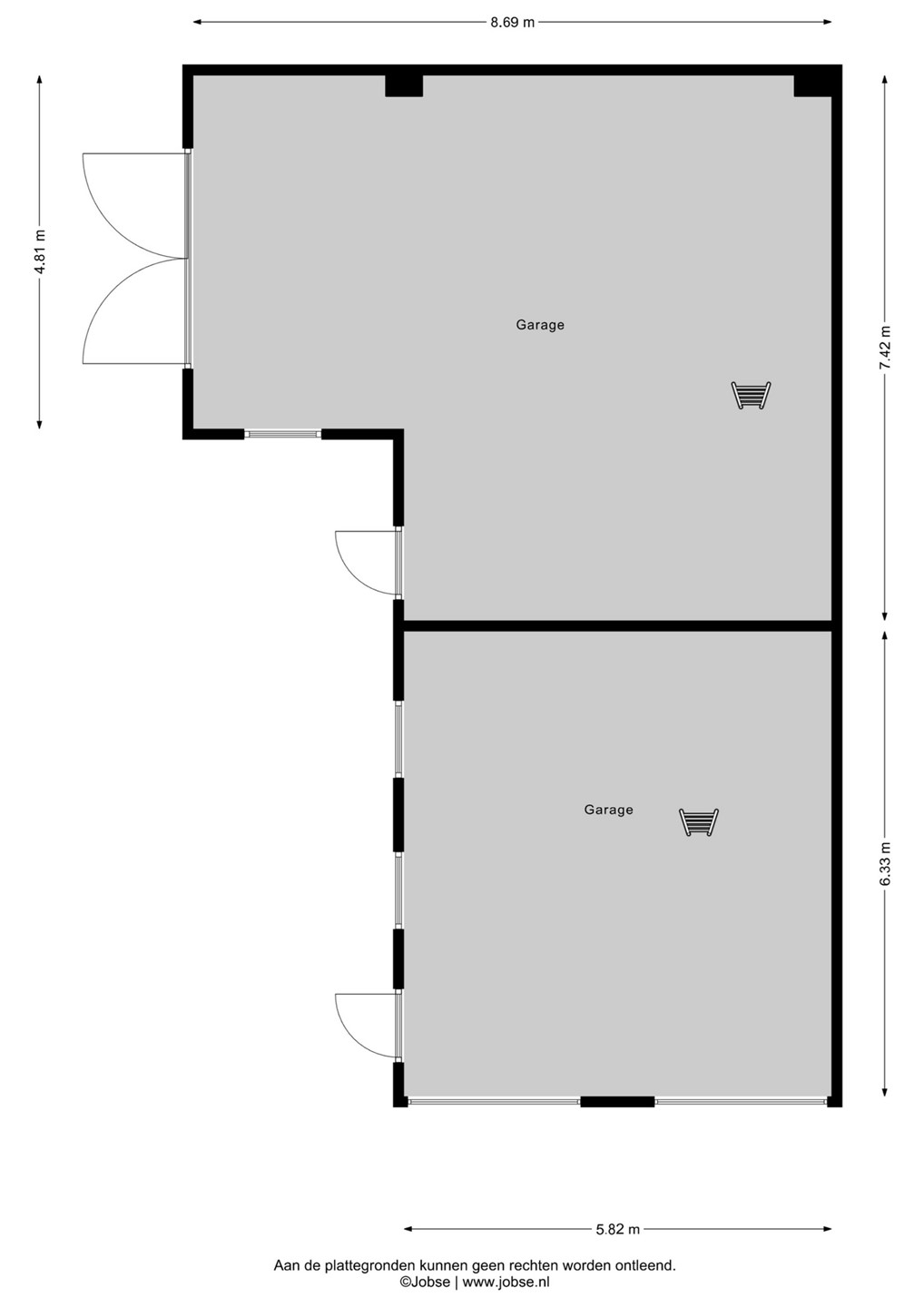 De vrijstaande stenen garage bestaat uit twee delen en heeft een totale oppervlakte van maar liefst 110 m². Het eerste deel van de garage beschikt over twee garagedeuren, krachtstroom en een loopdeur richting de tuin. Het tweede deel van de garage heeft tevens een tuindeur en twee openslaande deuren. Beide zijn voorzien van elektra (krachtstroom) en beschikken over een vliering.