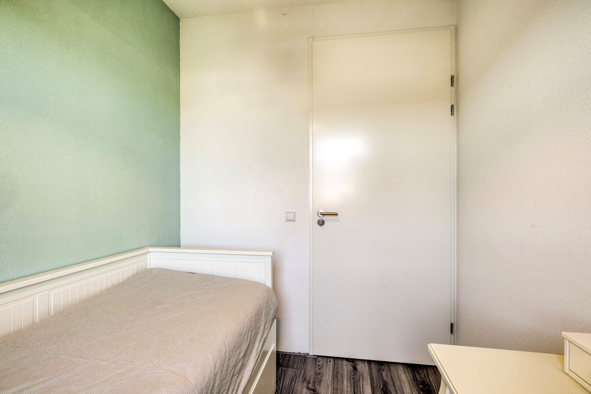 Slaapkamer 3 is afgewerkt met een laminaat vloer, spachtelputz wanden en spuitwerk plafond.