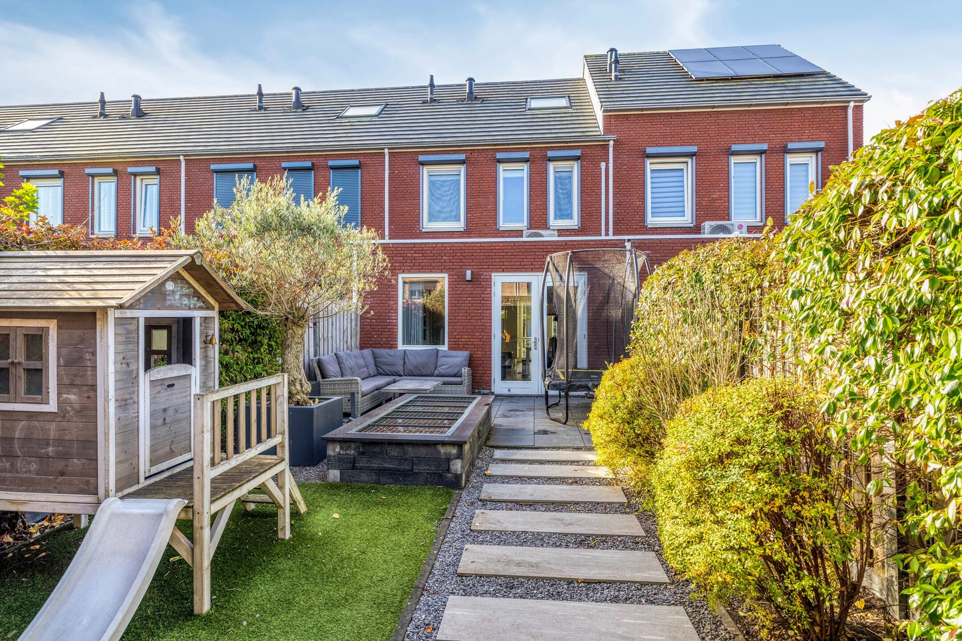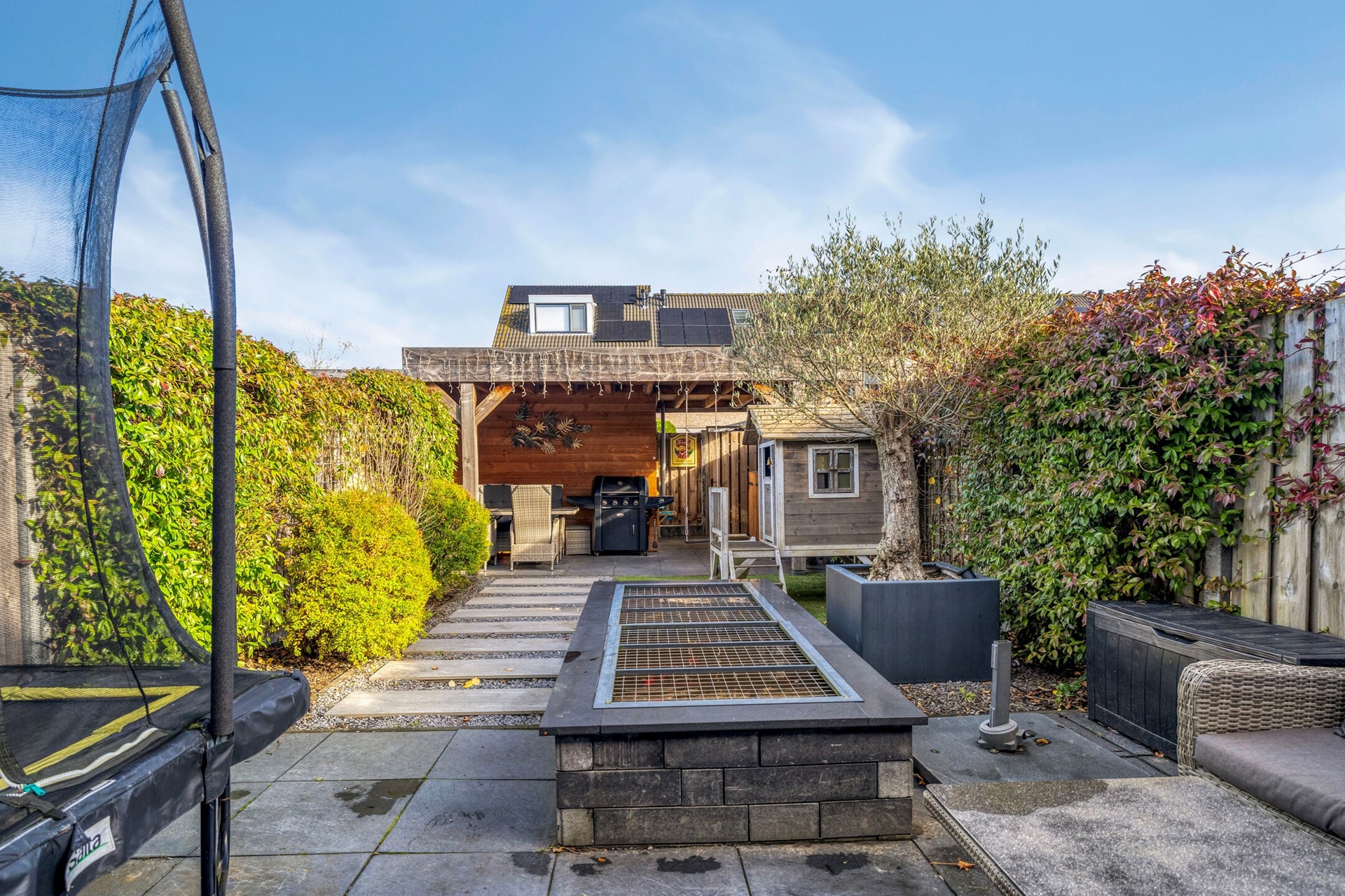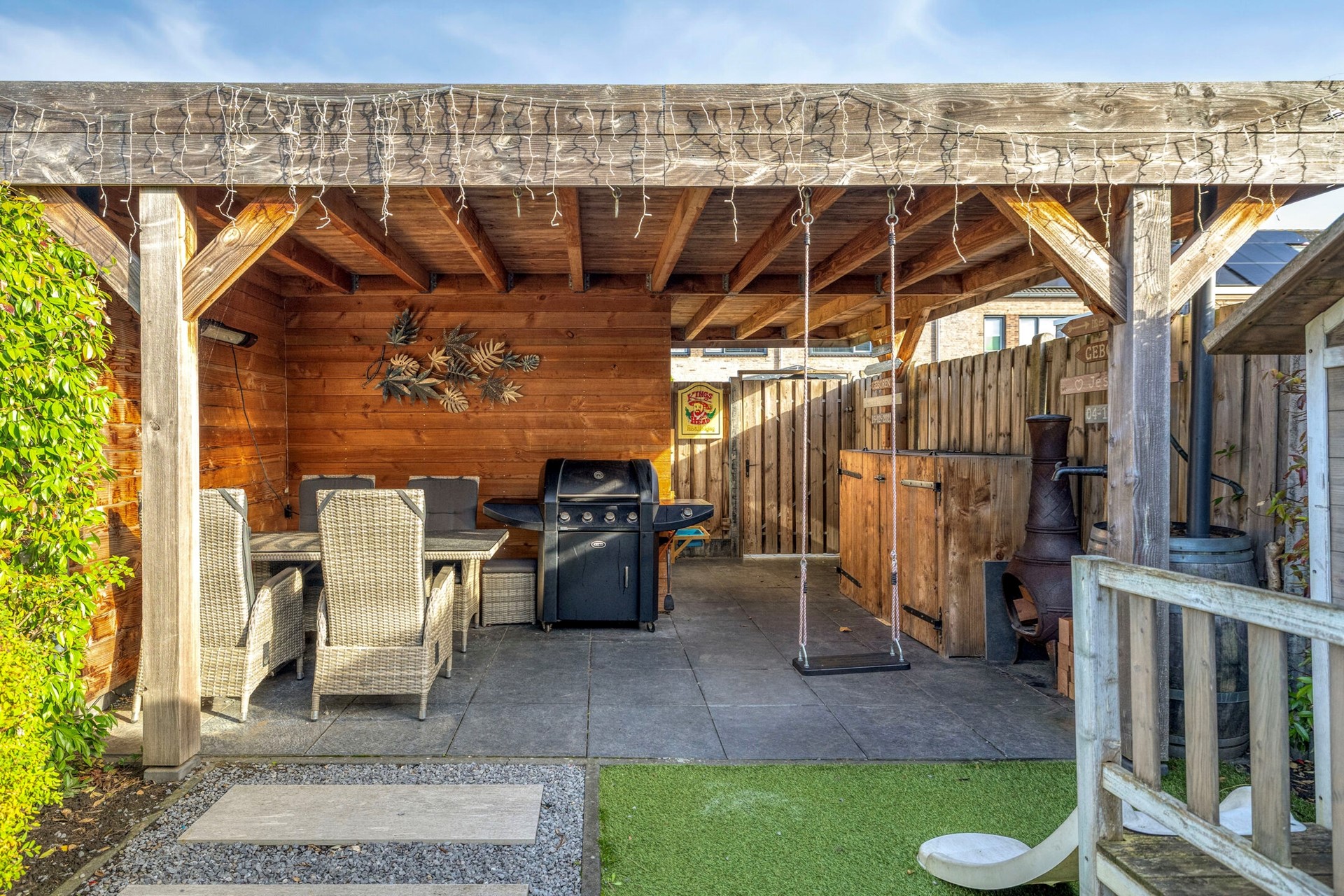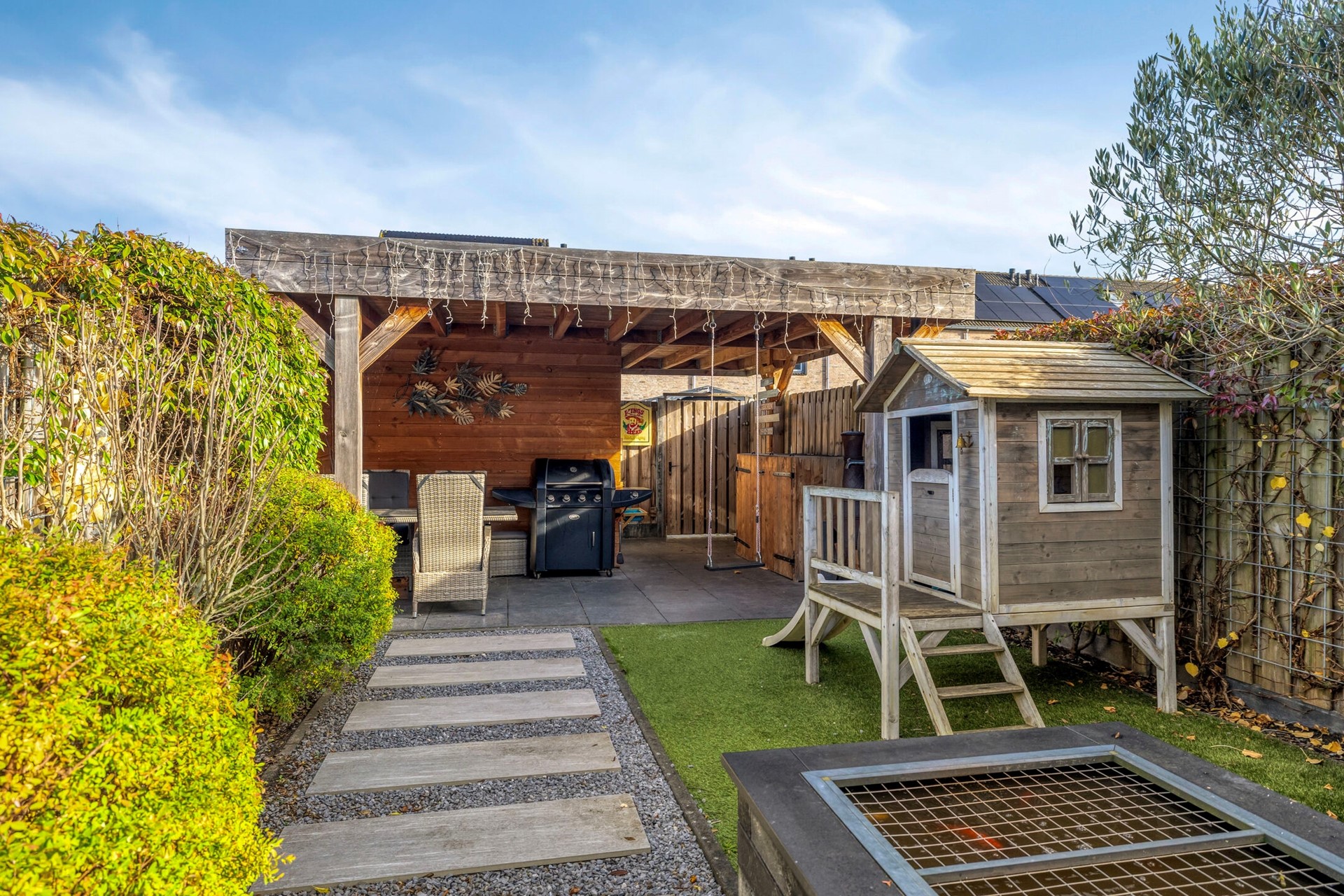 Deze woning heeft een riante voor- en achtertuin. De achtertuin is voorzien van een kunstgazon, borders, sierbestrating, vijver, terras, overkapping, achteruitgang en berging. In de achtertuin zijn jullie vaak met familie en vrienden te vinden onder het genot van een hapje en een drankje.