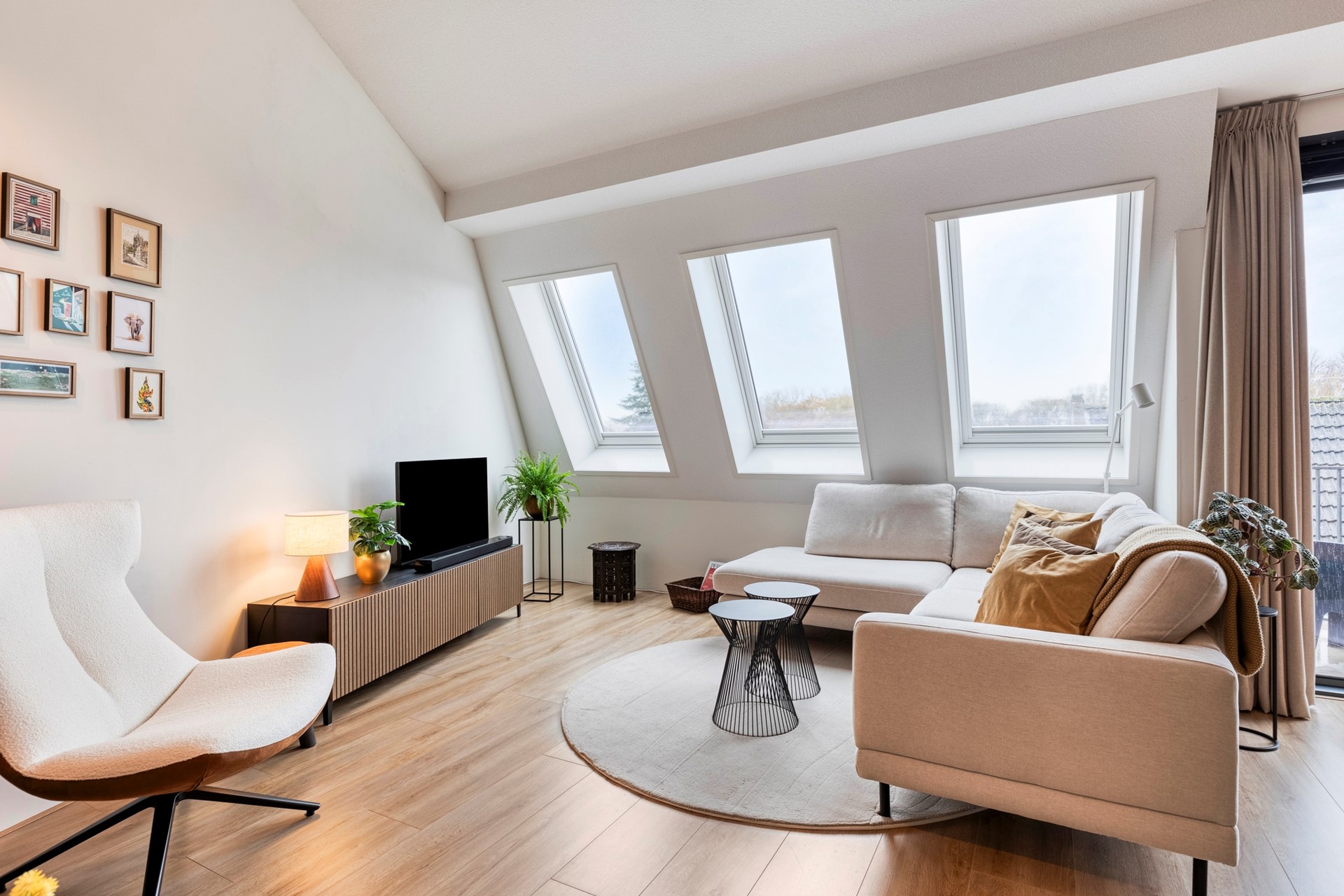 De woonkamer is de ideale plek om te ontspannen, films te kijken of bij te kletsen met vrienden en familie. Door de unieke hoge nok, maar liefst drie Velux dakramen en de schuifpui geniet je hier elke dag van natuurlijk licht. De woonkamer biedt toegang tot het balkon. Het balkon is gunstig gelegen op het zonnige Zuiden en door de ligging op de bovenste verdieping kijk je vrij uit over Steenbergen met een zicht op het Stadspark.