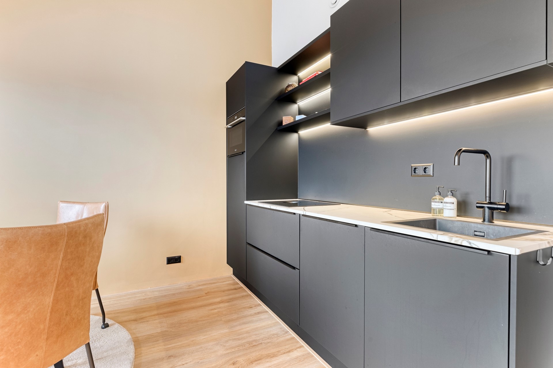 Een droom voor elke keukenliefhebber! Ontdek het plezier van koken in de open woonkeuken! De handgemaakte (Tulp) keuken is voorzien van onder- en bovenkastjes, BORA kookplaat met geïntegreerde afzuiging, koel-vriescombi, combi-oven, keukenblad in marmerlook met koperkleurige details, vaatwasser en spoelbak. De open keuken zorgt ervoor dat je in contact blijft met je visite of makkelijk een oogje op de tv kunt houden om niks van jouw favoriete serie te missen.