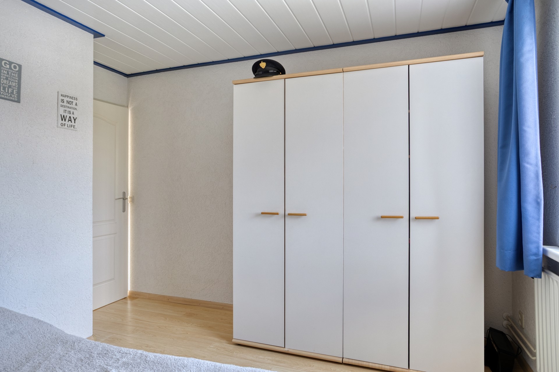 Slaapkamer 4 is afgewerkt met ene laminaat vloer, gesauste wanden en kunststof delen plafond.