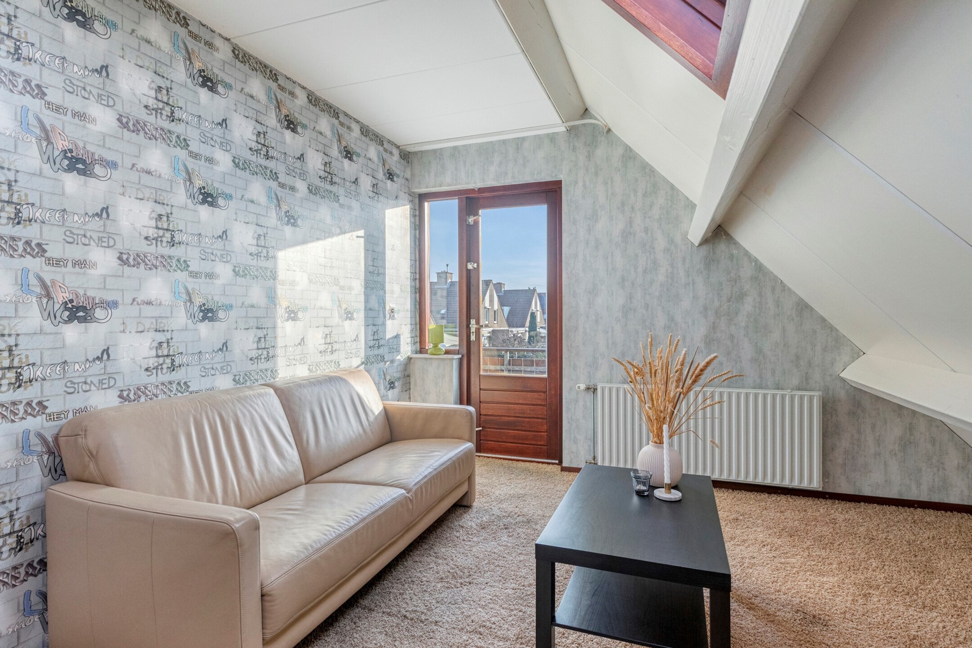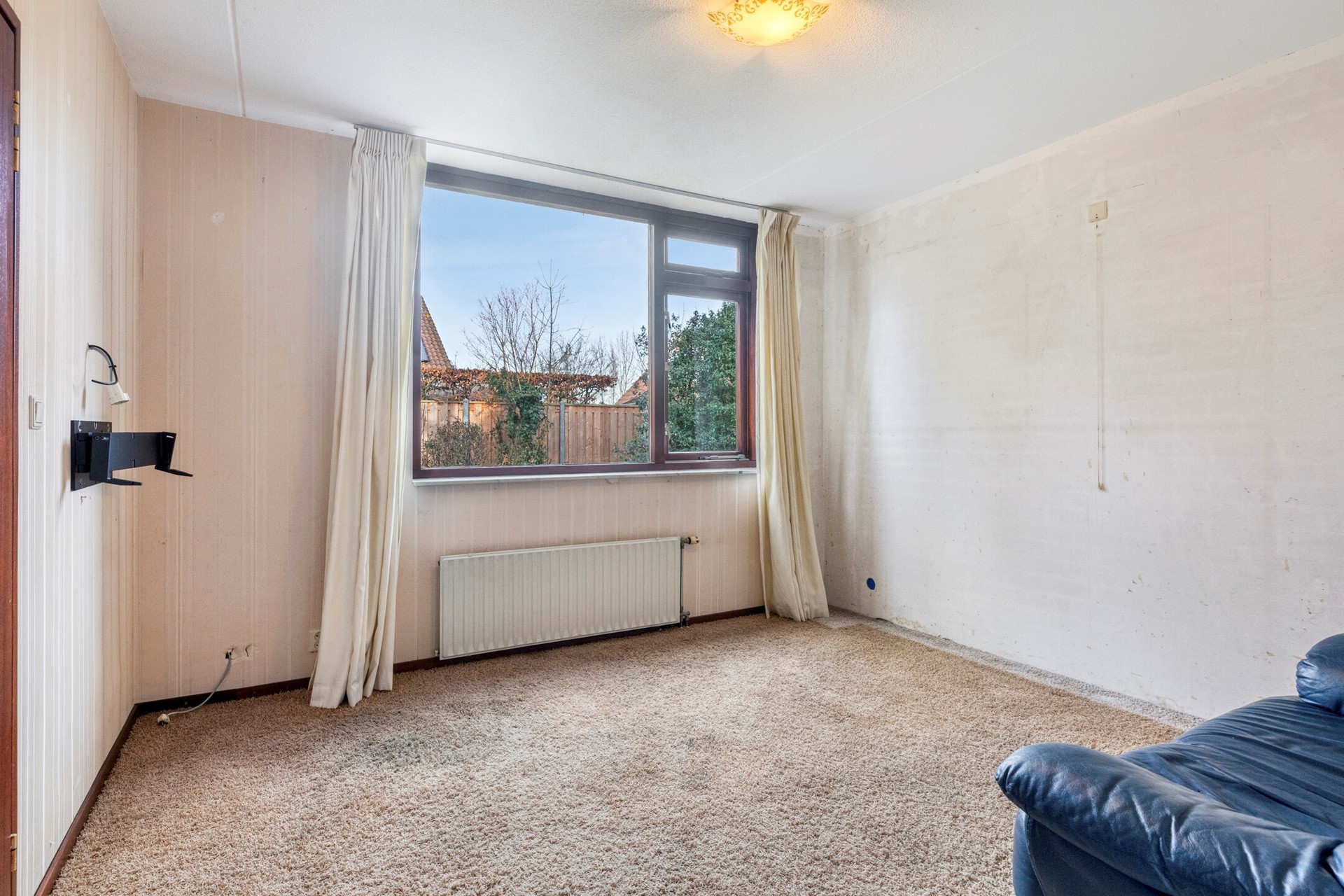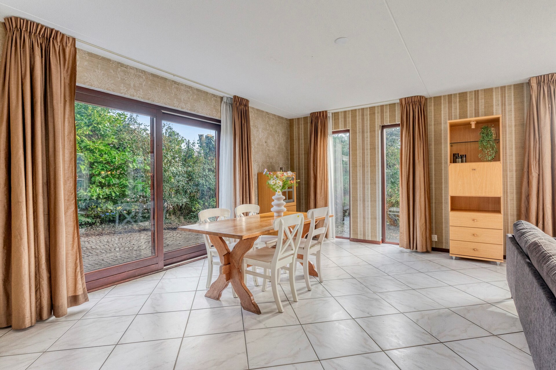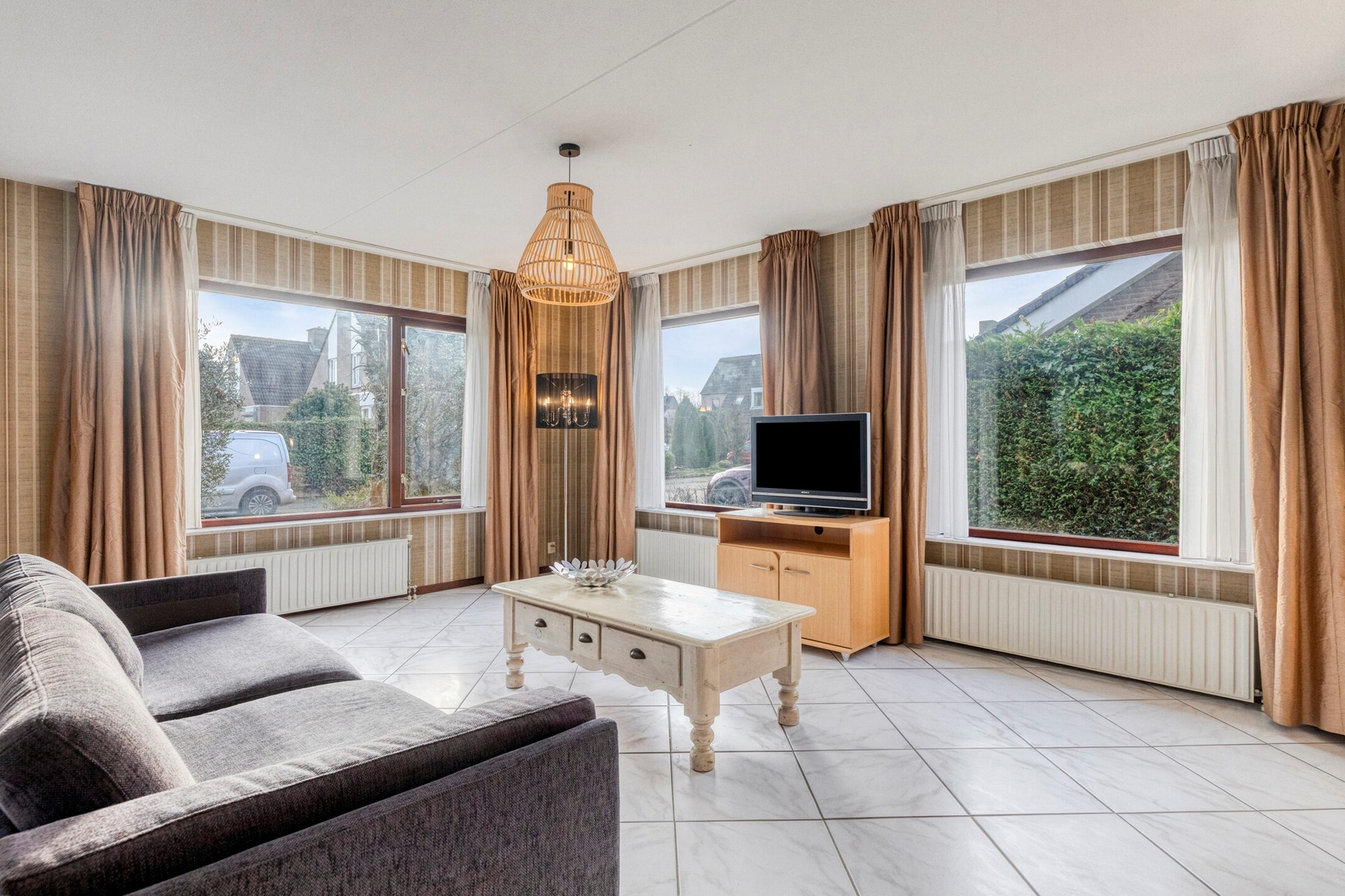 De woonkamer is afgewerkt met een betegelde vloer, behangen wanden en een spuitwerk plafond. De woonkamer is voorzien van veel lichtinval door de vele raampartijen. Middels een hardhouten schuifpui is er toegang tot de achtertuin en staat binnen en buiten met elkaar in verbinding. Vanuit de woonkamer is er toegang tot de half open keuken.