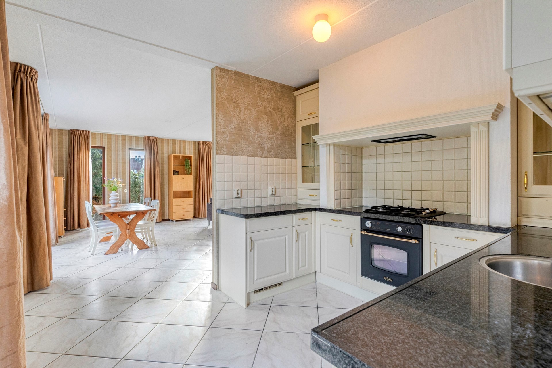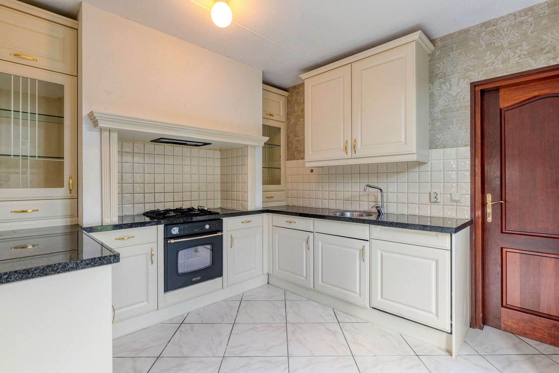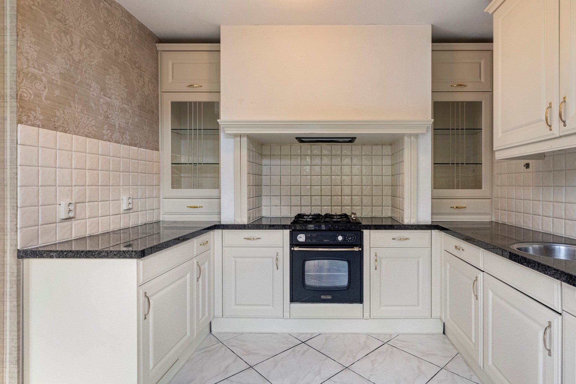 Ruimte en mogelijkheden: dé plek om jullie ideale droomkeuken te ontwerpen! De half open keuken is afgewerkt met een betegelde vloer, behangen wanden en een spuitwerk plafond. De in hoek opgestelde keukeninrichting is o.a. voorzien van diverse kastruimte, afzuigkap, gasfornuis, spoelbak en biedt toegang tot de bijkeuken. Tevens is er vanuit de keuken toegang tot de achtertuin middels een openslaande tuindeur.
