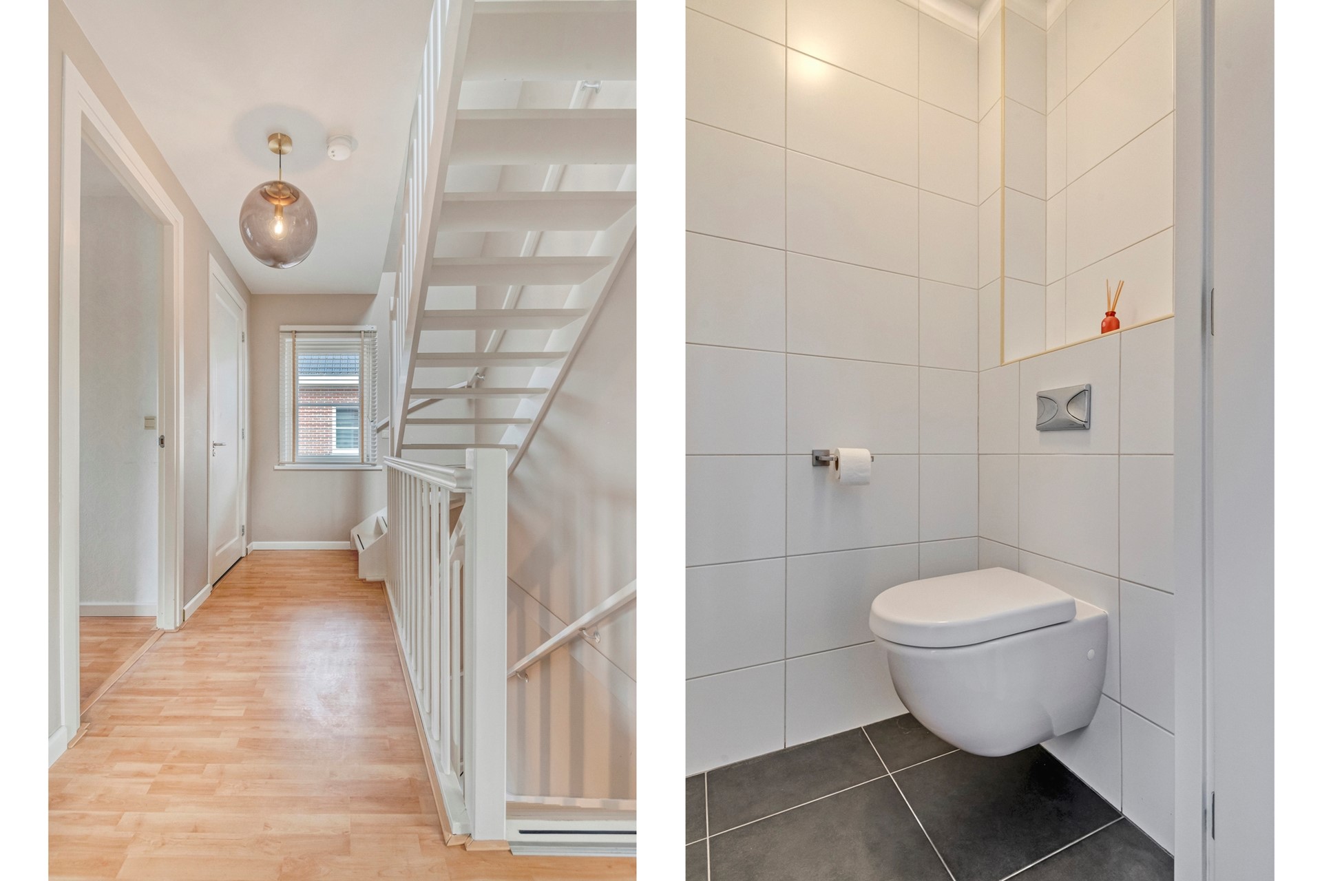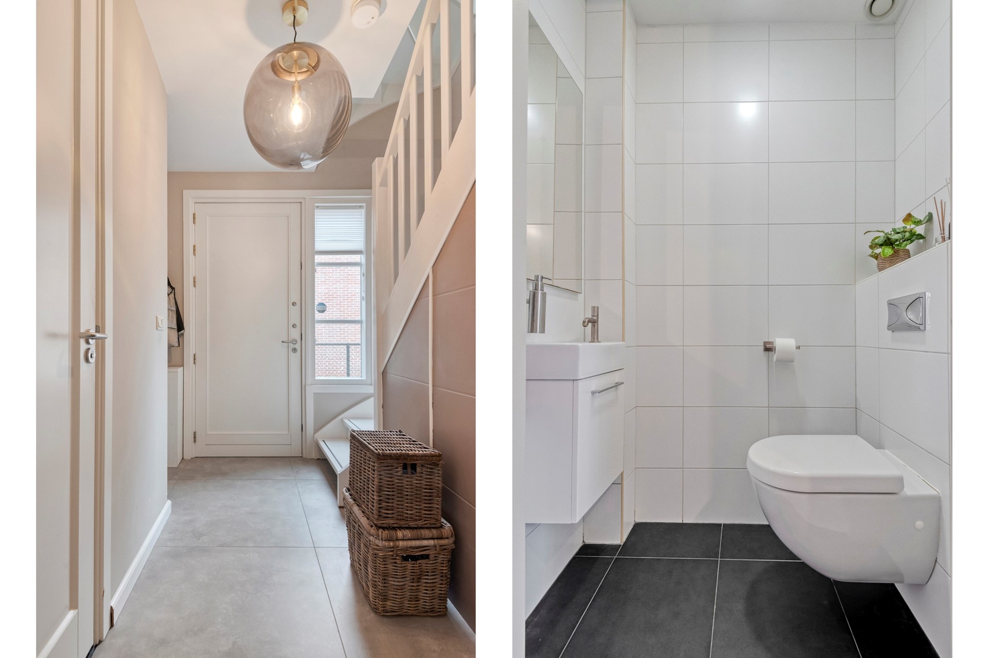 Jullie komen aan bij de woning en parkeren de auto op de oprit. Middels de fraaie voortuin komen jullie de woning binnen. De entree is afgewerkt met een betegelde vloer, gestucte wanden en een gestuct plafond. De entree biedt toegang tot de woonkamer, keuken, betegeld toilet met fonteintje, meterkast, trapkast en de eerst verdieping middels een vaste trapopgang.