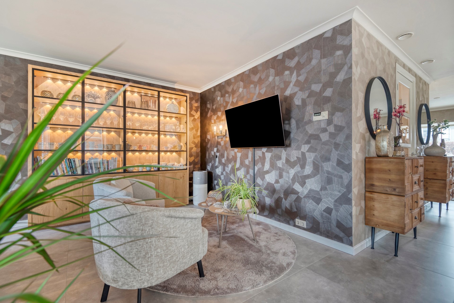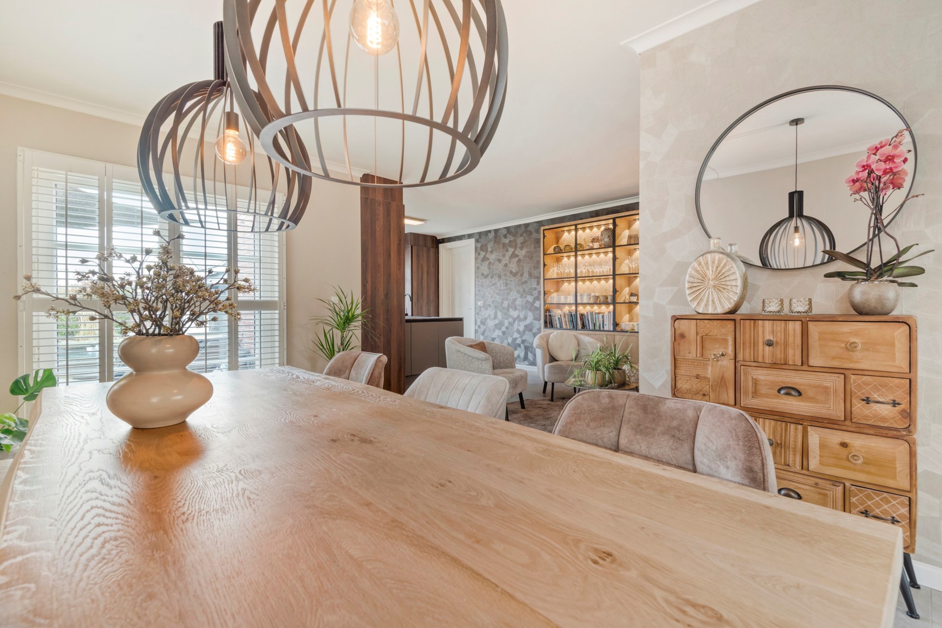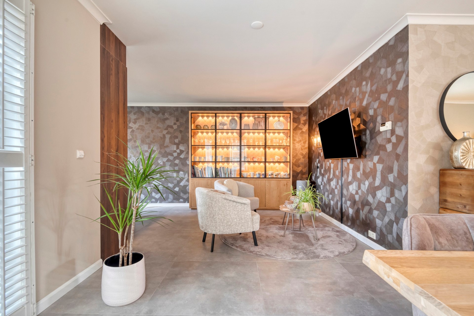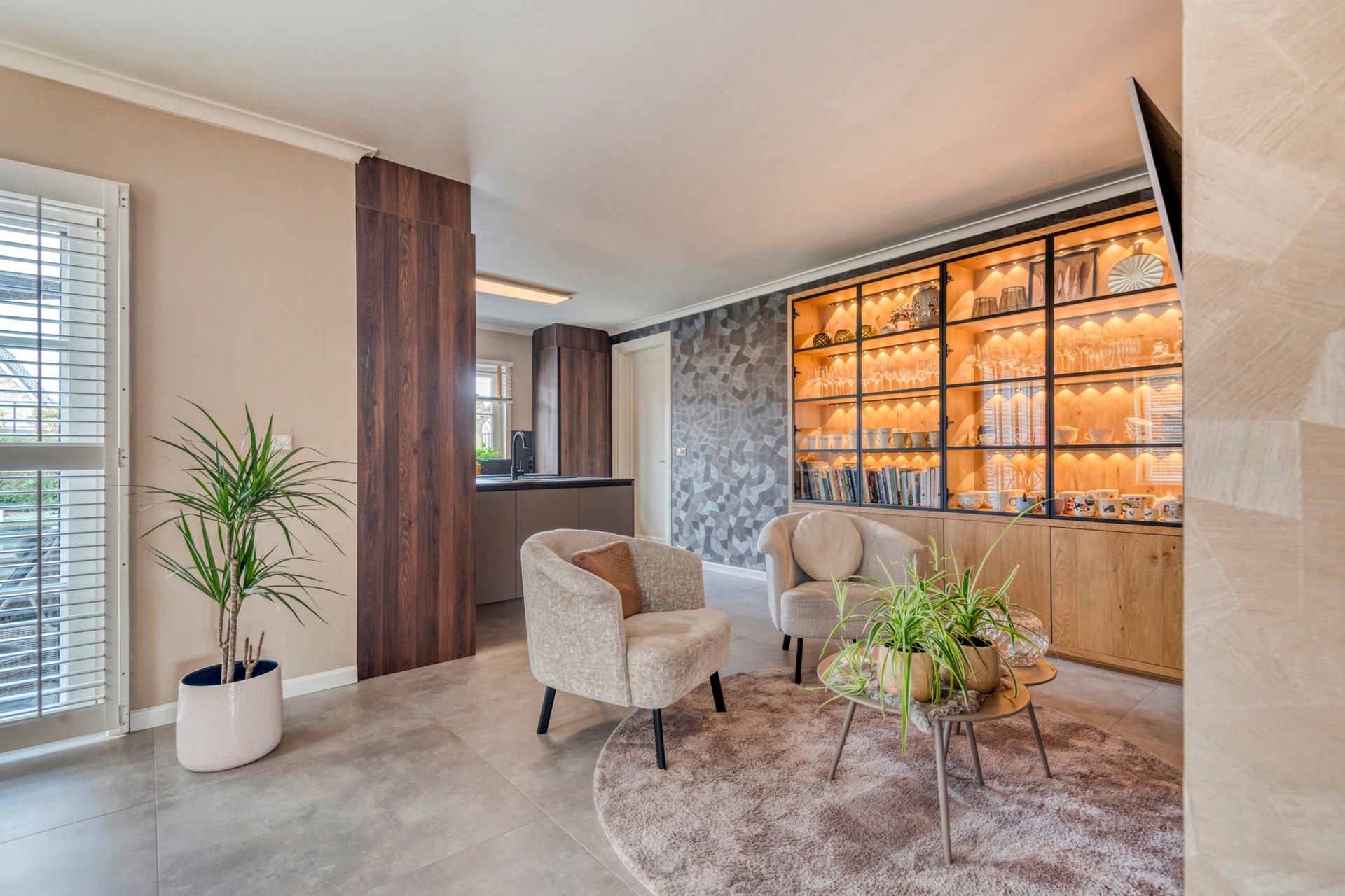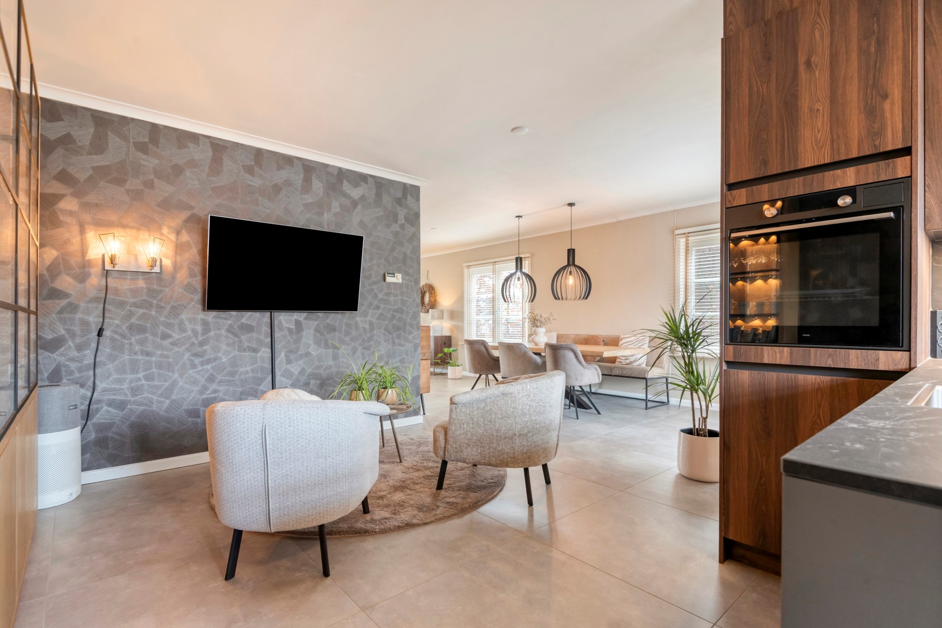 De zithoek is dé plek om samen te komen, waar je heerlijk kunt ontspannen met een drankje, terwijl het sfeervolle interieur en het natuurlijke licht zorgen voor een warme en uitnodigende sfeer.