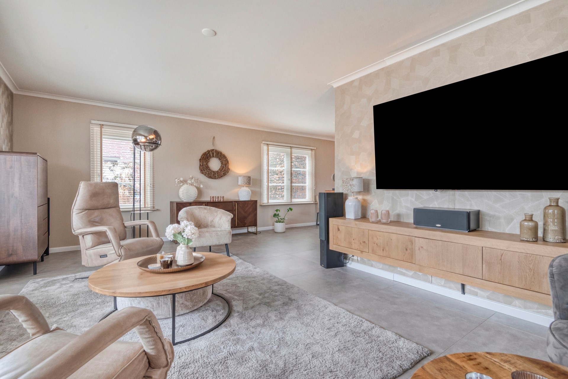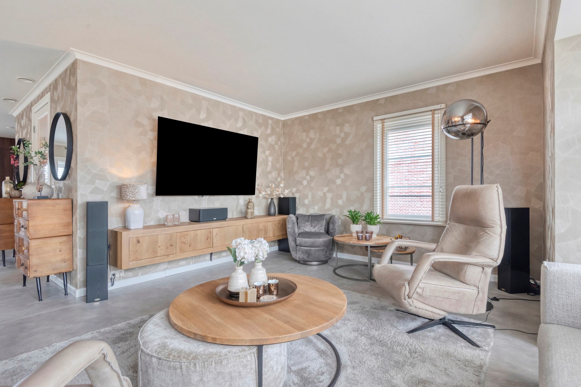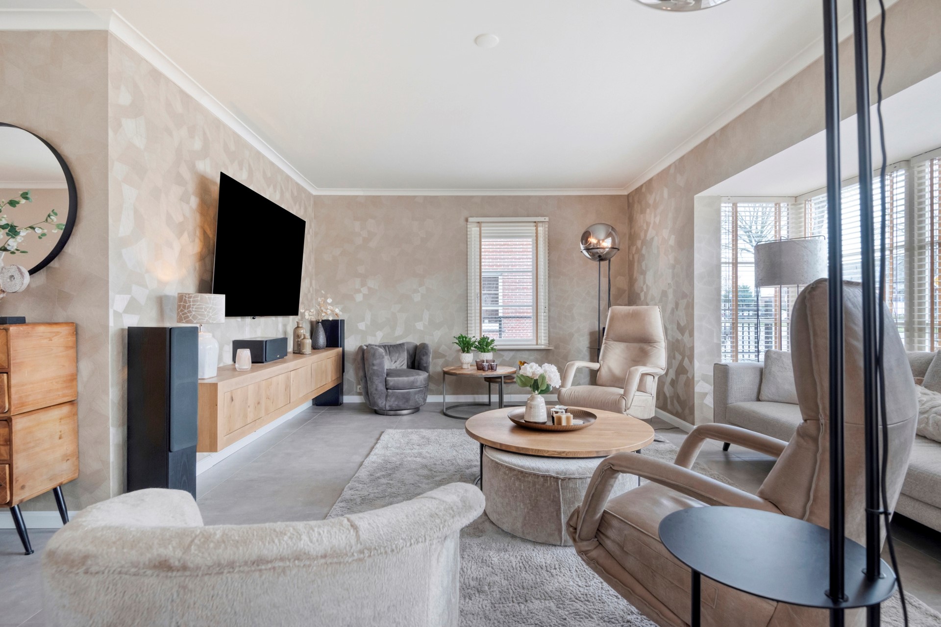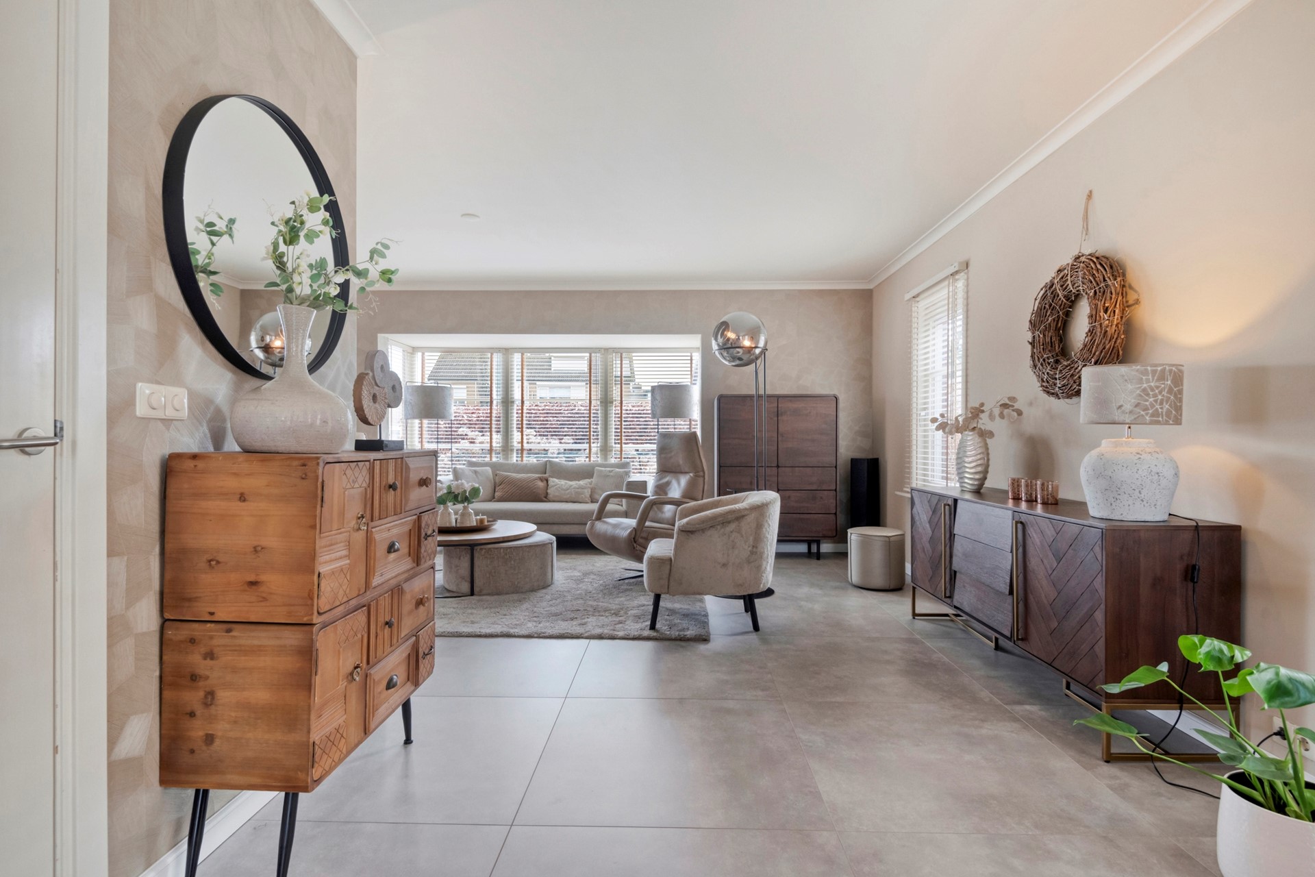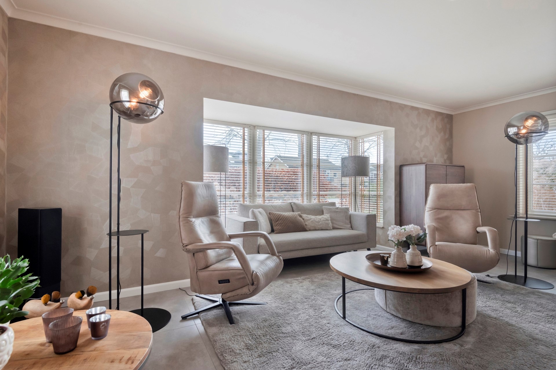 De zithoek is dé plek om samen te komen, waar je heerlijk kunt ontspannen met een drankje, terwijl het sfeervolle interieur en het natuurlijke licht zorgen voor een warme en uitnodigende sfeer.