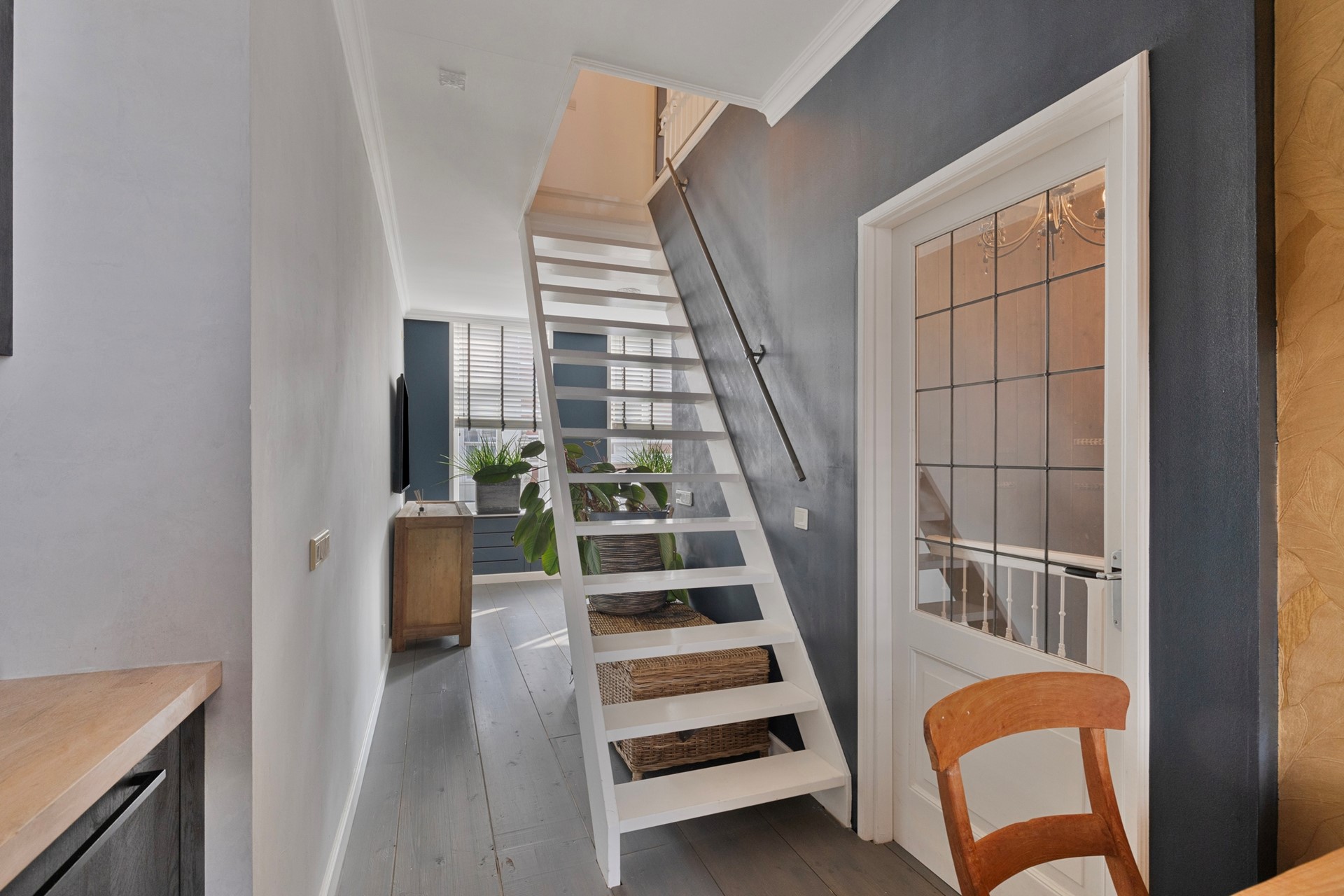 Middels de vaste trap op de begane grond bereiken jullie de overloop op de eerste verdieping. De overloop is afgewerkt met een houten vloer, gestucte wanden en een gestuct plafond. De overloop biedt toegang tot de woonkamer, keuken en de badkamer.