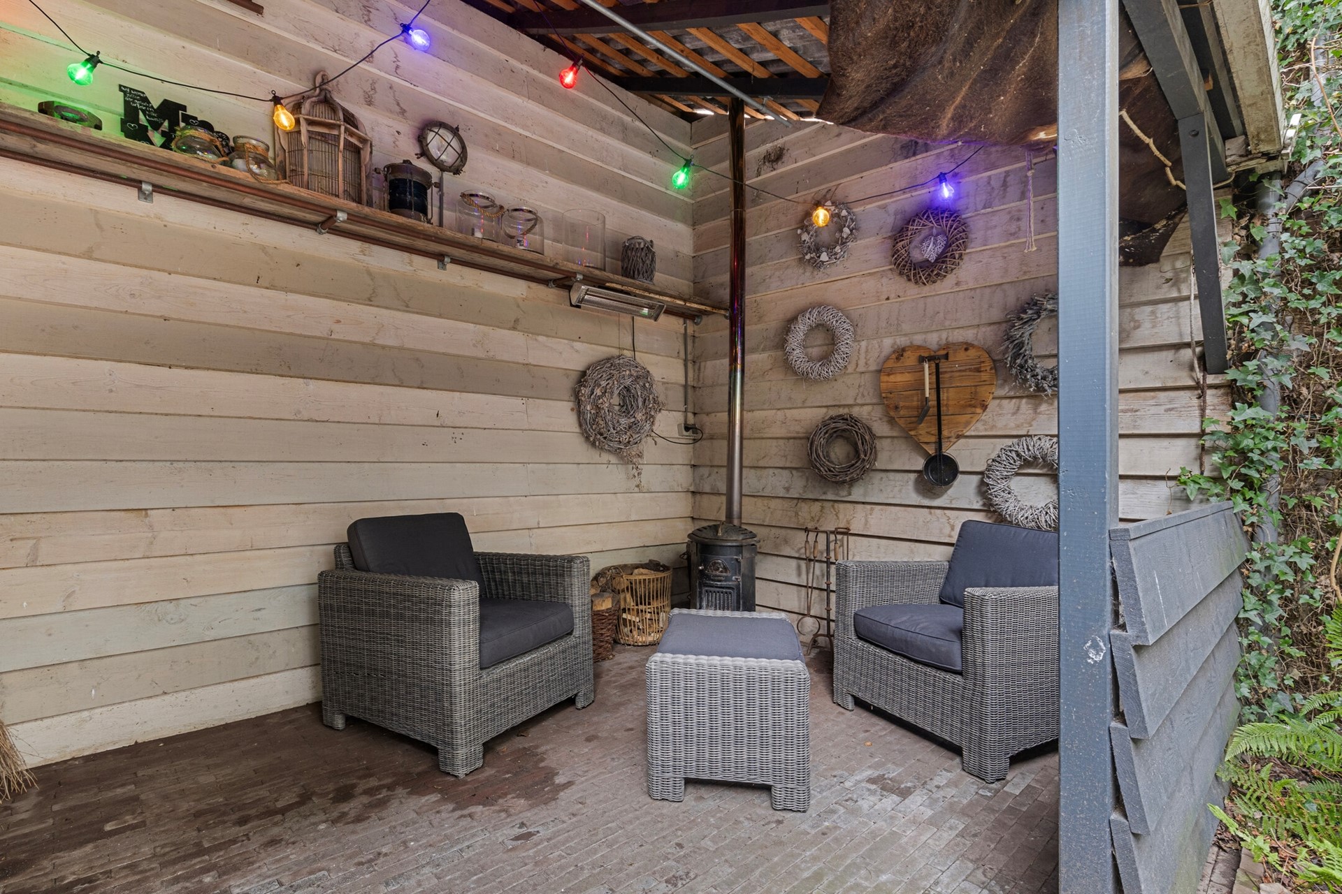 De tuin is de ideale plek om te relaxen, tuinieren of borrelen! De woning beschikt over een fraai aangelegde stadstuin. Onder het genot van een hapje en drankje zijn jullie hier dus vaak te vinden of gewoon met de tuinhandschoenen aan. De tuin is voorzien van een waterput, bestrating, buitenverlichting, berging met overkapping en biedt toegang tot de kelder. De overkapping is voorzien van een houtkachel.