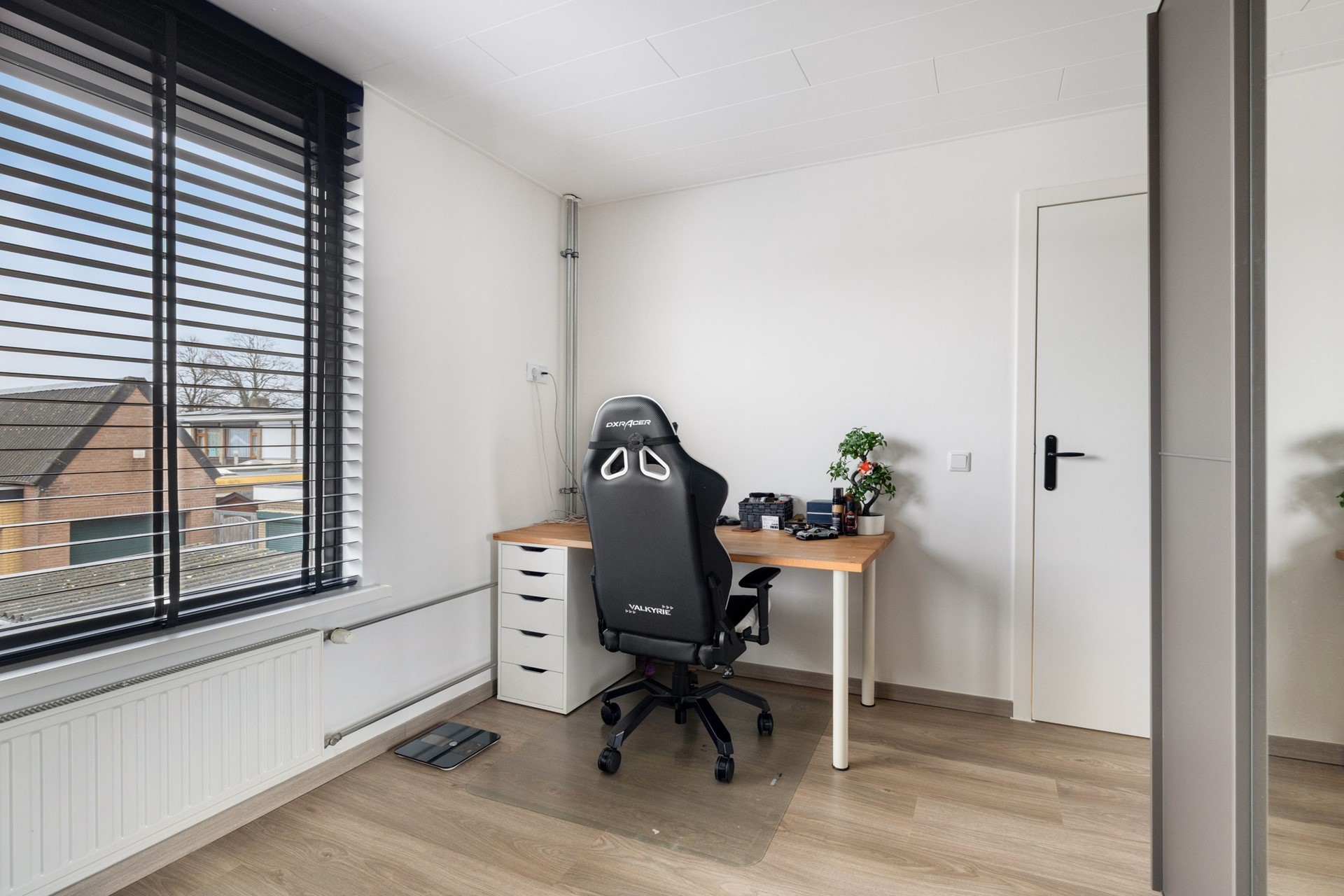 Middels de vaste trap op de begane grond bereiken jullie de overloop op de eerste verdieping. De overloop is afgewerkt met een laminaat vloer, gestucte wanden en plafondplaten. De overloop biedt toegang tot 3 slaapkamers, de badkamer en de tweede verdieping middels een vaste trap die is geplaatst in 2021.