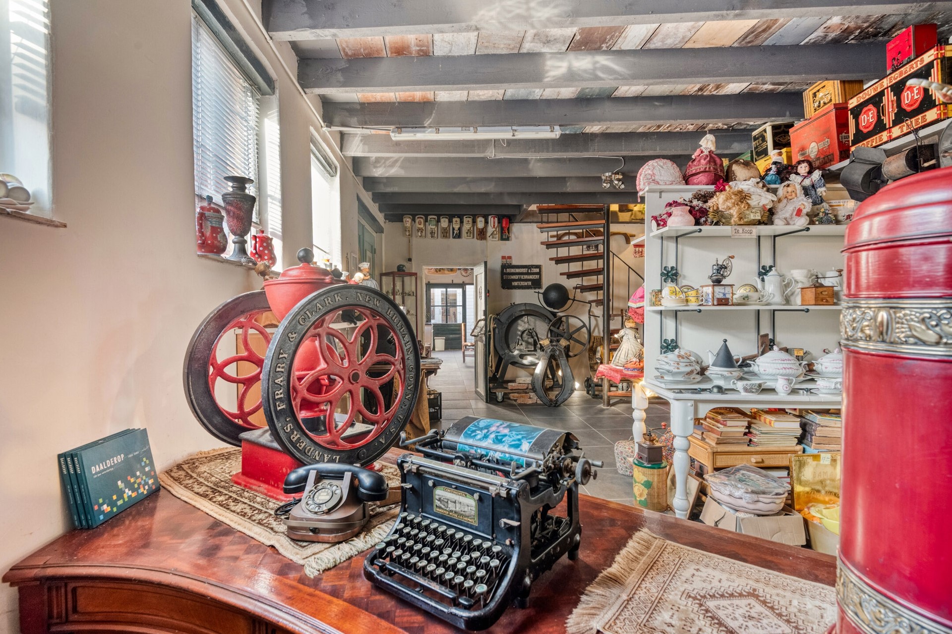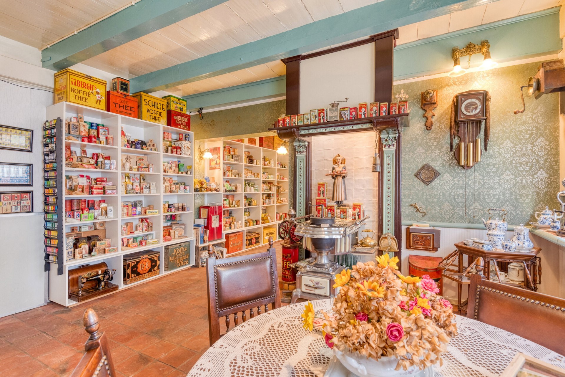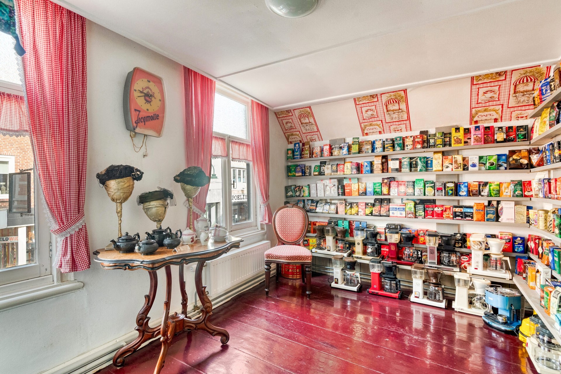 Vanuit de winkelruimte is er toegang tot de sfeervolle achterkamer. De achterkamer biedt toegang tot de bergkast en de keuken.