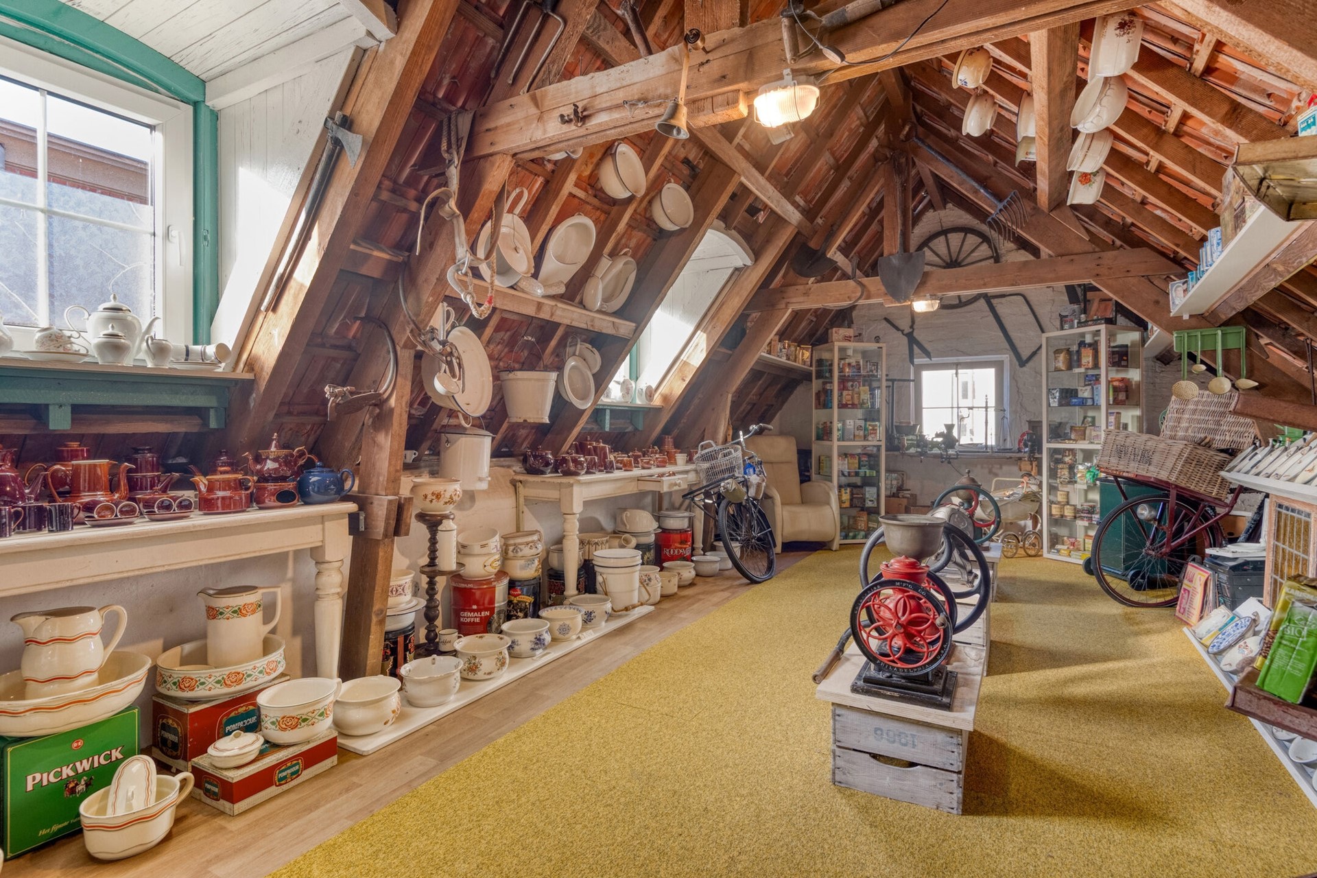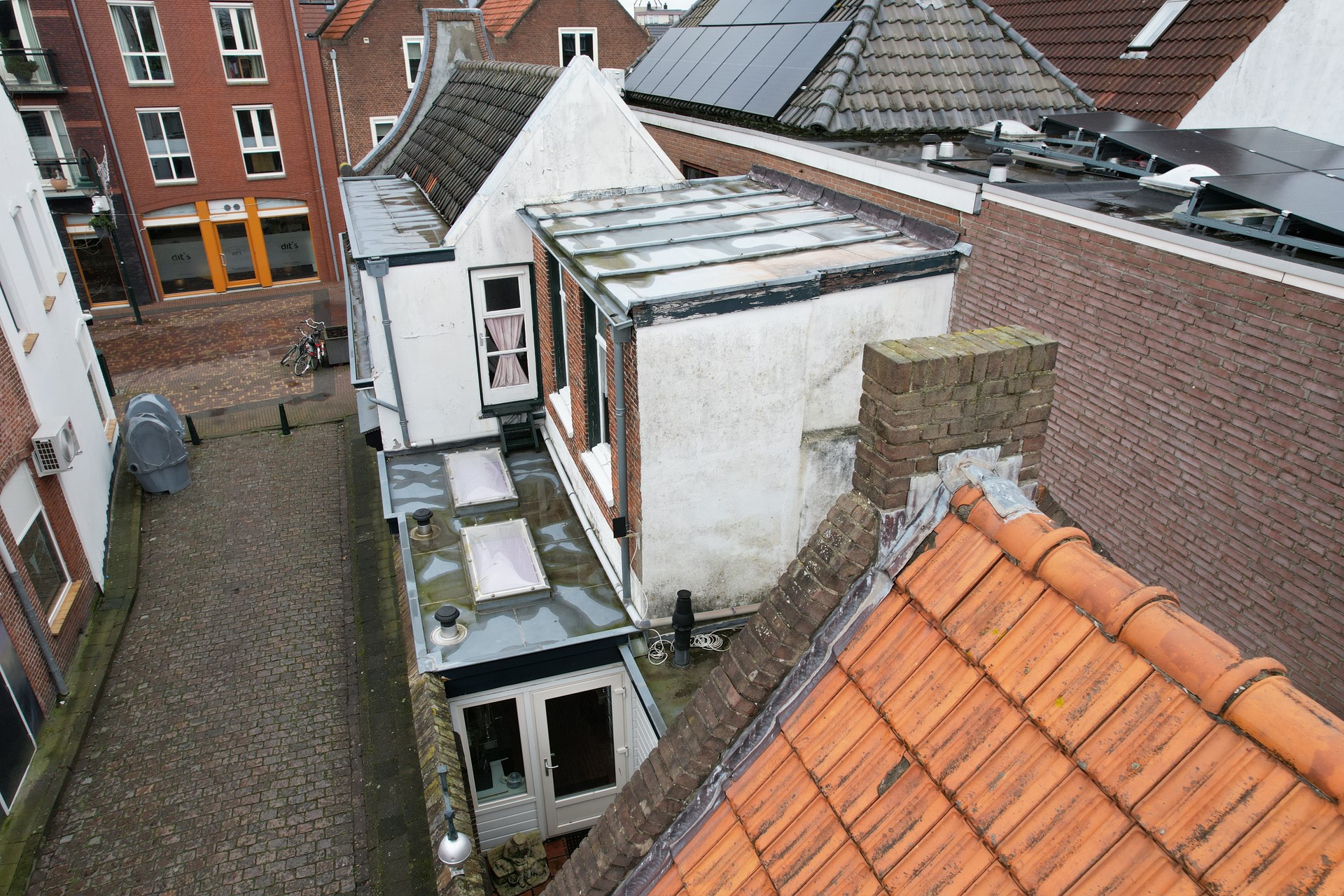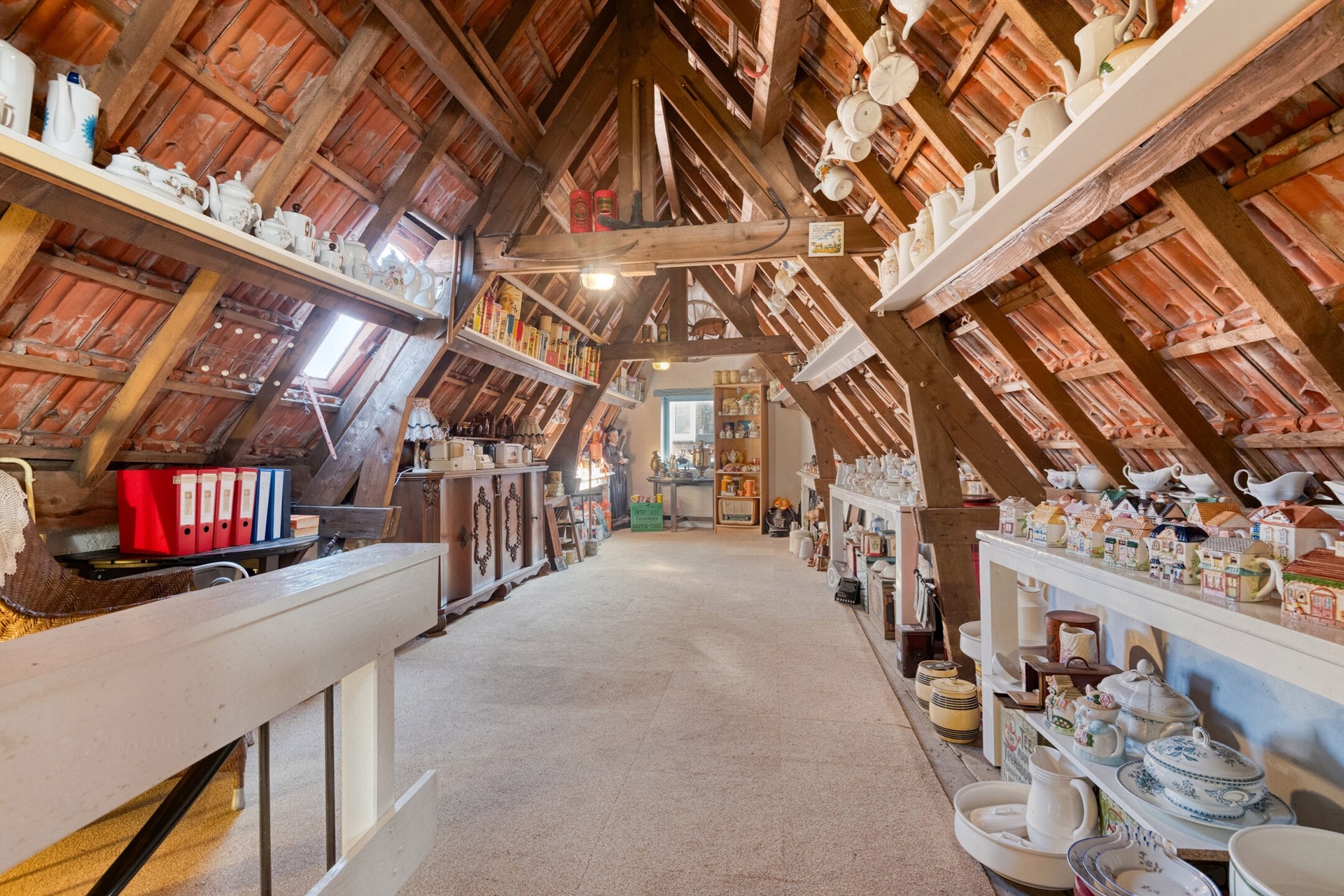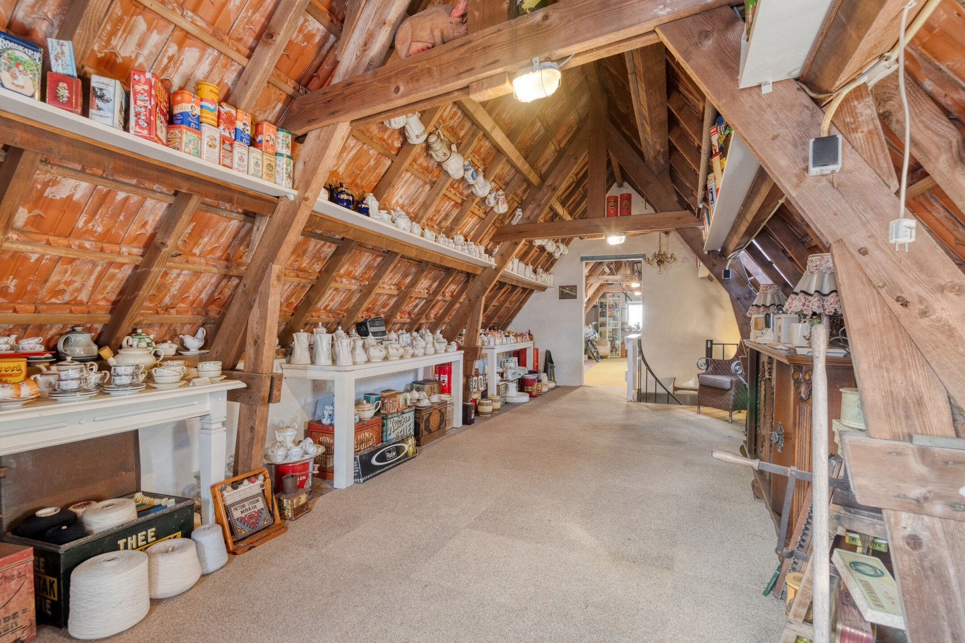 Vanuit de winkelruimte is er toegang tot de sfeervolle achterkamer. De achterkamer biedt toegang tot de bergkast en de keuken.