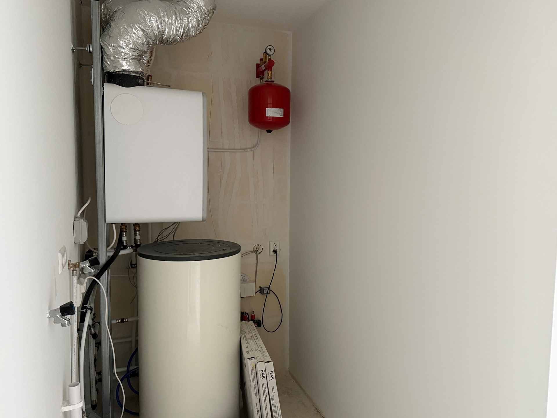 De technische ruimte is voorzien van de warmtepomp en de aansluiting voor witgoed.