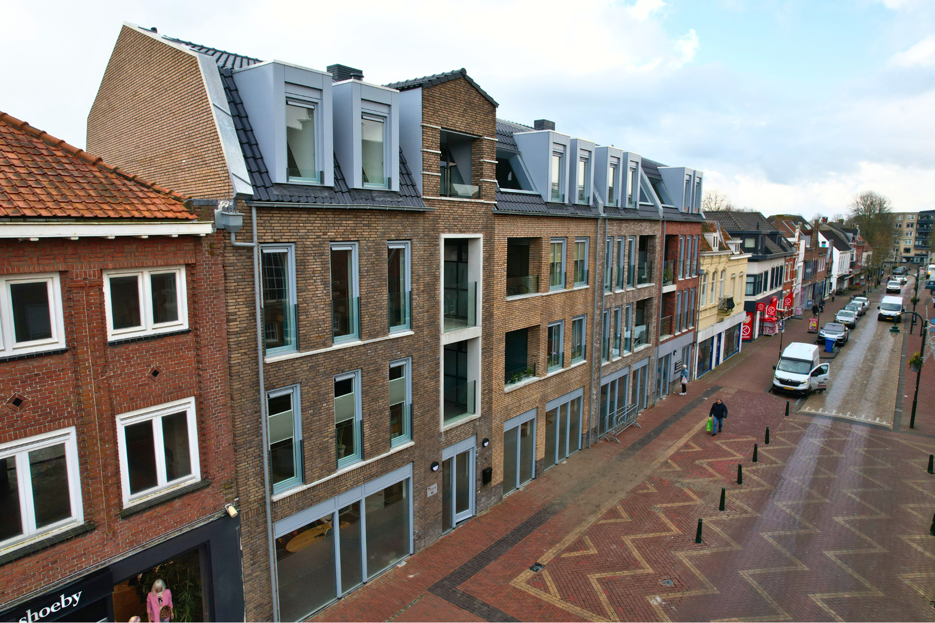 Jullie komen aan in de gezellige winkelstraat van Steenbergen en lopen middels het algemene entree het nieuwbouwcomplex binnen. Het algemene entree is voorzien van de brievenbussen, beltableau (intercom), trappenhuis, lift en biedt toegang tot het gemeenschappelijk (en afgesloten) terrein. Hier bevinden zich de parkeerplaatsen en bergingen.