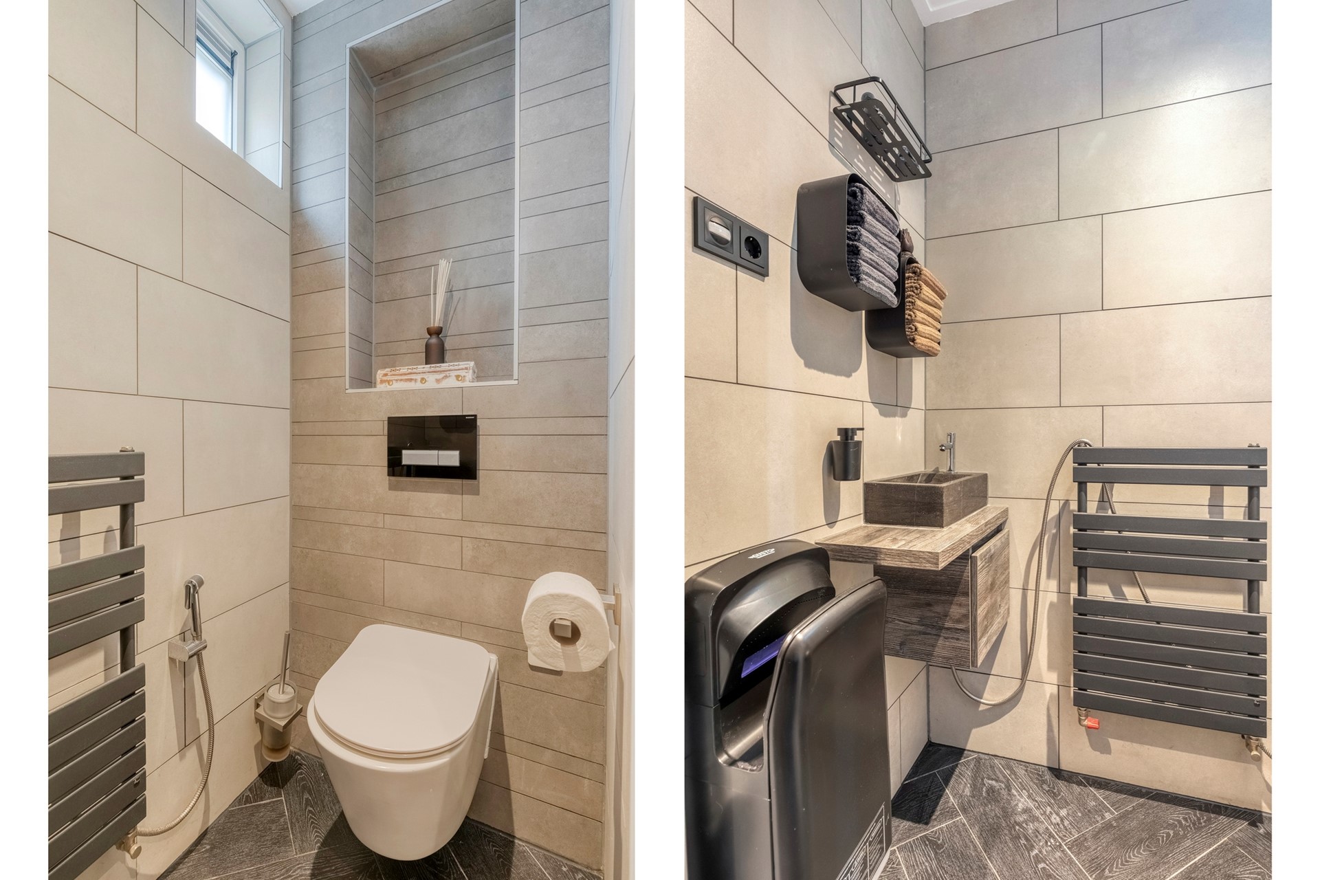 Jullie komen aan op de Welberg en parkeren de auto op de oprit of in de garage en lopen de woning binnen. De entree c.q. hal is afgewerkt met een betegelde vloer voorzien van vloerverwarming. De hal biedt toegang tot het betegeld toilet met fonteintje en designradiator, trapkast, woonkamer en de eerste verdieping middels een vaste trapopgang.