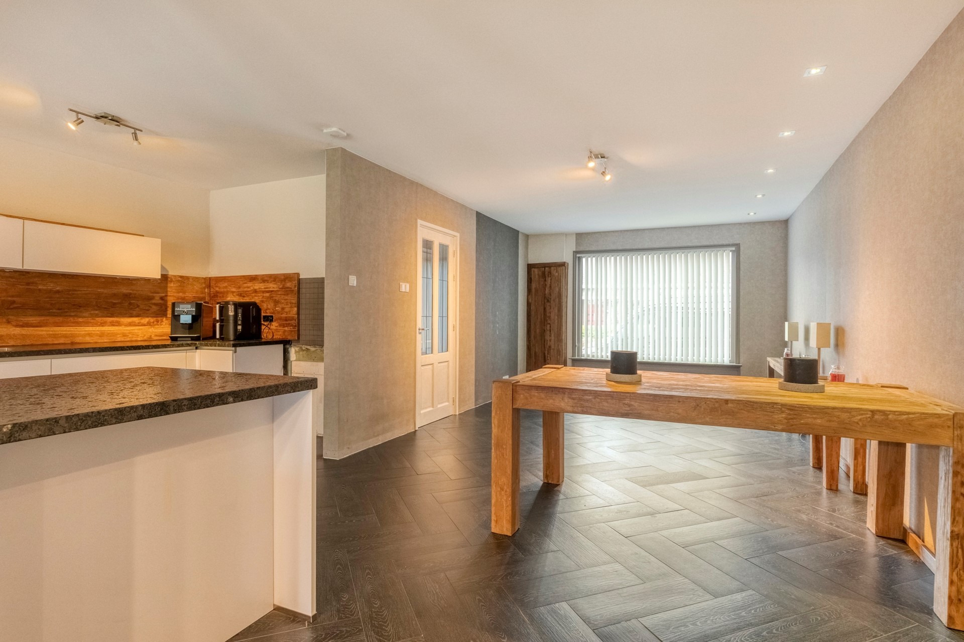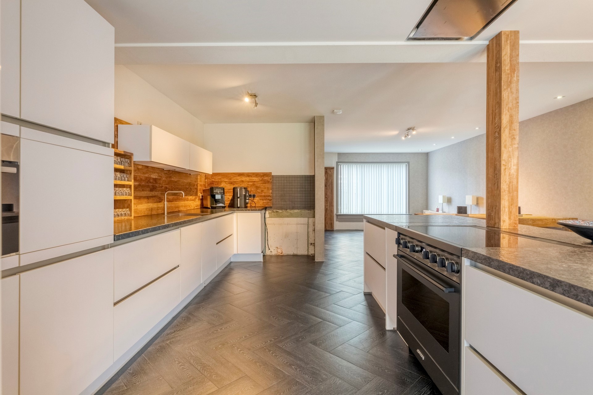 - De woning is voorzien van een moderne keuken (eilandstructuur) met alle gemakken en lichte neutrale kleurstelling