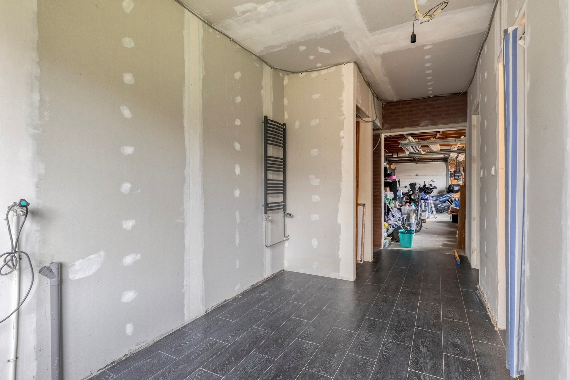 De garage is meer dan alleen een plek om de auto te parkeren; deze veelzijdige ruimte biedt tal van gebruiksmogelijkheden. Voorzien van de meterkast, de verdeler voor de vloerverwarming en twee sectionaaldeuren, is de garage praktisch én functioneel ingericht.