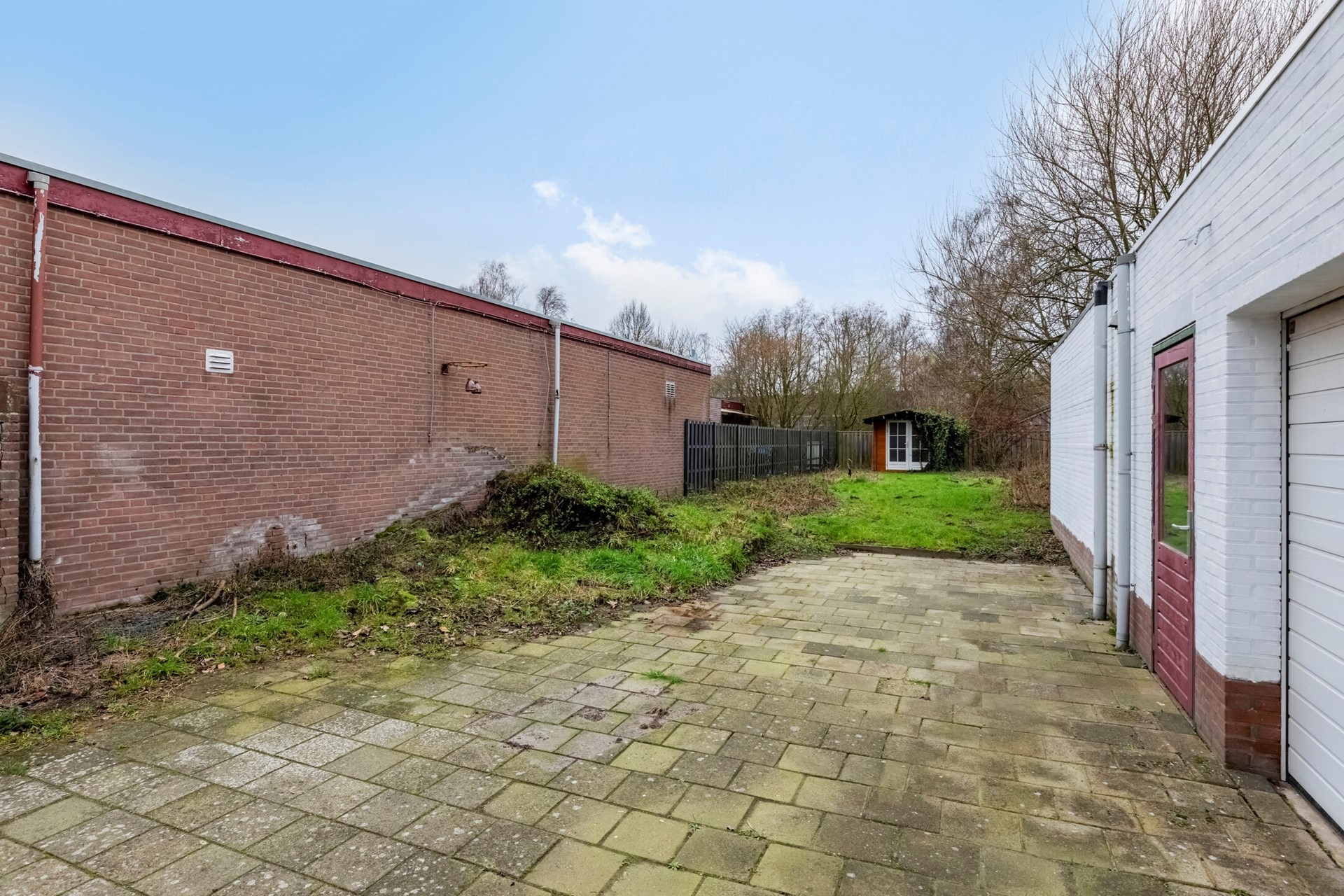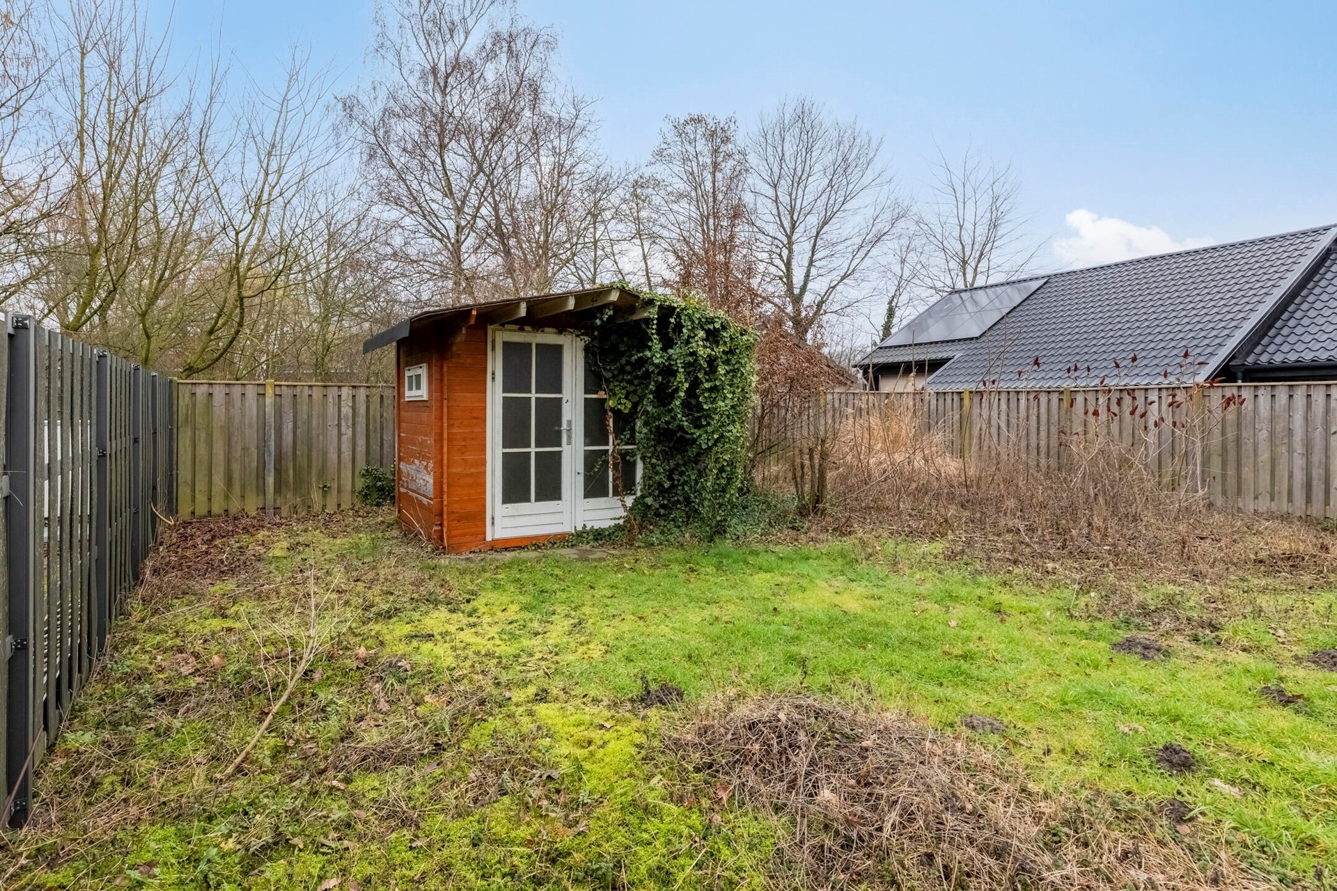 - De houten berging is in slechte staat