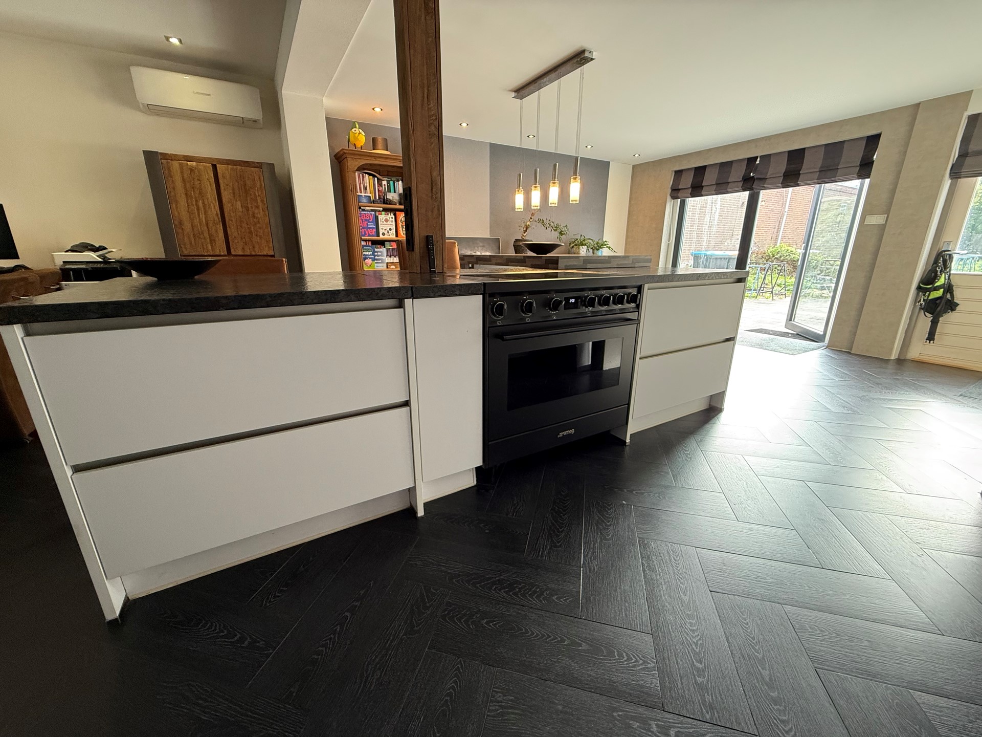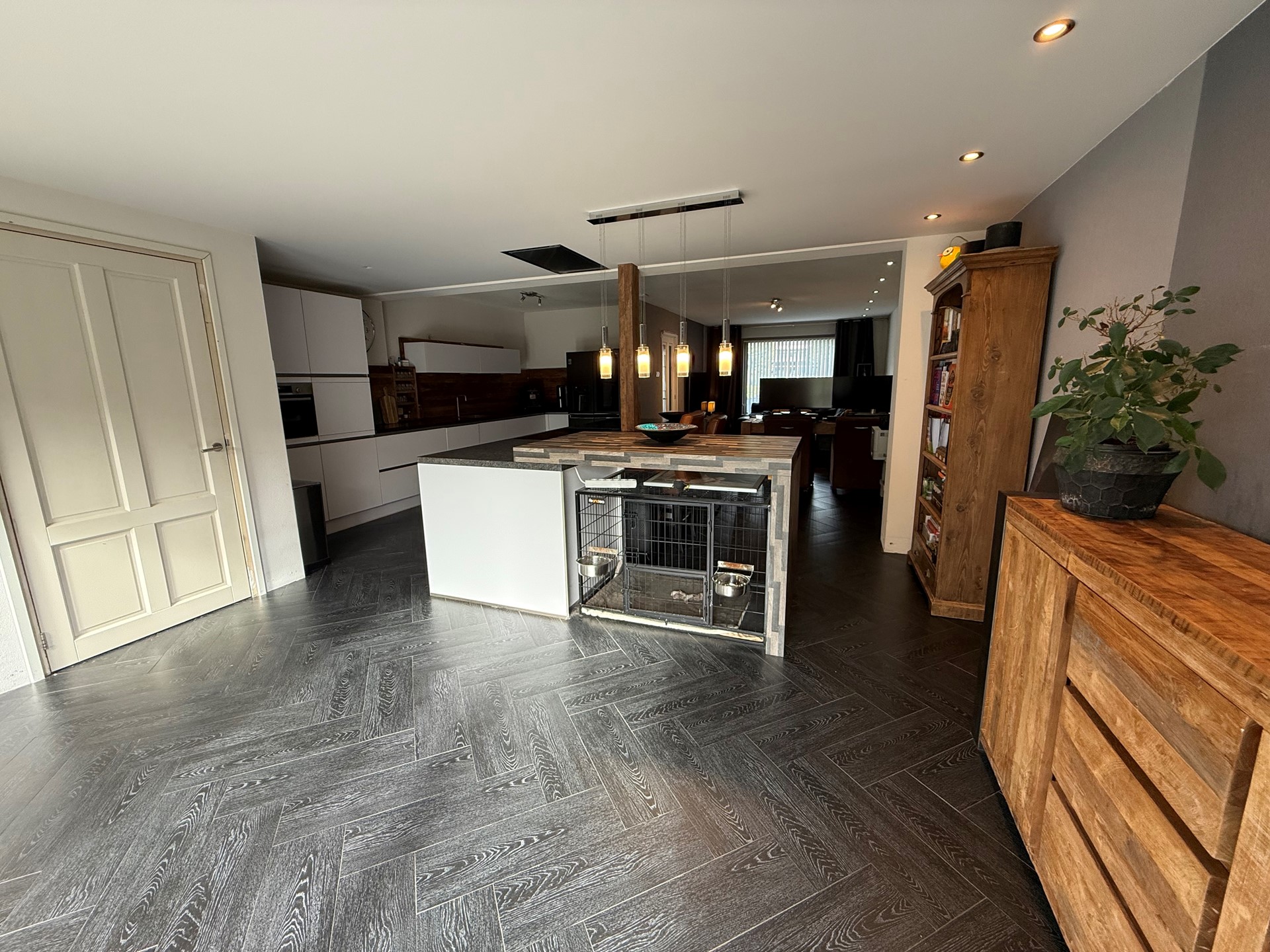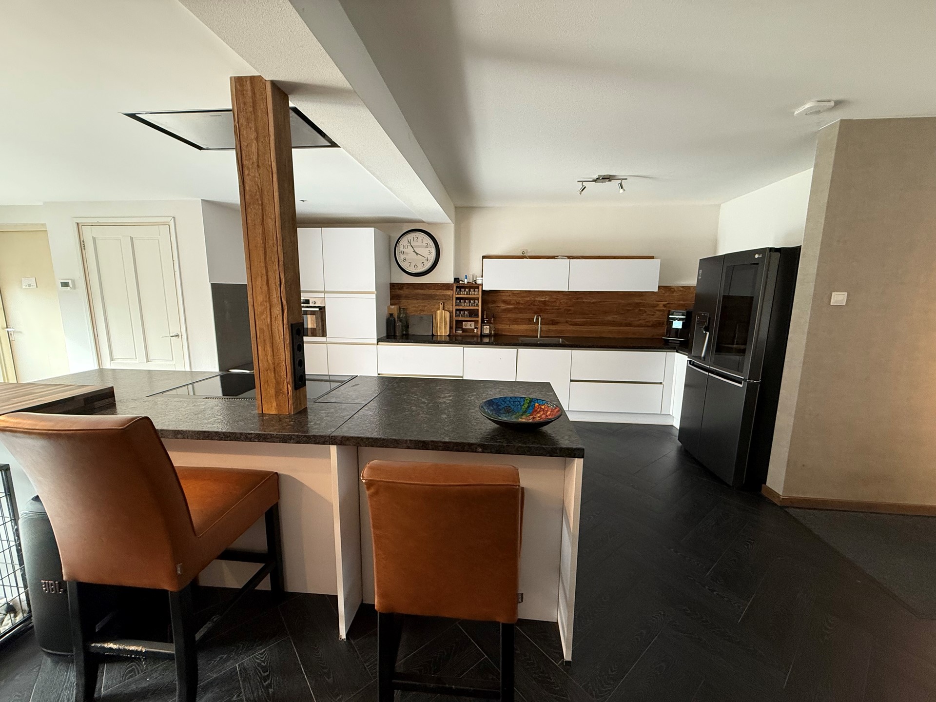 De open woonkeuken is het hart van de woning waar eten, koken en gezelligheid samenkomen! De woonkeuken is afgewerkt met een PVC vloer (incl. vloerverwarming) en beschikt over een lichtkoepel. De recht opgestelde keukeninrichting is voorzien van o.a. onder- en bovenkastjes, spoelbak, combimagnetron, vaatwasser en een kookeiland compleet met een SMEG fornuis inductiekookplaat en afzuiging. Vanuit de keuken is er toegang tot de garage, bergkast en tuin middels openslaande tuindeuren.