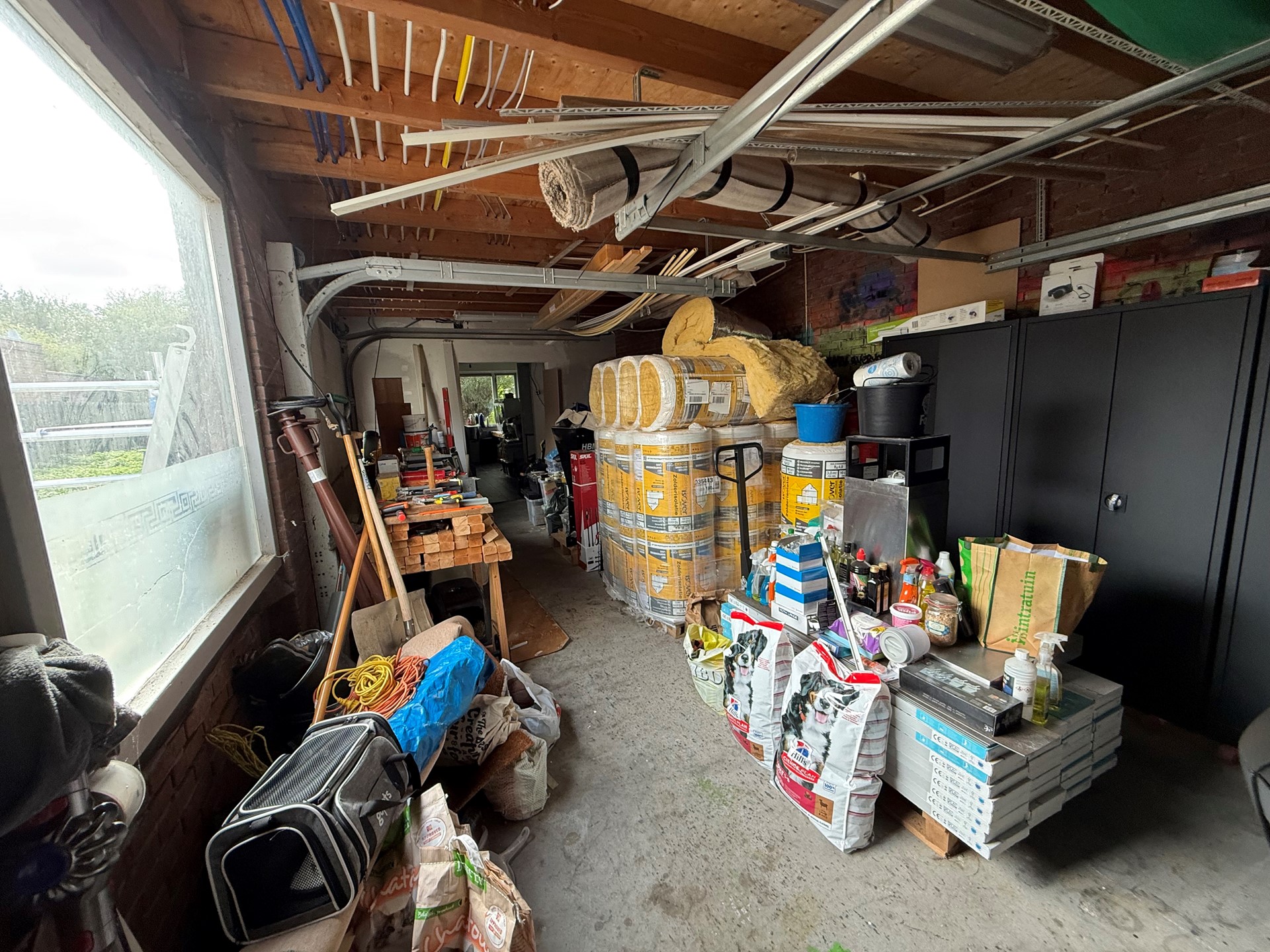 De garage is meer dan alleen een plek om de auto te parkeren; deze veelzijdige ruimte biedt tal van gebruiksmogelijkheden. Voorzien van de meterkast, de verdeler voor de vloerverwarming en twee sectionaaldeuren, is de garage praktisch én functioneel ingericht. Aan de achterzijde bevindt zich een bewoonbaar gedeelte met een slaapkamer, badkamer, toilet en stookruimte – ideaal voor gasten, een mantelzorgwoning of een werk-/praktijkruimte aan huis.