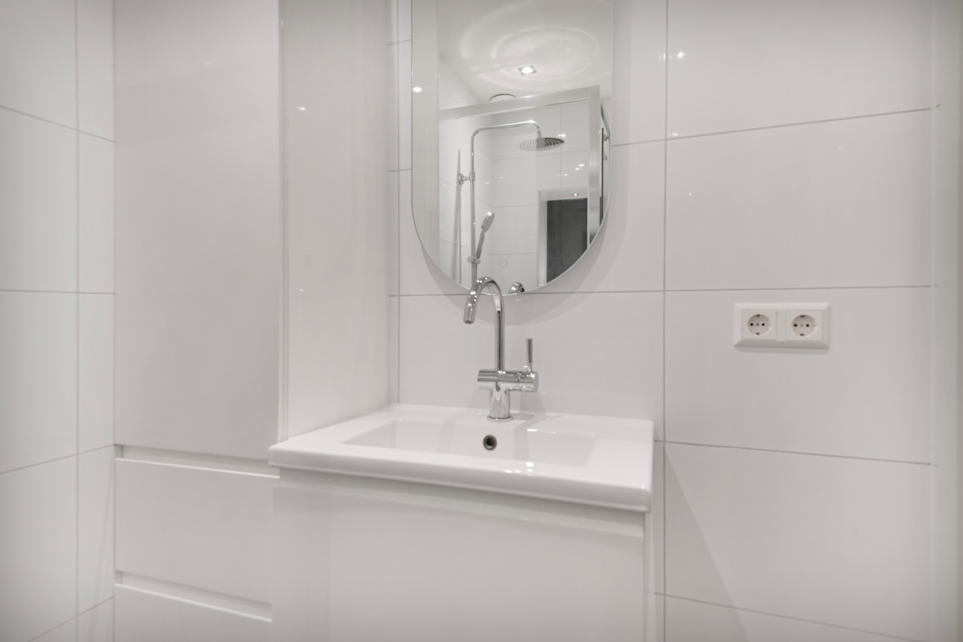 De badkamer is afgewerkt met een betegelde vloer, betegelde vloer en een spuitwerk plafond. De badkamer is voorzien van een douche, wastafel en een 2e toilet.