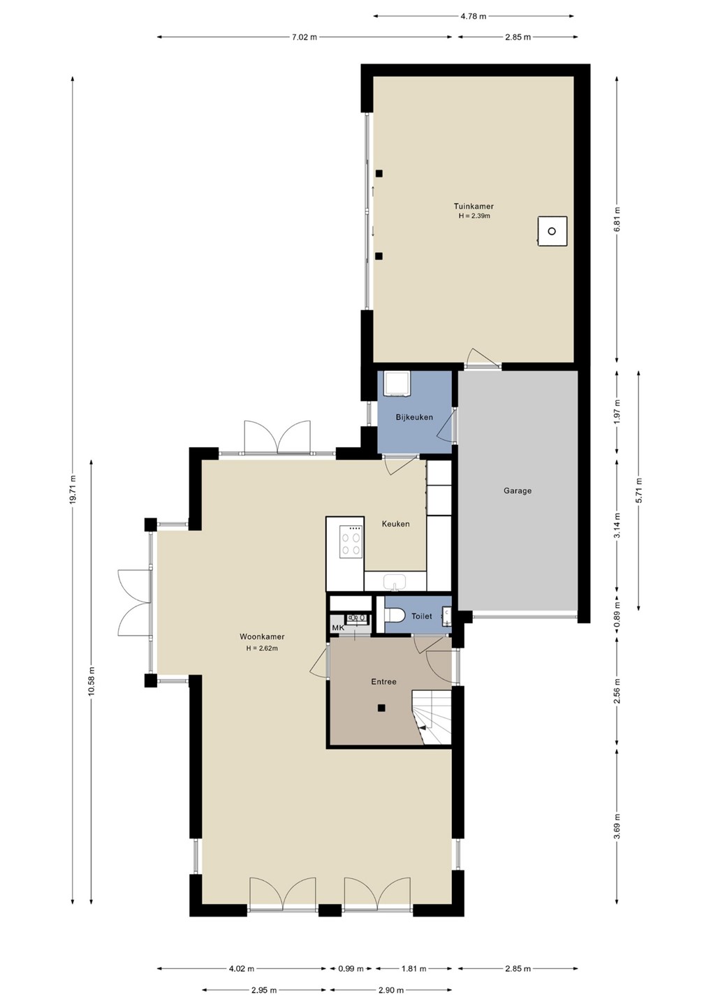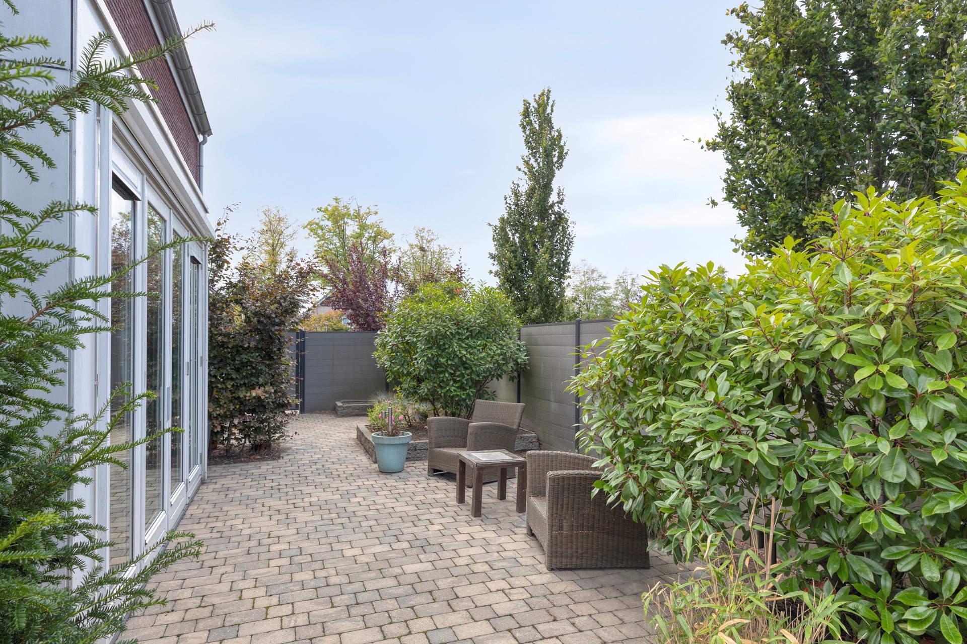 Hier wordt het buitenleven in elk seizoen gevierd. Het royale terras is ideaal voor zomerse maaltijden en winterse koffiemomenten, terwijl de tuinkamer en borders kleur en leven toevoegen. Het tuinhuis biedt extra opbergruimte en de achterom maakt de tuin gemakkelijk bereikbaar.