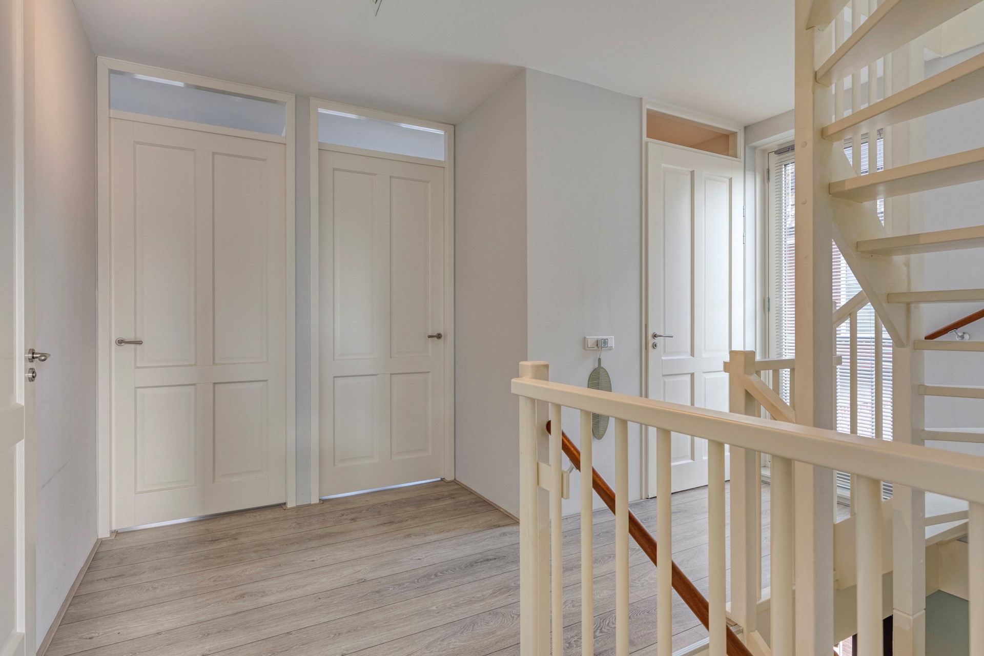 Middels de vaste trap op de eerste verdieping bereiken jullie de overloop op de tweede verdieping. De overloop is afgewerkt met een laminaat vloer, gesuste wanden en een gestuct plafond met inbouwverlichting. De overloop biedt toegang tot 2 slaapkamers en de tweede badkamer.