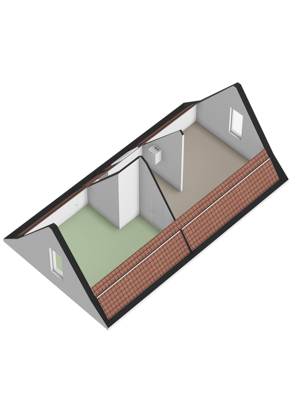 Middels de vaste trap op de begane grond bereiken jullie de overloop op de tweede verdieping. De overloop is afgewerkt met een laminaat vloer, gestucte wanden en plafondplaten. De overloop beschikt over de warmtepompboiler (Stiebel, 2011), CV-Ketel (Atag, 2011) en de omvormer t.b.v. de zonnepanelen. Op de tweede verdieping is thans één slaapkamer, hier zouden ook goed twee slaapkamers gerealiseerd worden.
