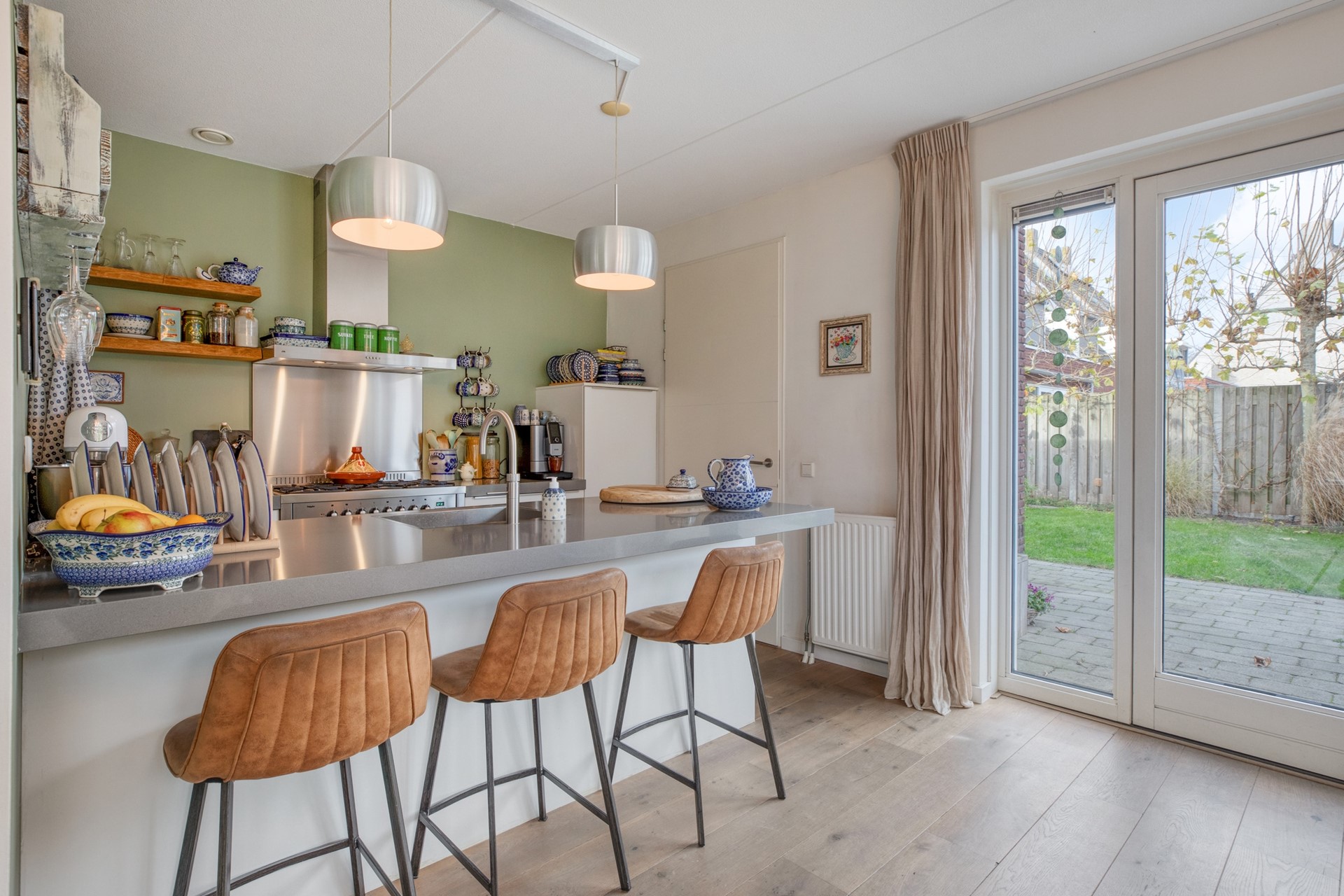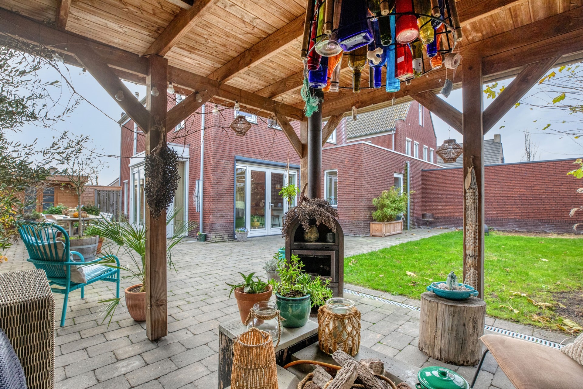 Of je nu neerstrijkt met een goed boek, de dag begint met een dampende kop koffie of gewoon wilt genieten van het buitenleven: deze achtertuin is daar simpelweg perfect voor. De tuin heeft alles in huis voor echte genieters: prachtige druivenranken (ideaal voor wie droomt van een eigen huiswijn ;)), een verzorgd gazon, gezellig terras, fraaie borders, een overkapping voor lange zomeravonden en een tuinhuis uit 2024 voor extra opbergruimte. Via de achterom is de tuin bovendien prettig bereikbaar.