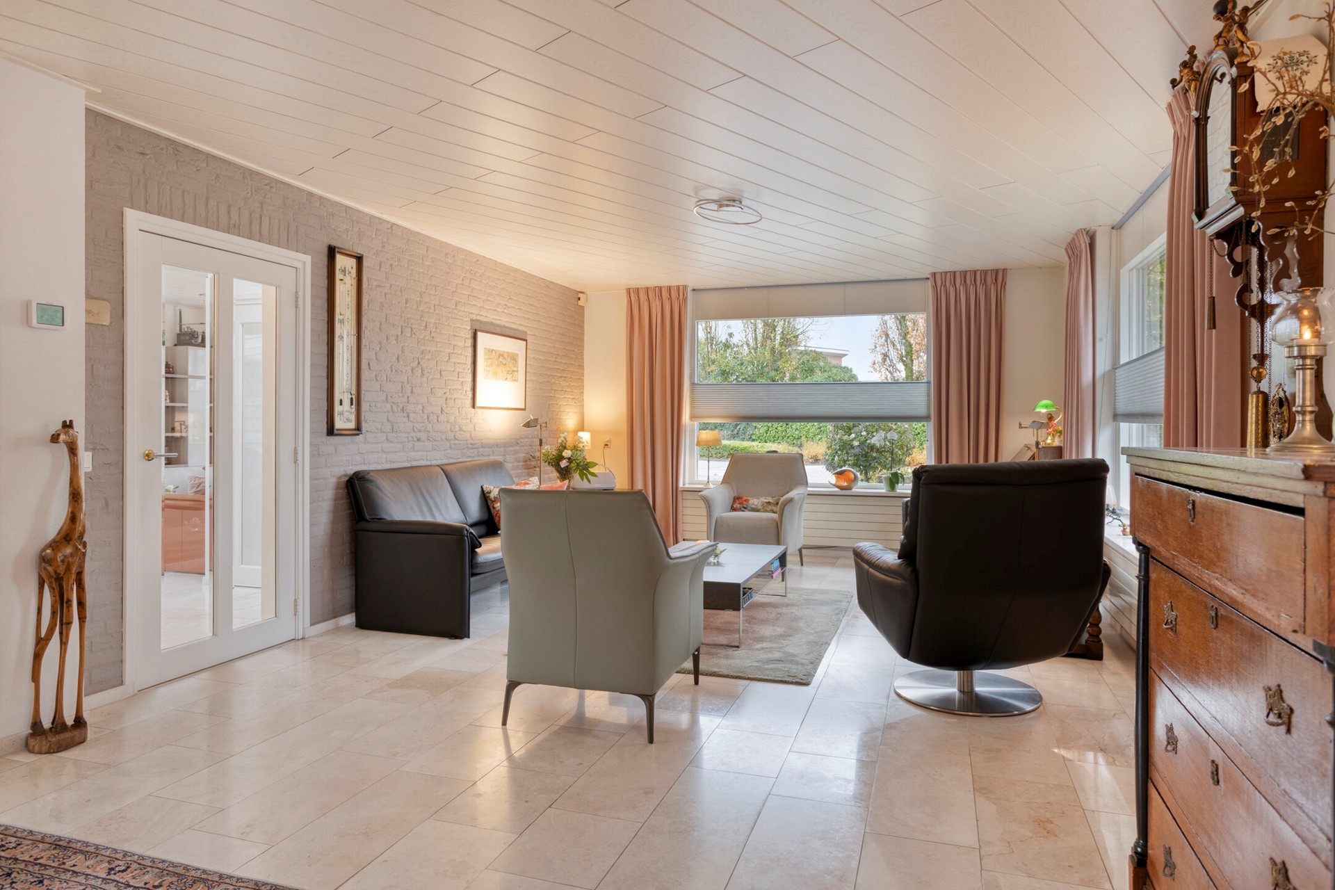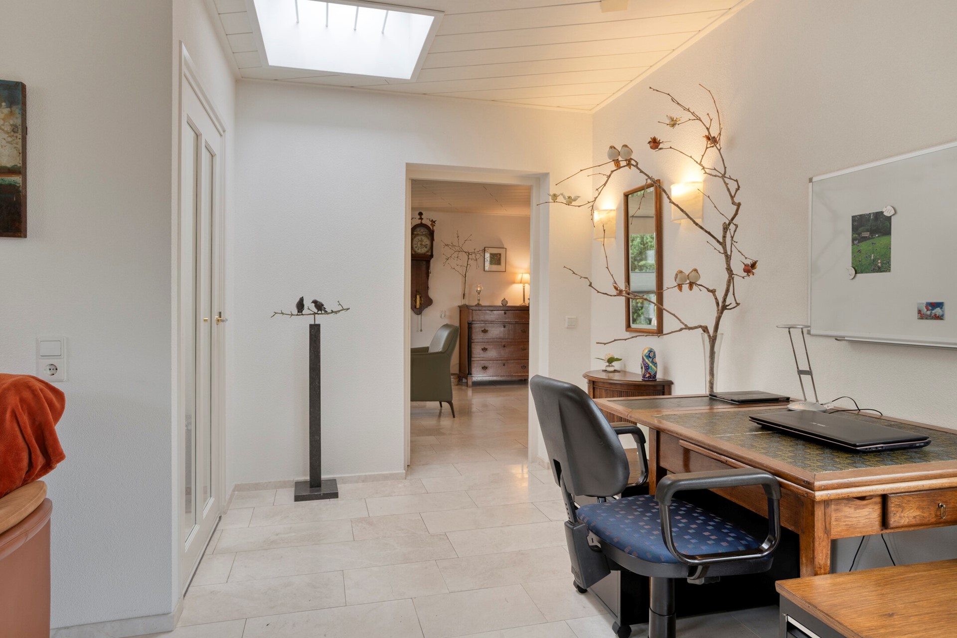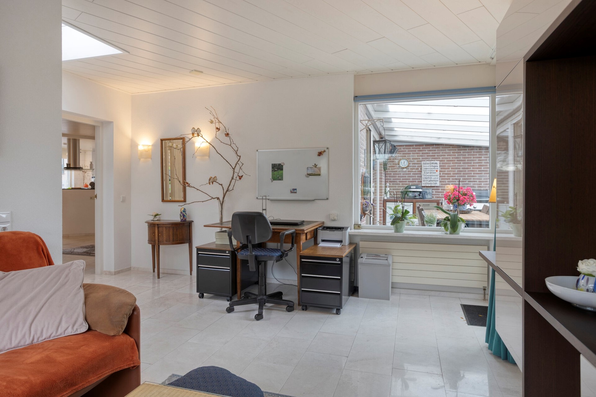 De zitkamer is afgewerkt met een marmeren vloer, spachtelputz wanden en een kuststof delen plafond met lichtkoepel. Deze ruimte zou natuurlijk ook goed in gebruik kunnen genomen worden als slaapkamer (ten behoeve van gelijkvloers wonen), kantoor, praktijk aan huis of een andere combinatie van wonen en werken.