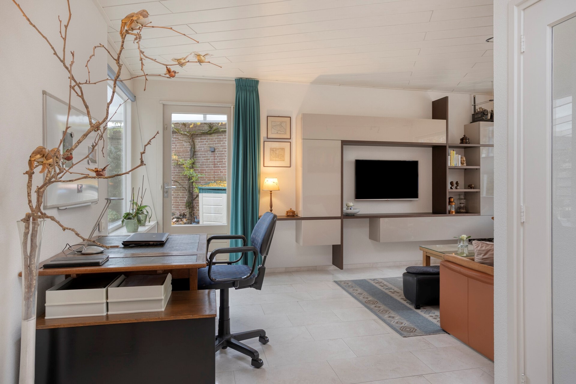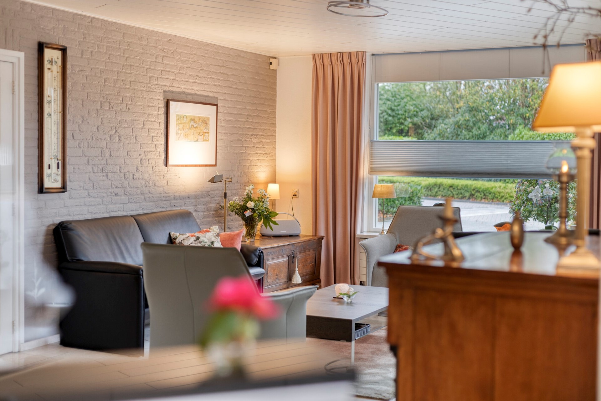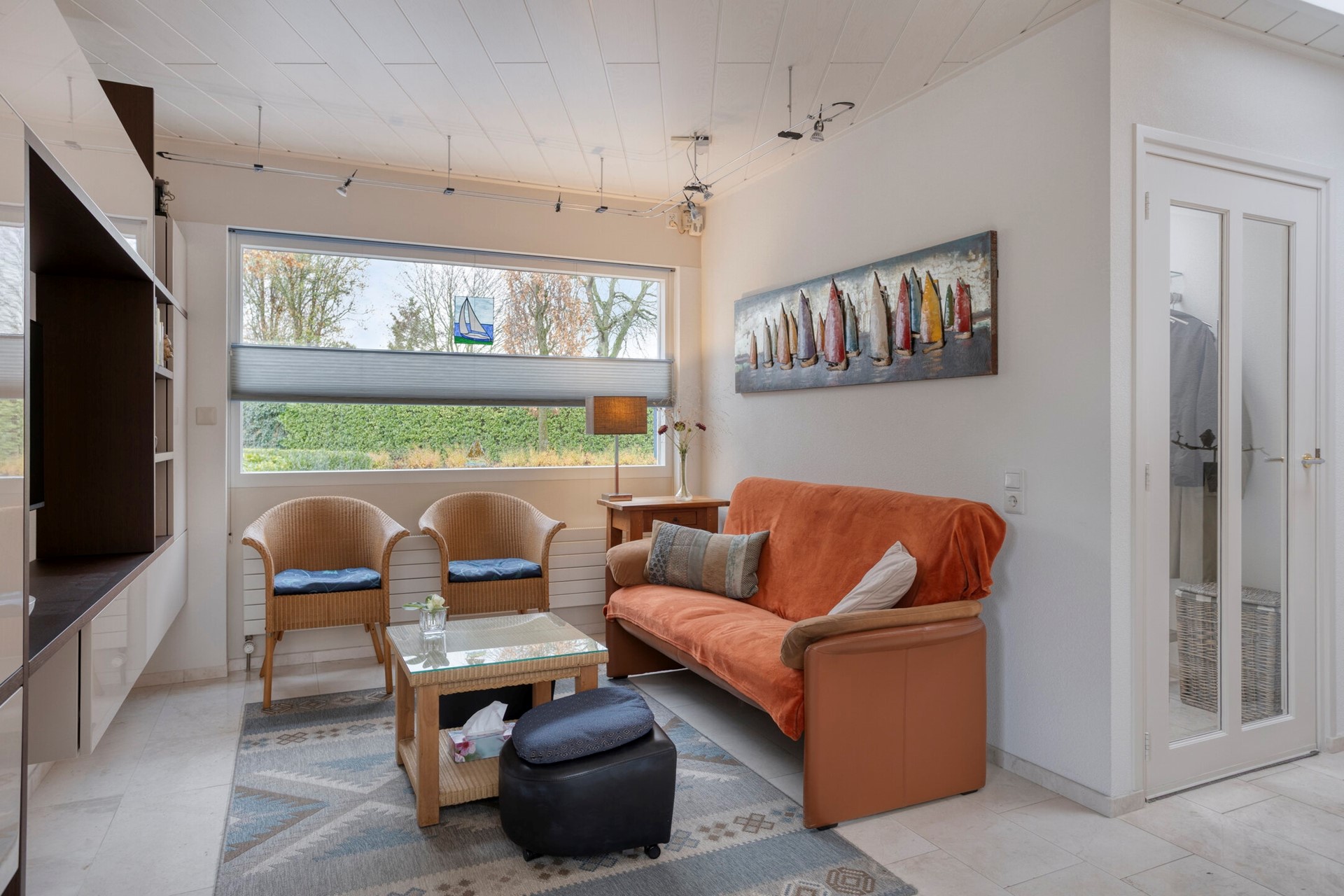 De zitkamer is afgewerkt met een marmeren vloer, spachtelputz wanden en een kuststof delen plafond met lichtkoepel. Deze ruimte zou natuurlijk ook goed in gebruik kunnen genomen worden als slaapkamer (ten behoeve van gelijkvloers wonen), kantoor, praktijk aan huis of een andere combinatie van wonen en werken.